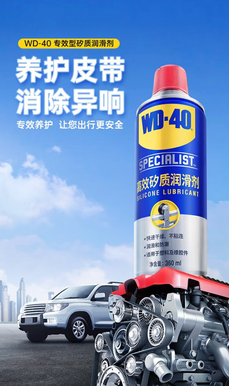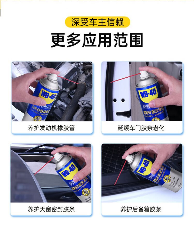 WD-40 silicone lubricant wd40 car window lubrication rubber cover strip maintenance protection engine noise belt silencer