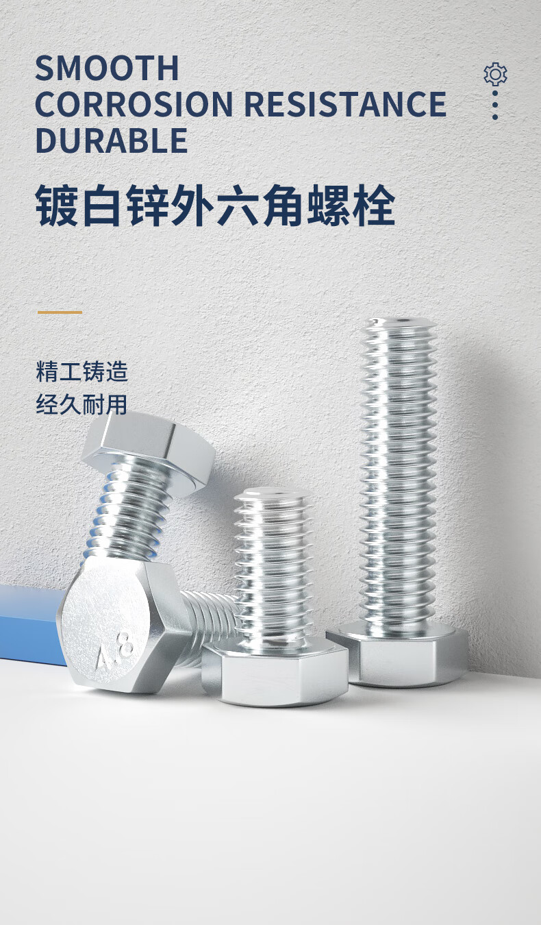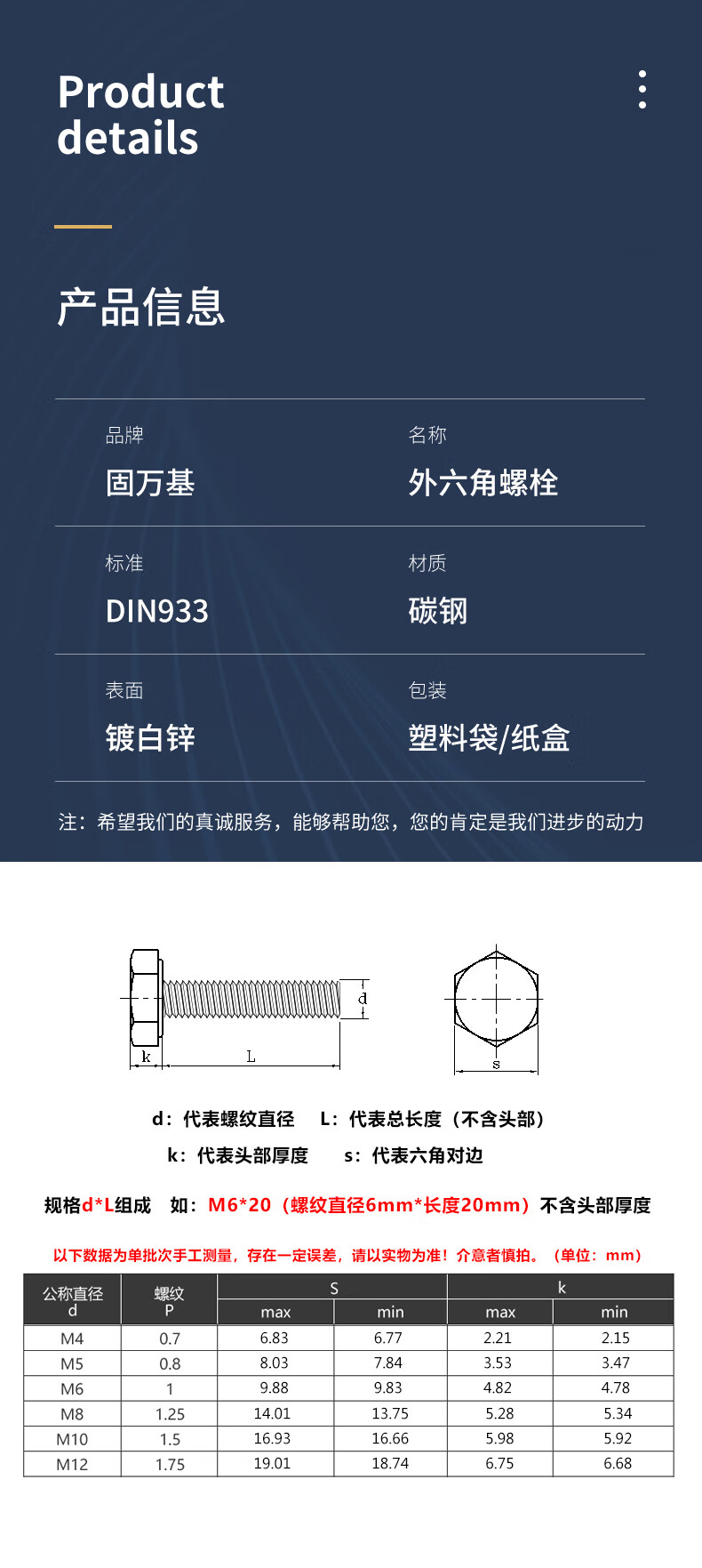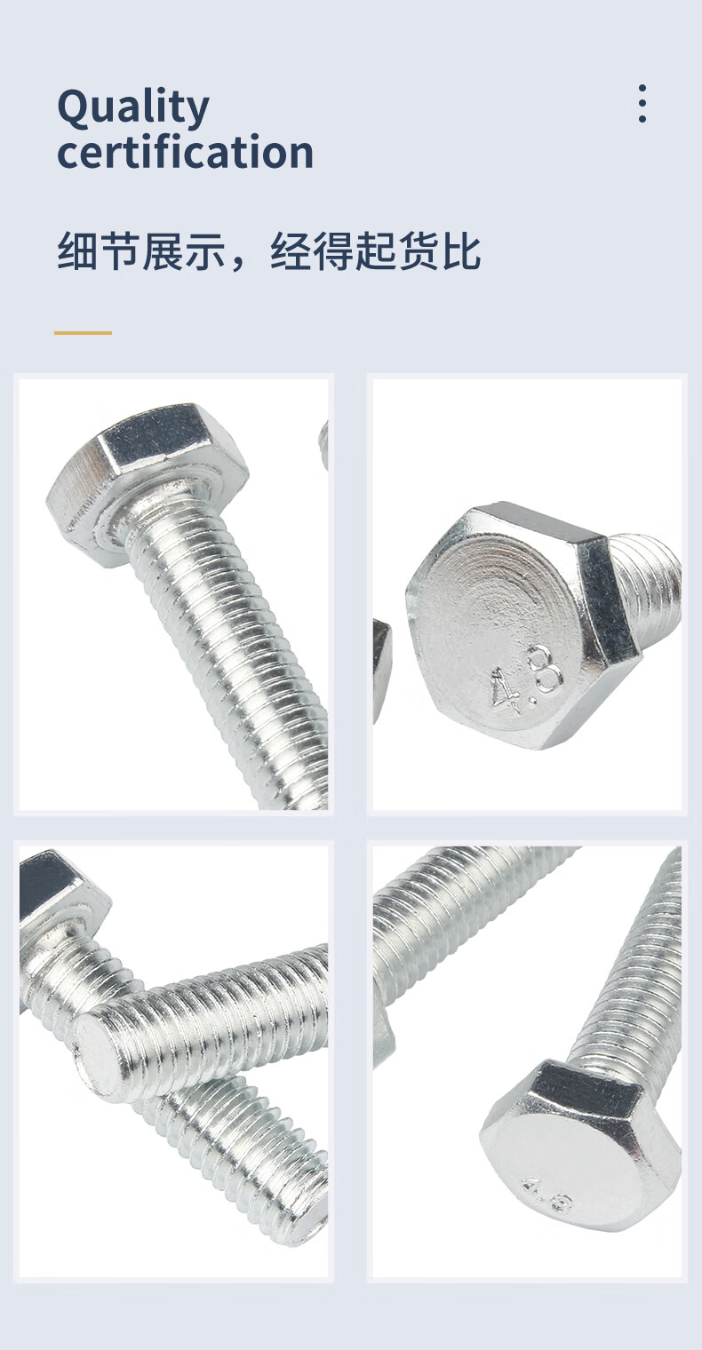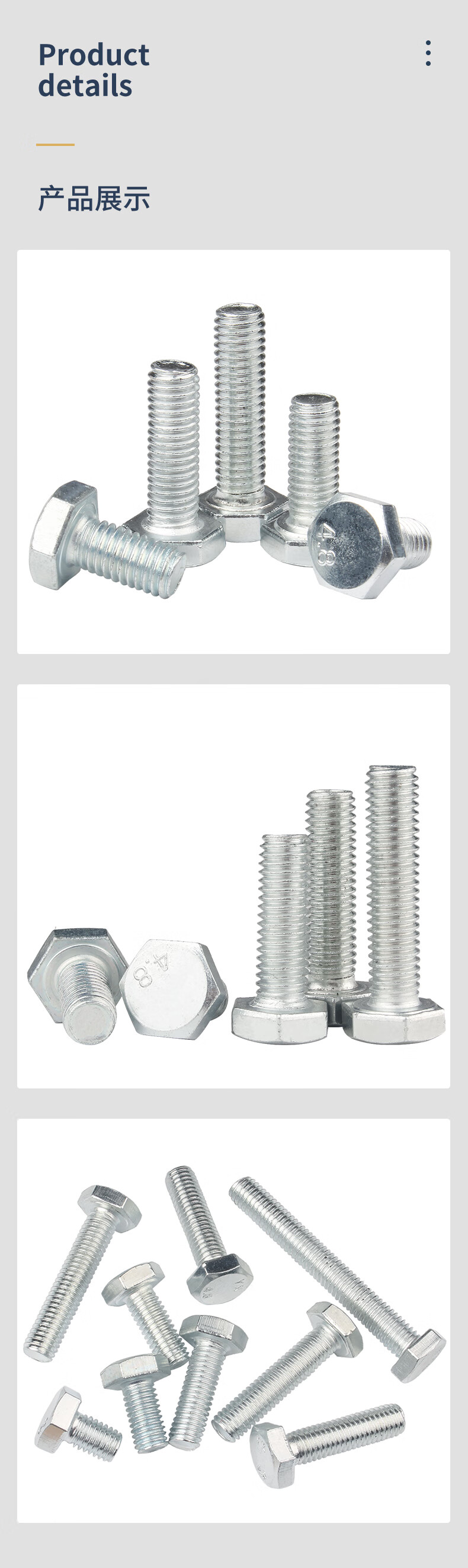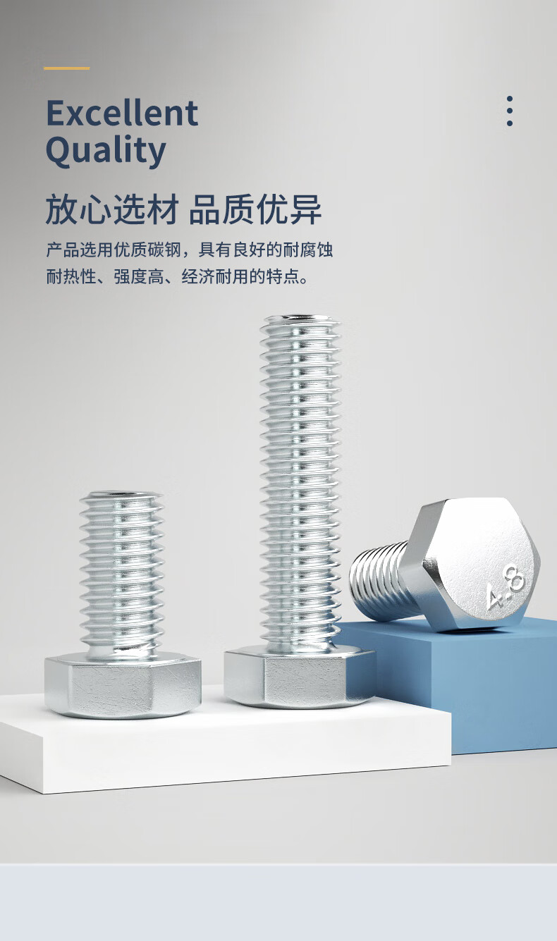 Guwanji 4.8 grade iron galvanized external hexagonal screws extended external hexagonal bolts complete machine thread screws national standard M6*20 50 pieces