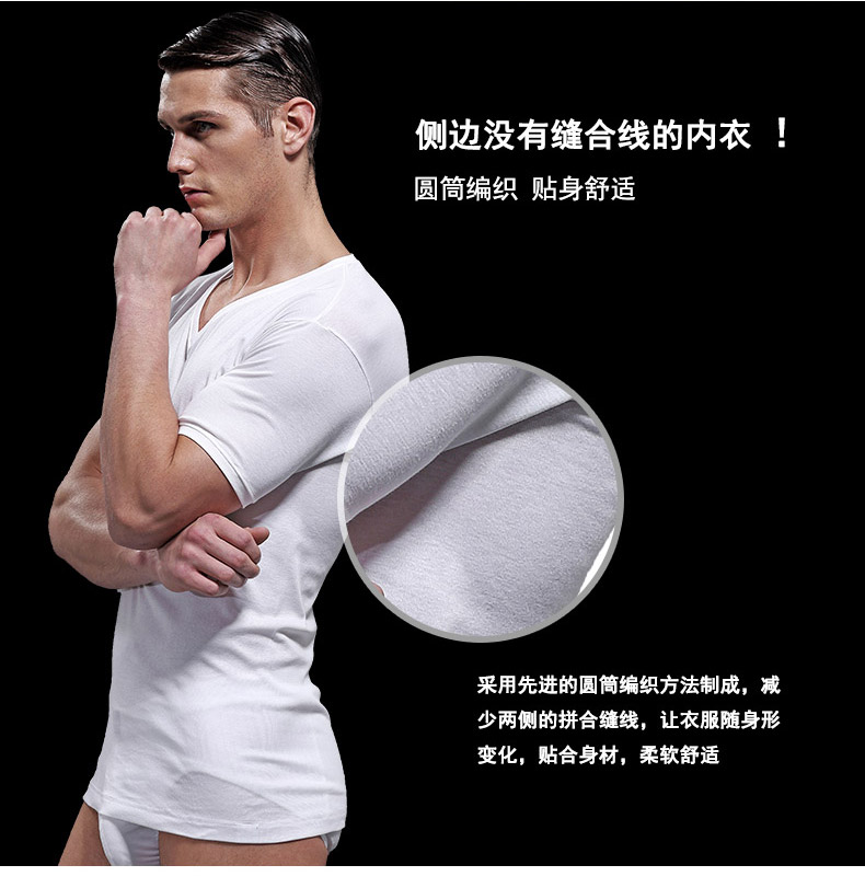 BYFORD/Baifu men's mercerized cotton bottoming underwear V-neck short-sleeved bottoming T-shirt men's business-MW2336 dark blue L