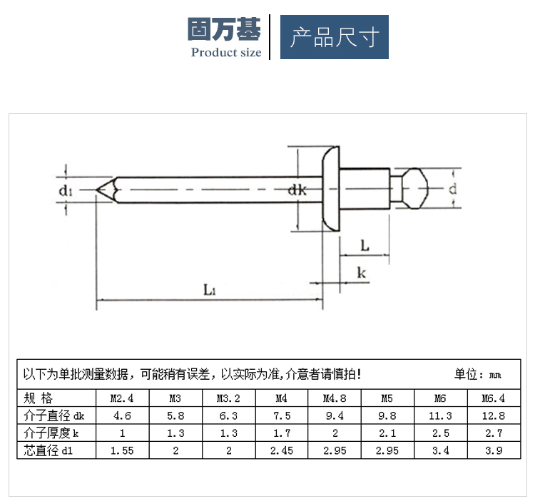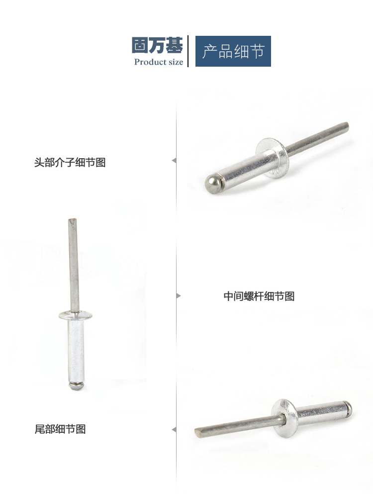Guwanji aluminum core blind rivets, round head rivets, aluminum open K-shaped decorative nails, blind rivets, core blind rivets M4*10 (100 pieces) aluminum round head