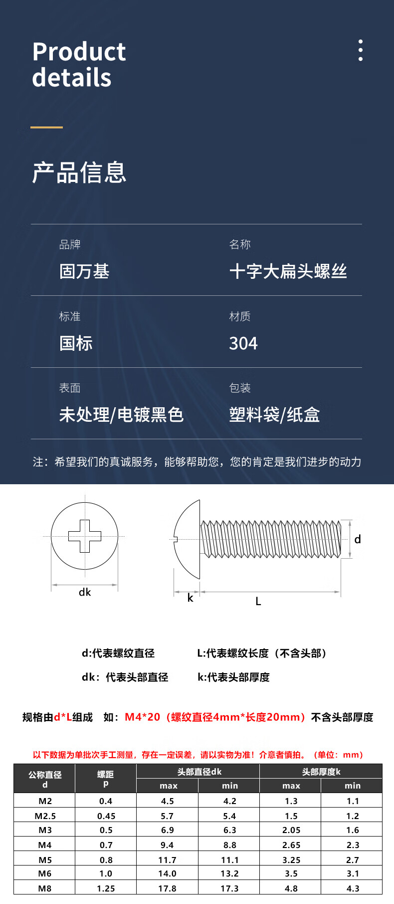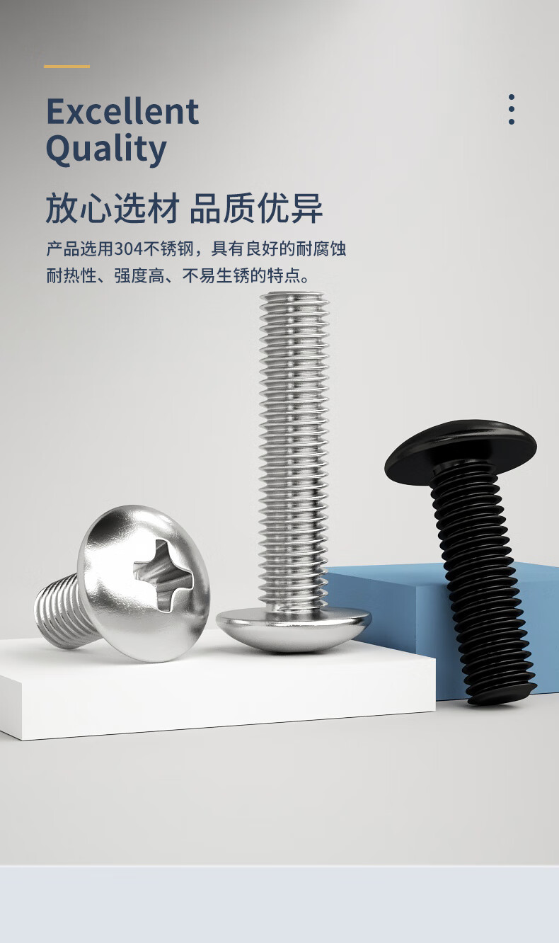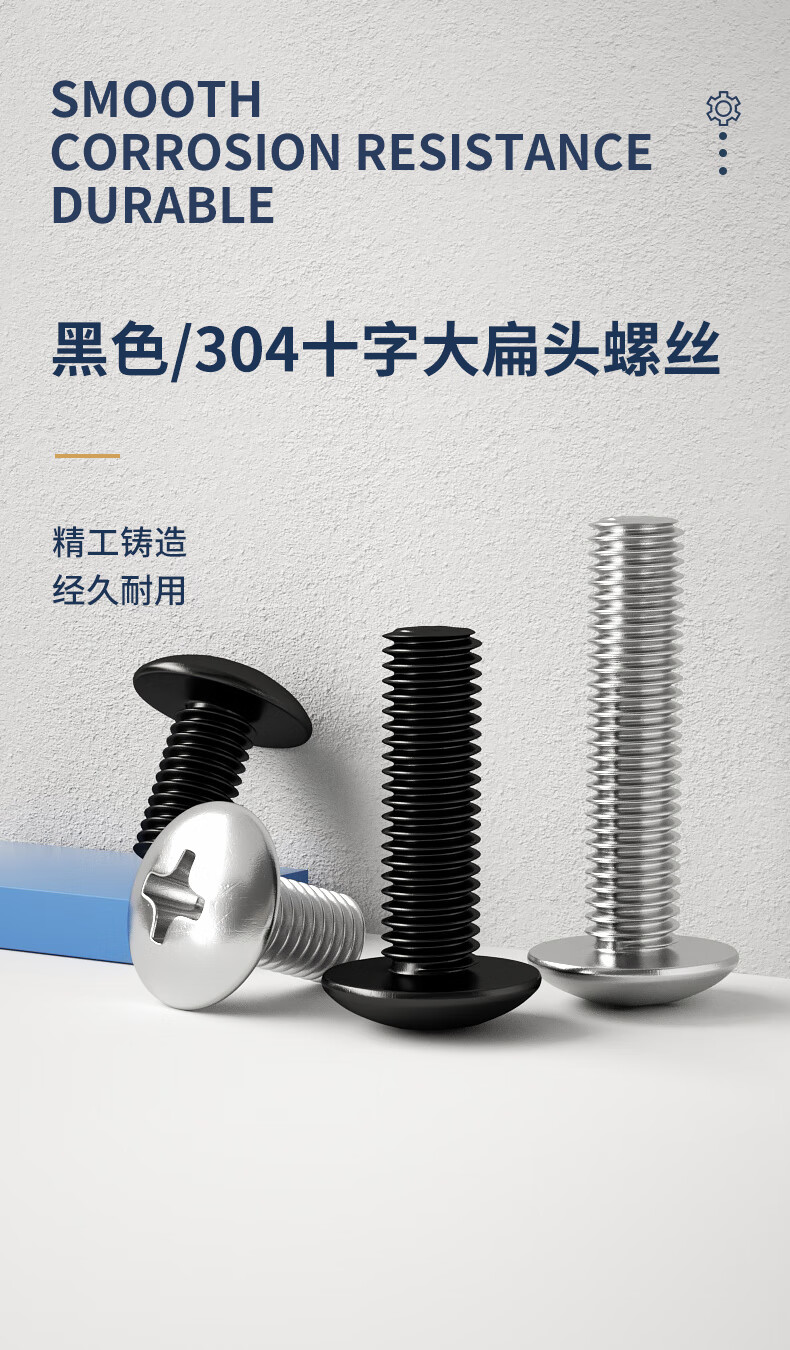 Guwanji 304 stainless steel cross large flat head screws cross recessed round head machine wire large umbrella head screws mushroom head bolts M4*10 50 pieces