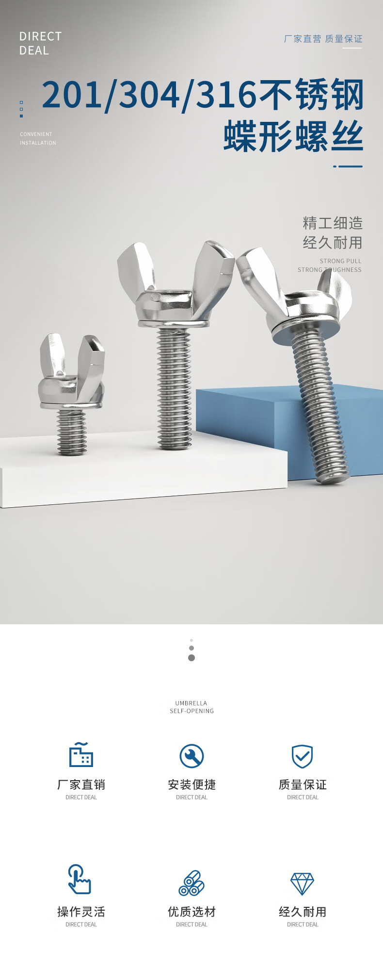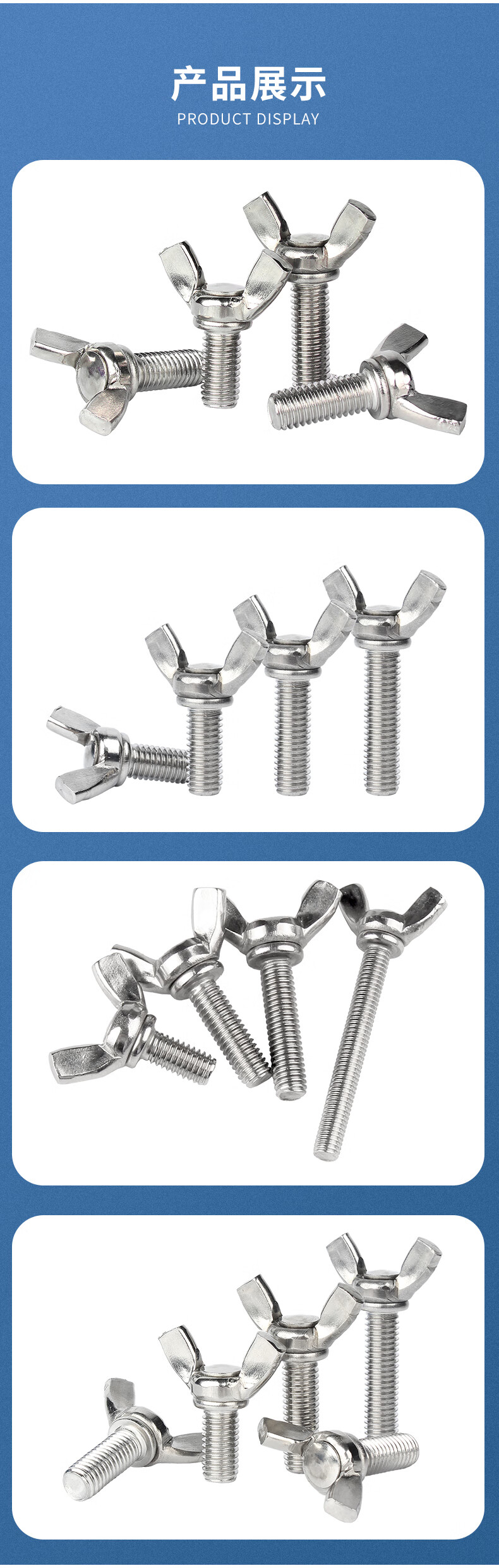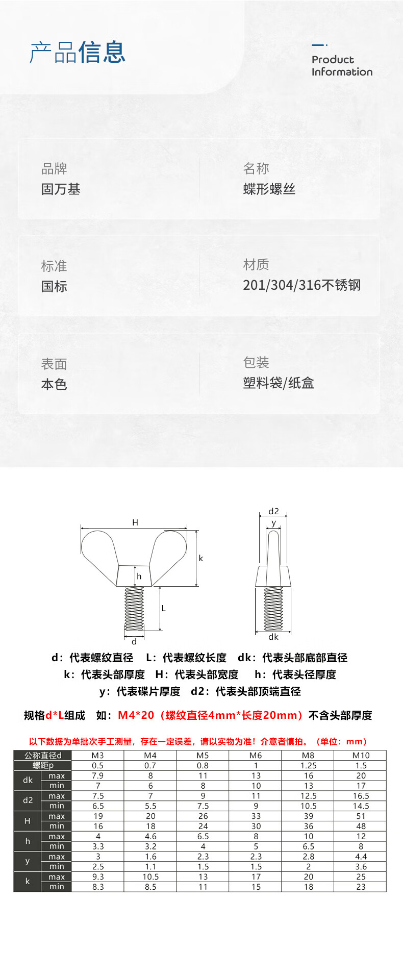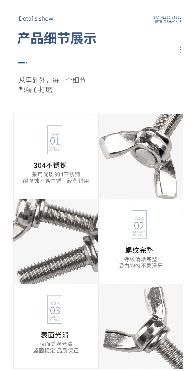 Guwanji 304 stainless steel butterfly screws, butterfly hand screws, butterfly bolts, Yuanbao horn hand screws, M6x16 5 pieces, 304 material