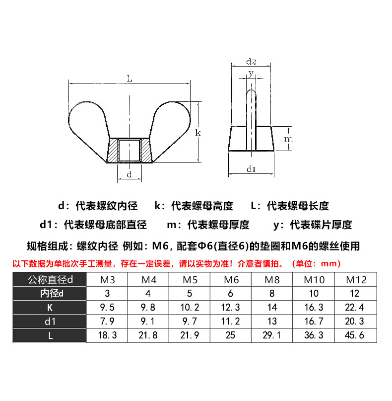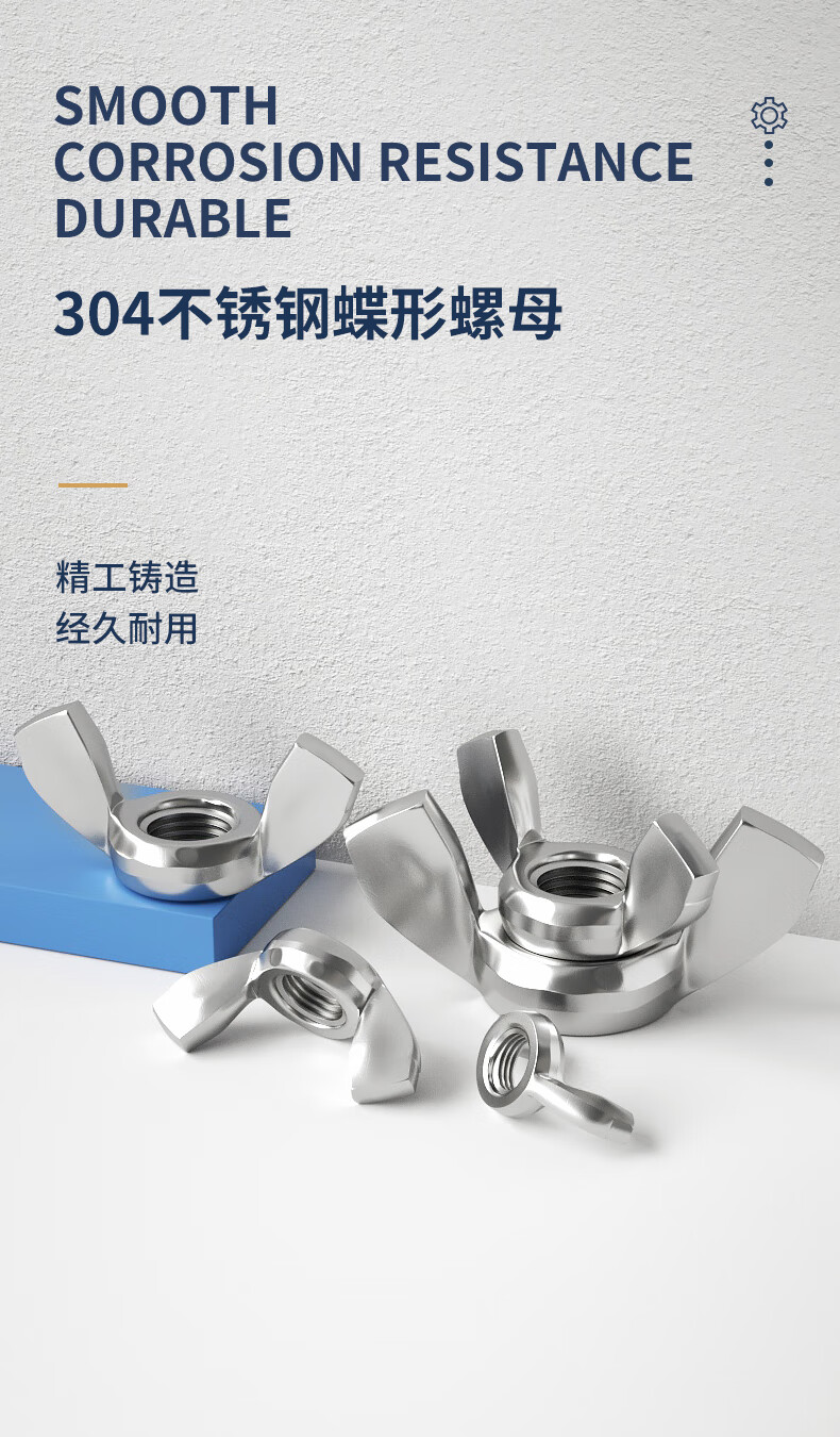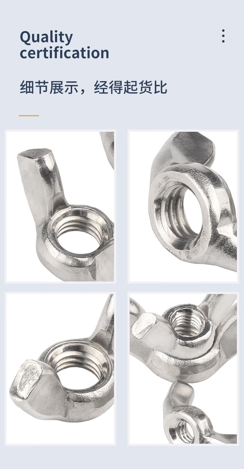 Guwanji 304 stainless steel butterfly nut butterfly nut ingot horn nut cap hand screw nut national standard screw cap 304 material M6 10 pieces