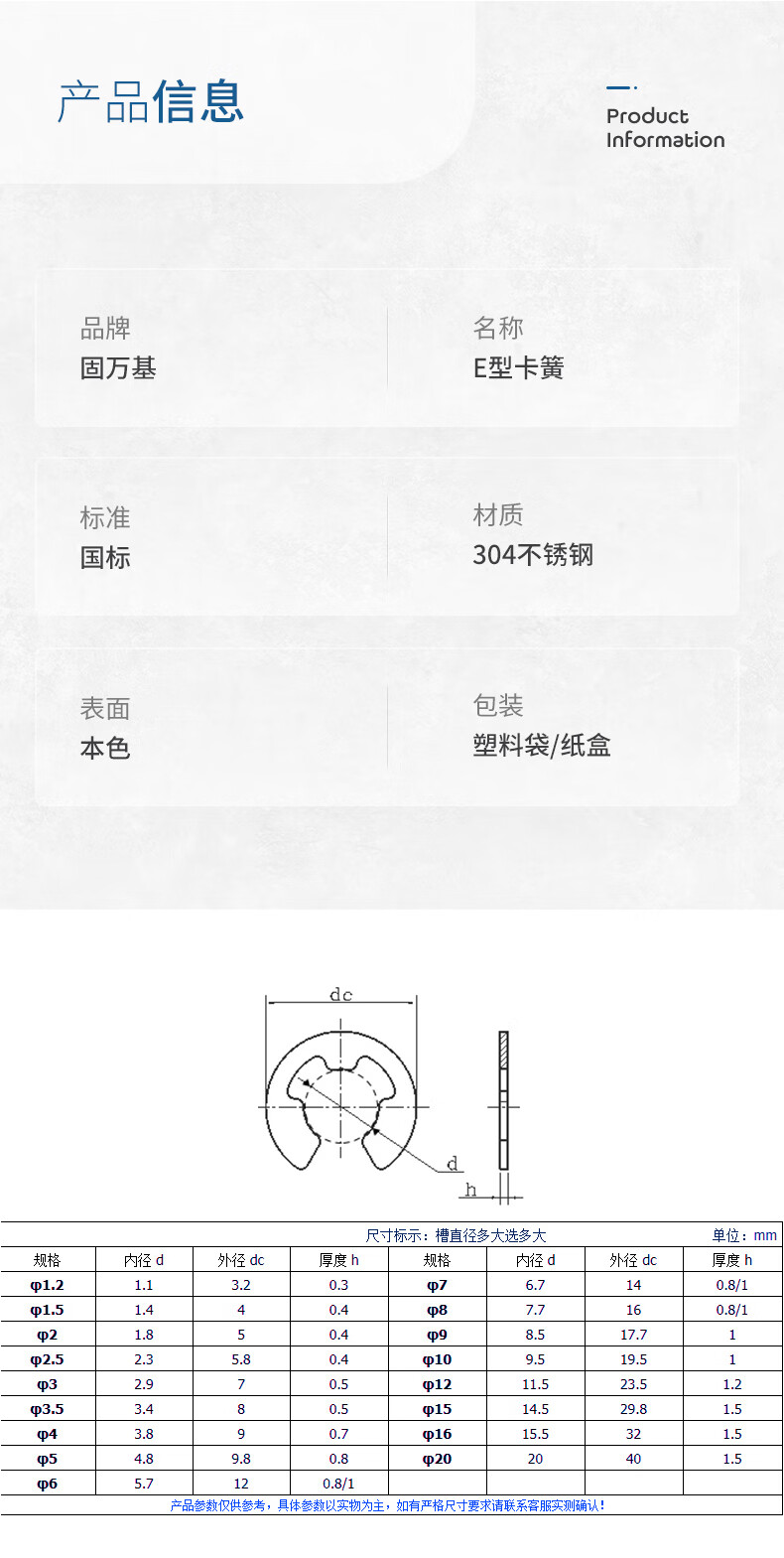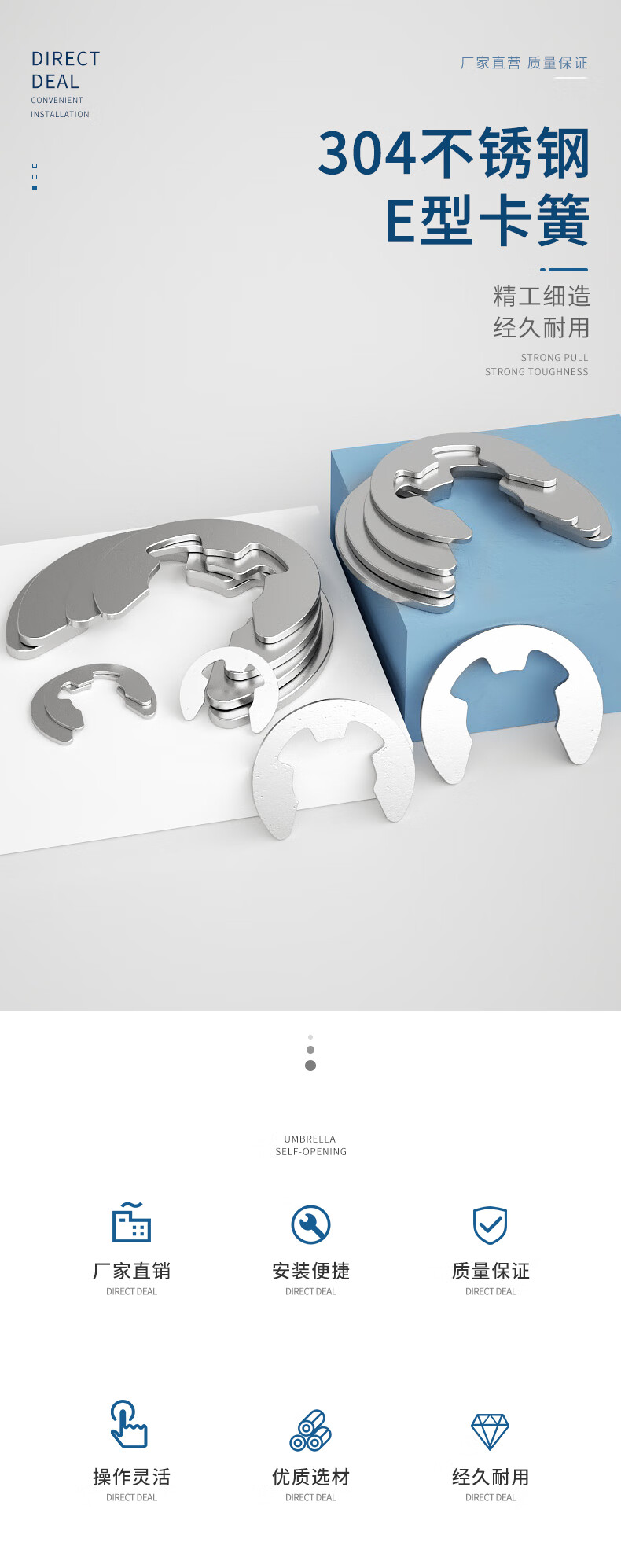 Guwanji 304 stainless steel open E-type snap ring retaining ring shaft E-ring snap retaining ring snap ring national standard fastener collection M4 200 pieces 304 material