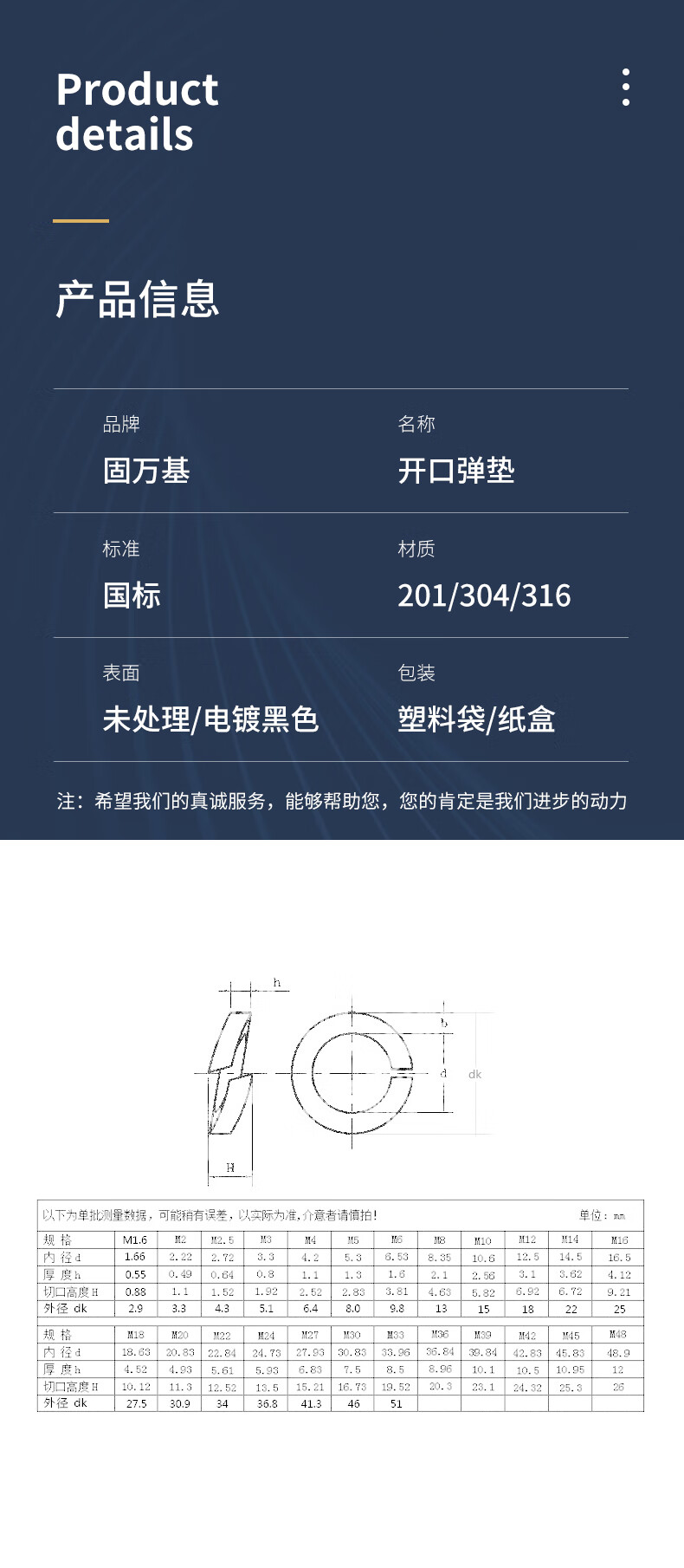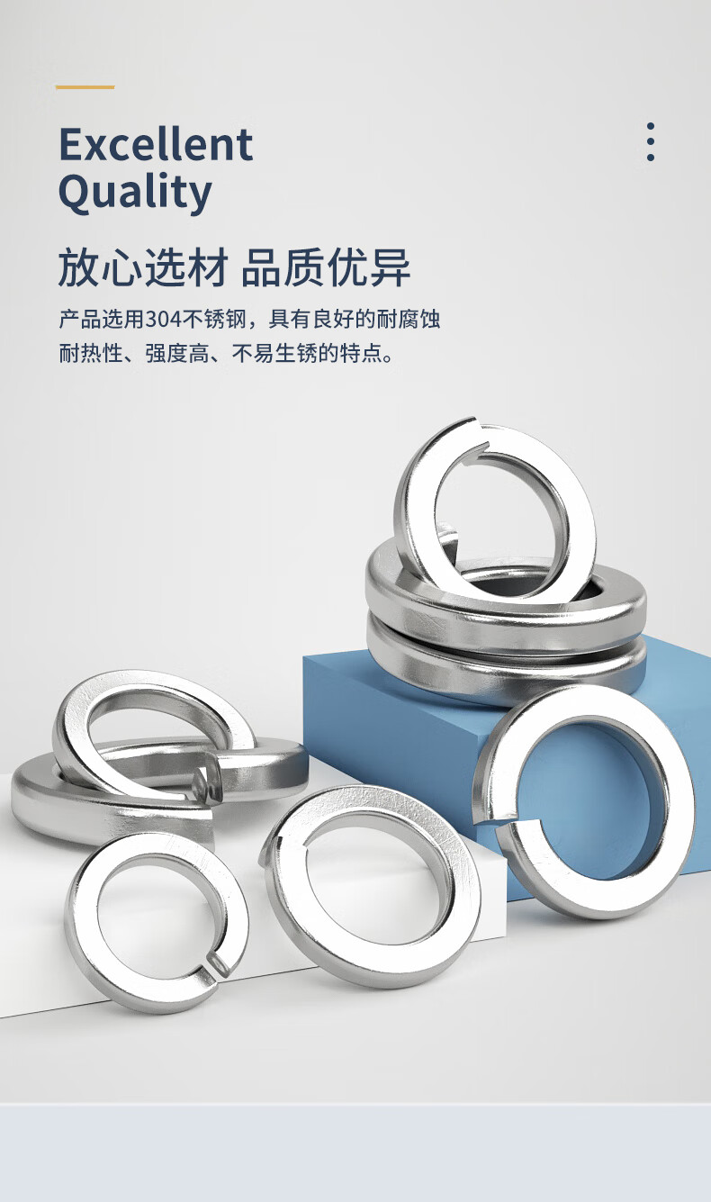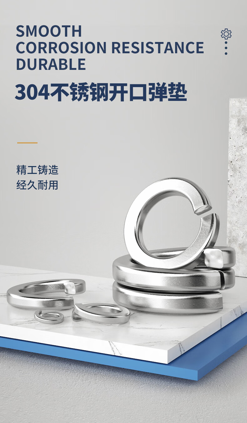 Guwanji spring washer 304 stainless steel open spring washer flat washer Washer elastic gasket national standard accessories M6 304 material-100 pieces