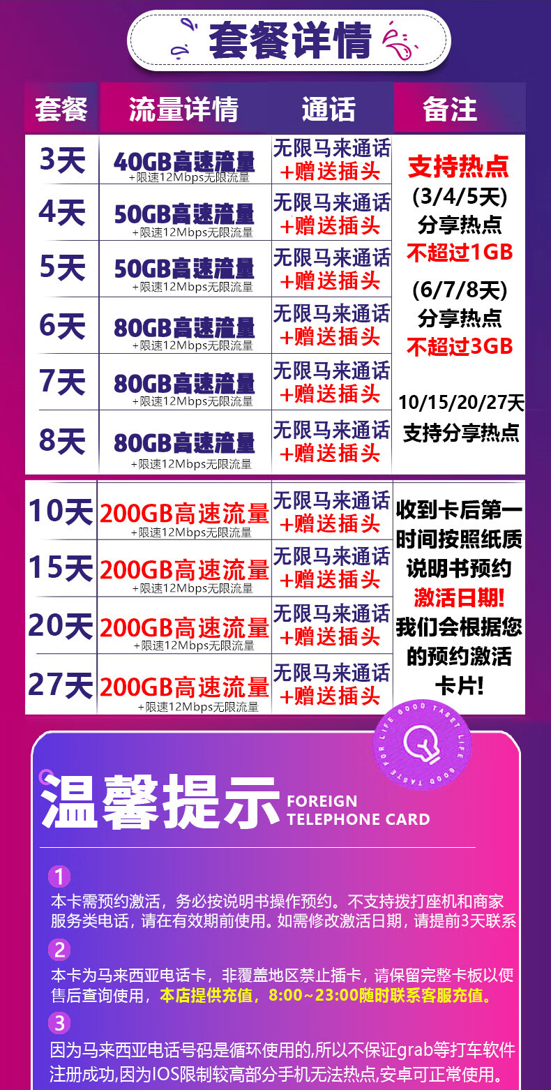 Malaysia 5G phone card mobile phone card Internet card celcom unlimited traffic Kuala Lumpur Sabah sim card 4 days unlimited high-speed traffic + Malay unlimited calls + plug