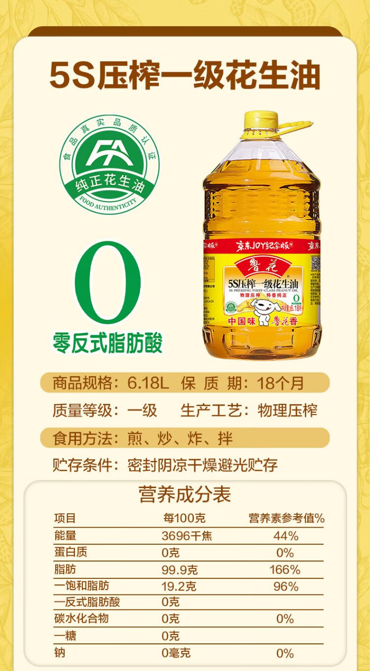 Luhua Fidelity Peanut Oil 5S Physical Pressing Level 1 Peanut Oil 6.18L