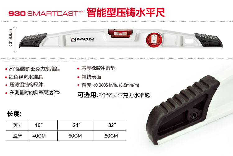 KAPRO die-cast aluminum alloy 930 level Cape Road level red level bubble Israel 930-40cm (non-magnetic)