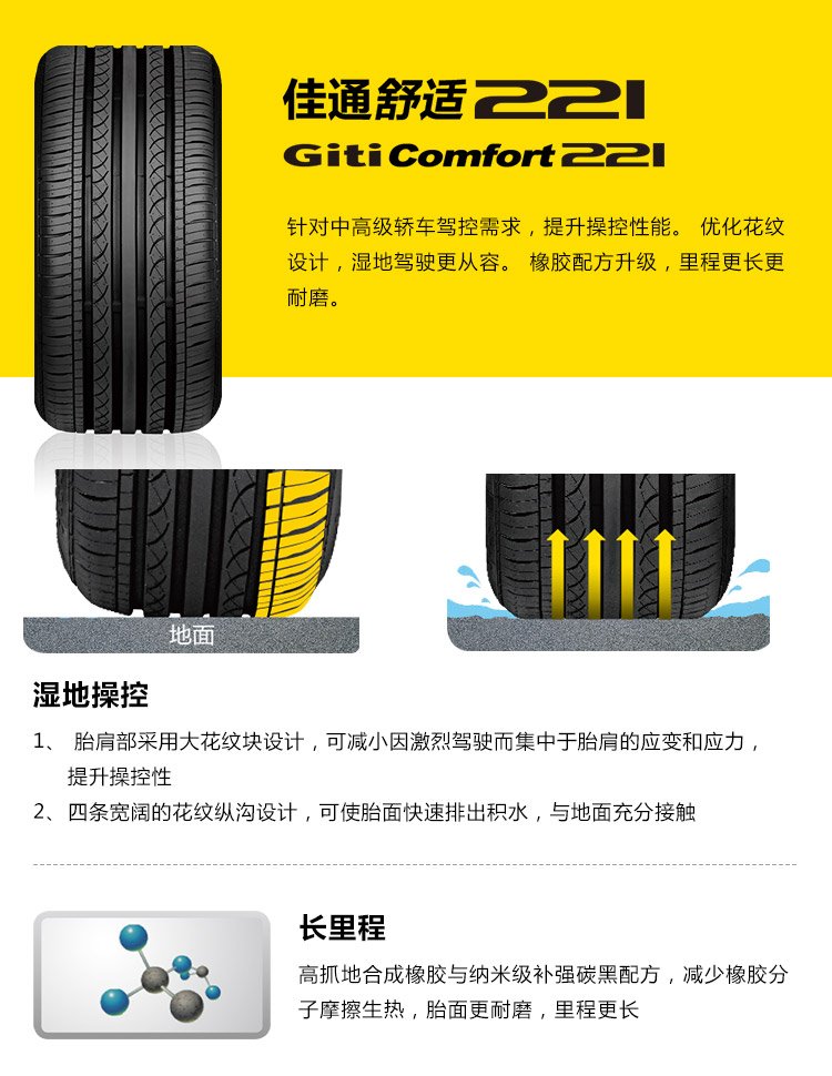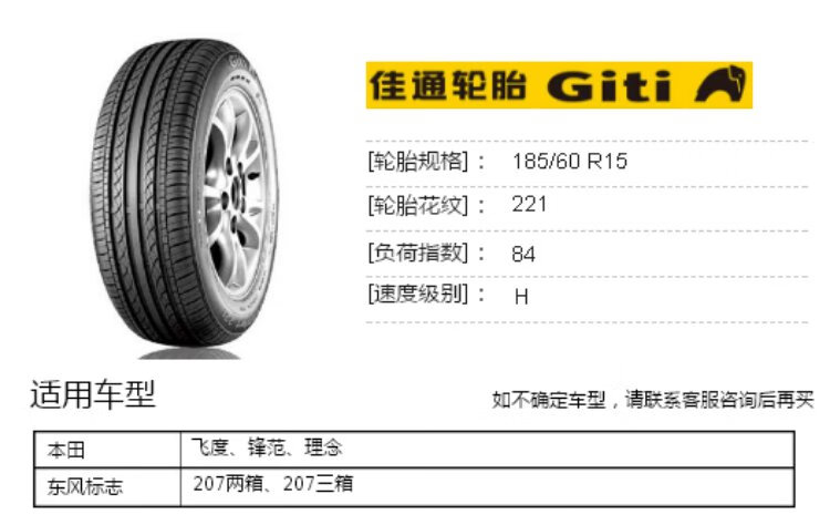 Giti Tire 185/60R15 84H 221 Suitable for Fit/Jetta/Vios/Santana/Polo