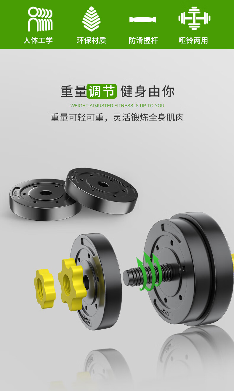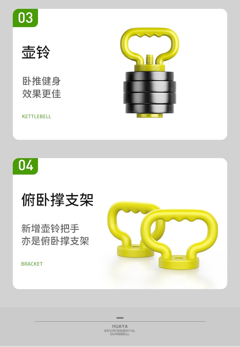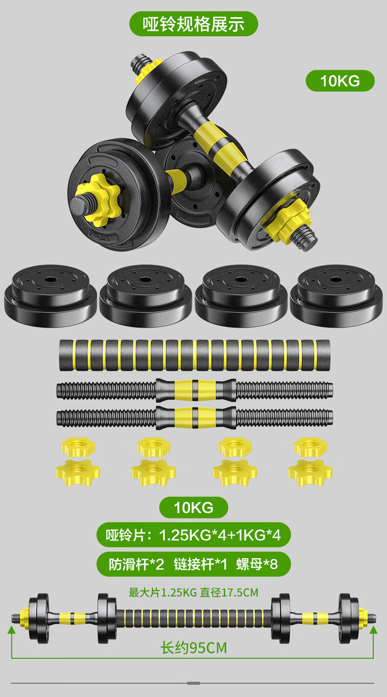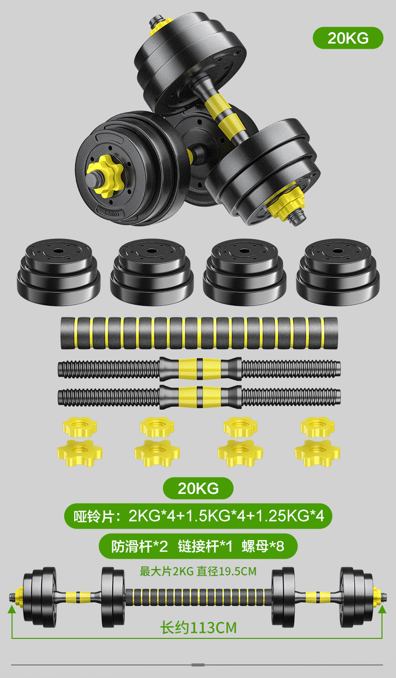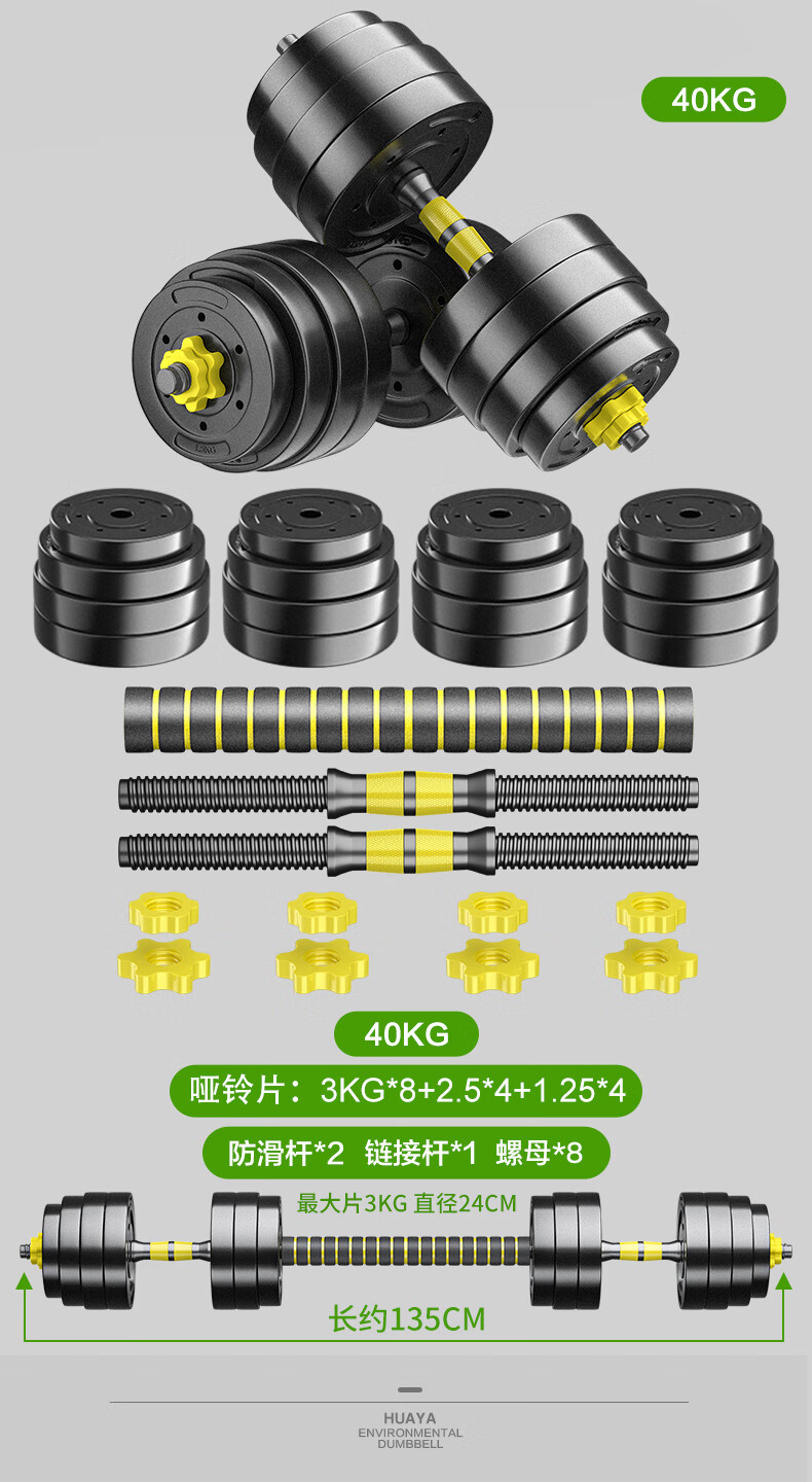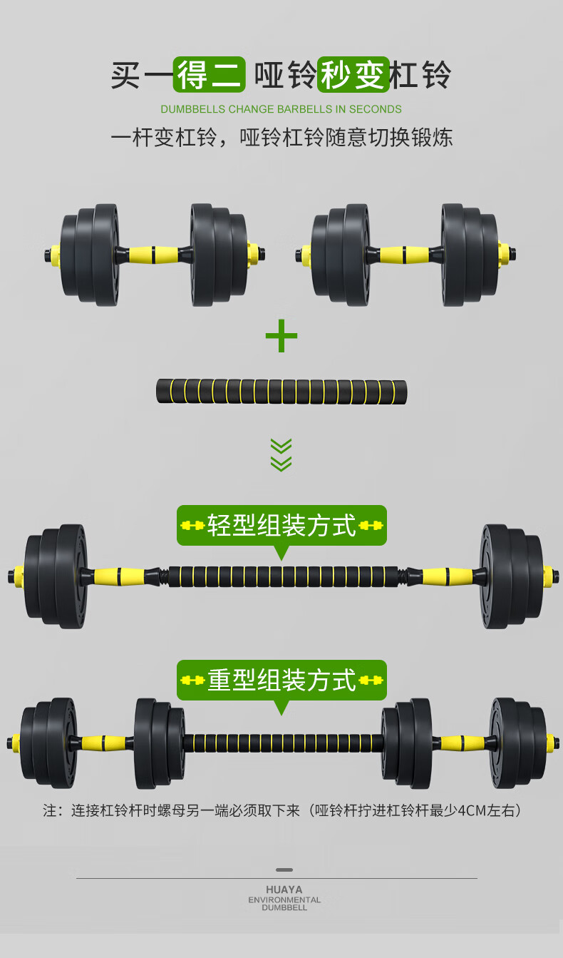 Huaya (HUAYA) dumbbell men's fitness home barbell set removable and adjustable environmentally friendly rubber-coated handbell Yaling exercise equipment 20kg (left and right 10kg each) + connecting rod