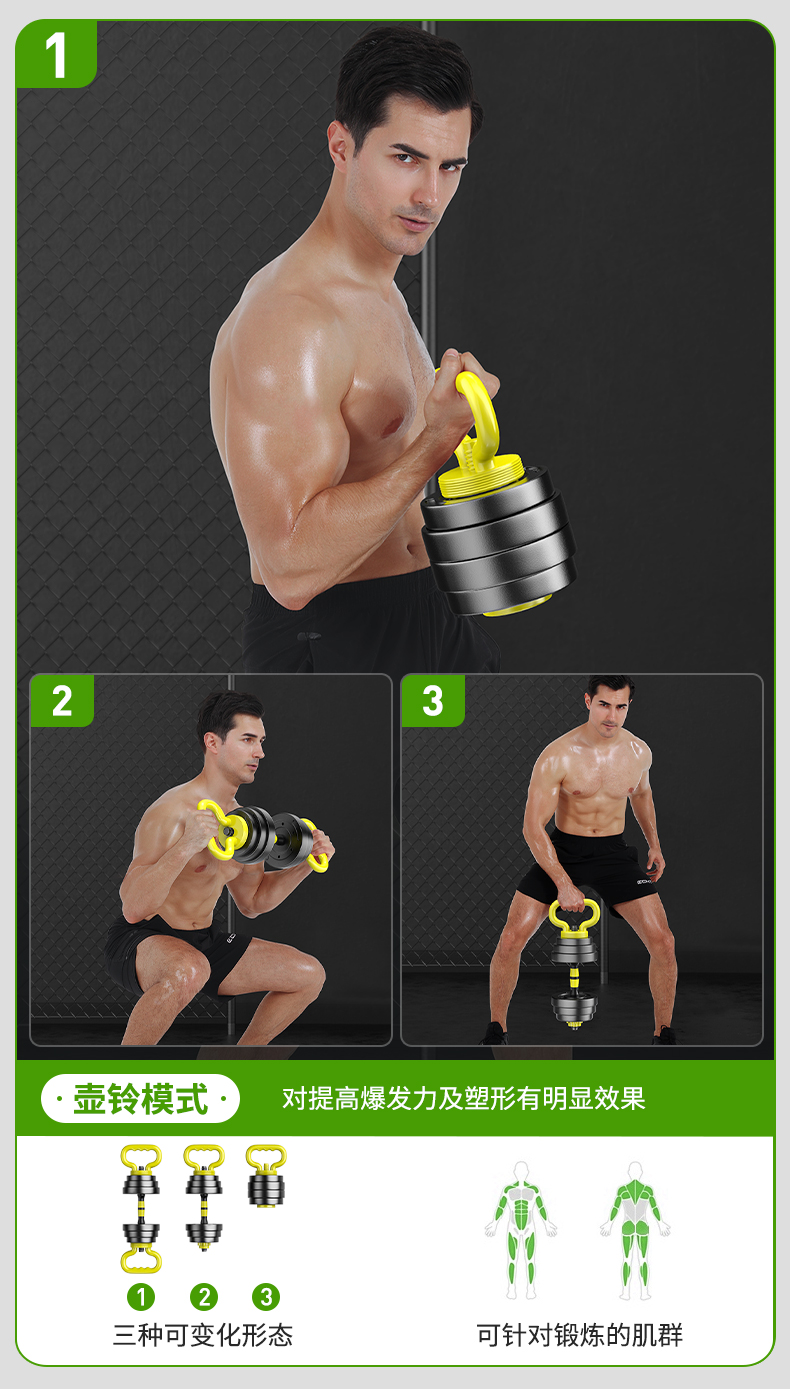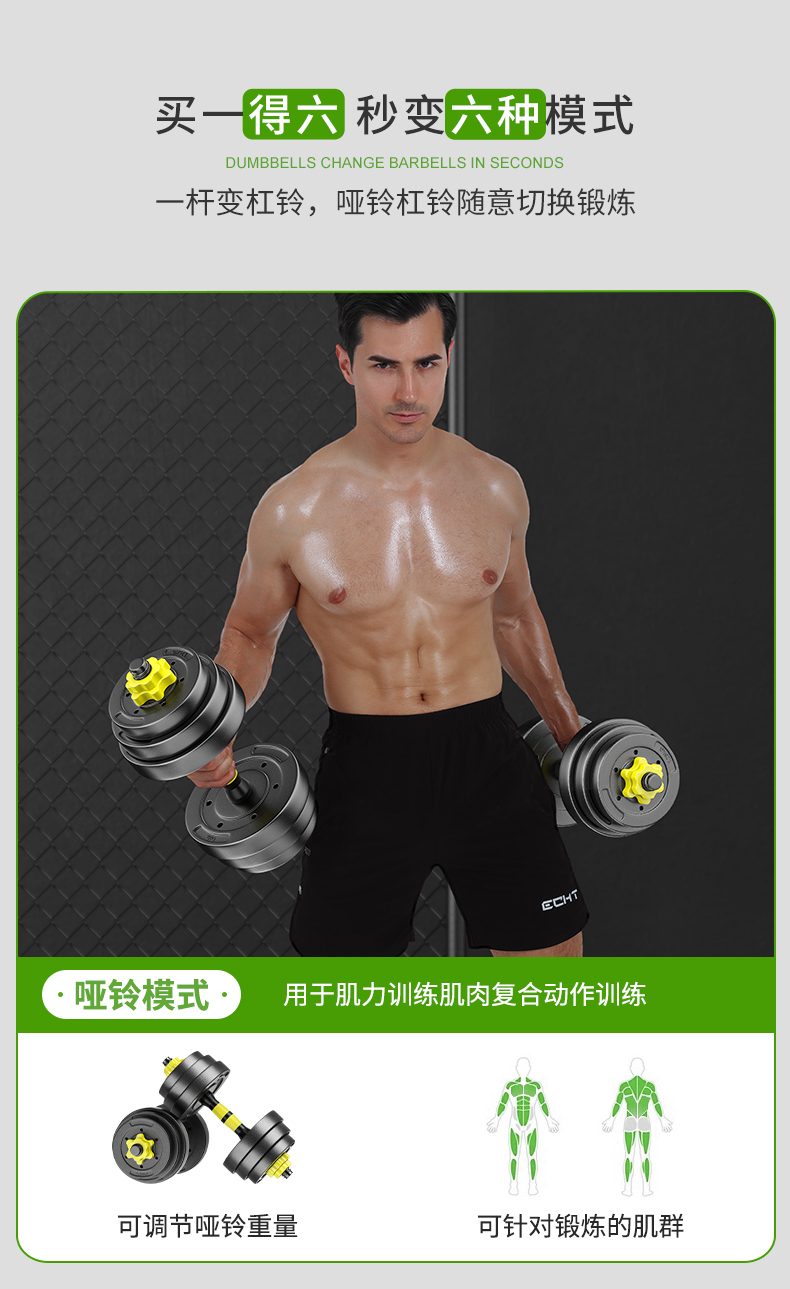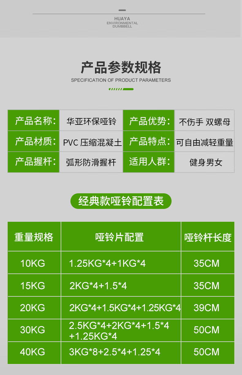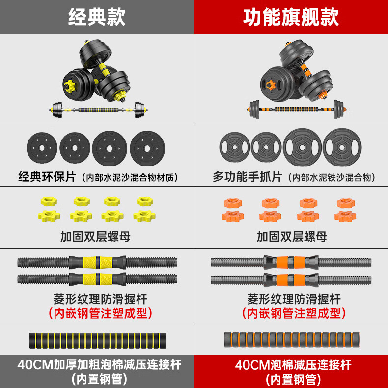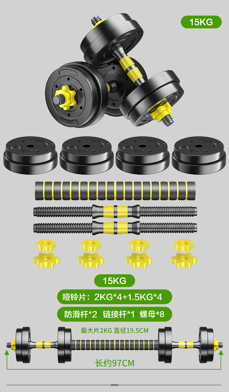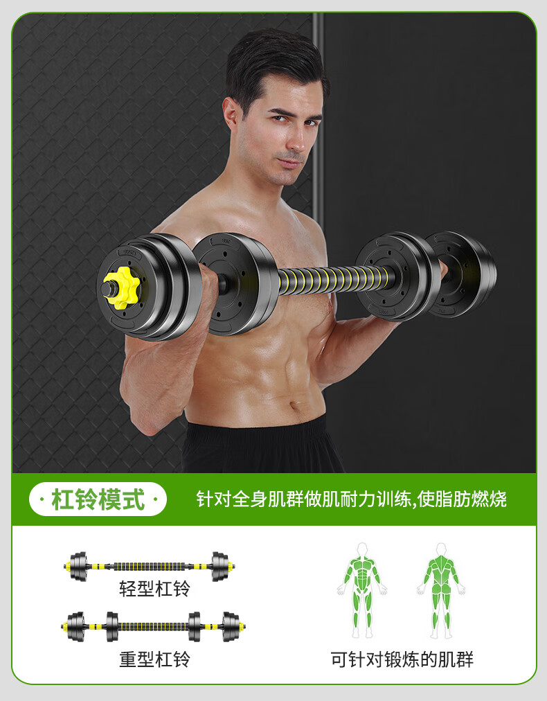 Huaya (HUAYA) dumbbell men's fitness home barbell set removable and adjustable environmentally friendly rubber-coated handbell Yaling exercise equipment 20kg (left and right 10kg each) + connecting rod