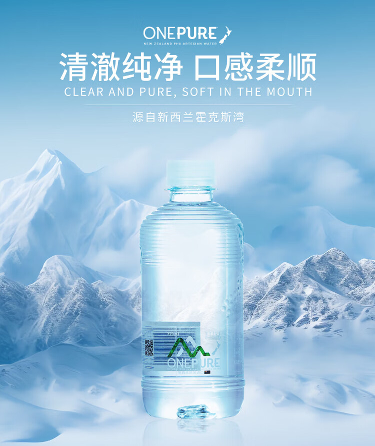 ONE PURE imported from New Zealand, natural soft mineral water 320ml*24 bottles, high-end weakly alkaline mineral drinking water