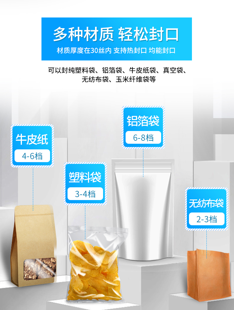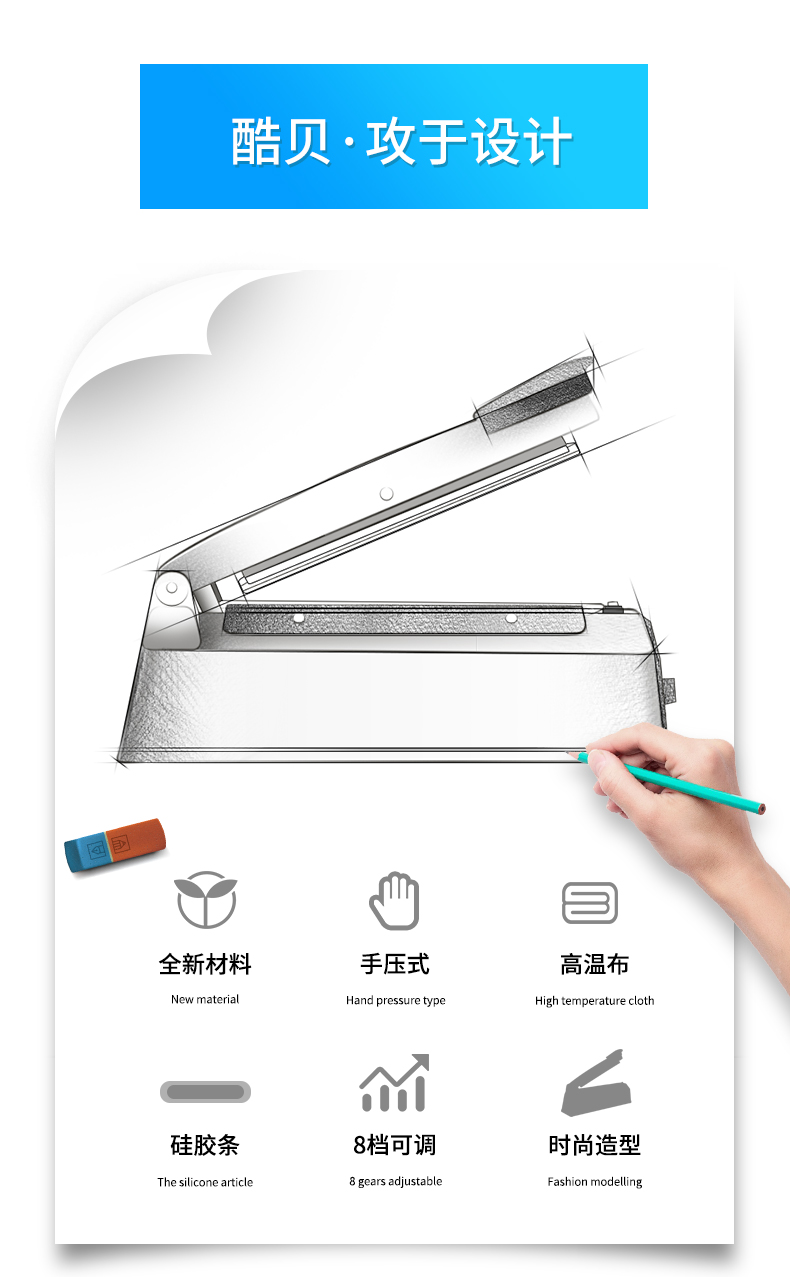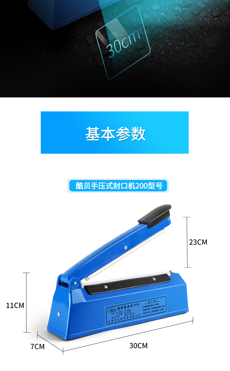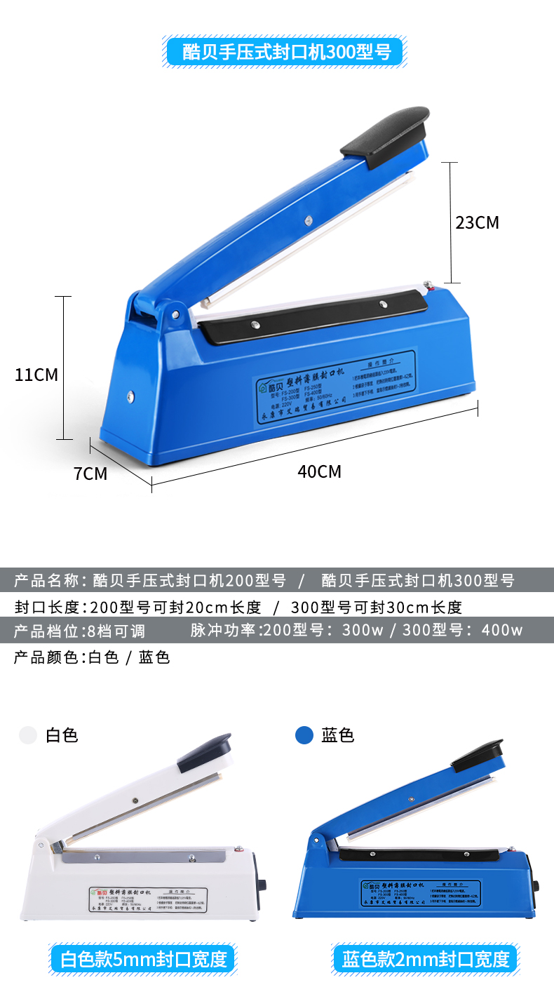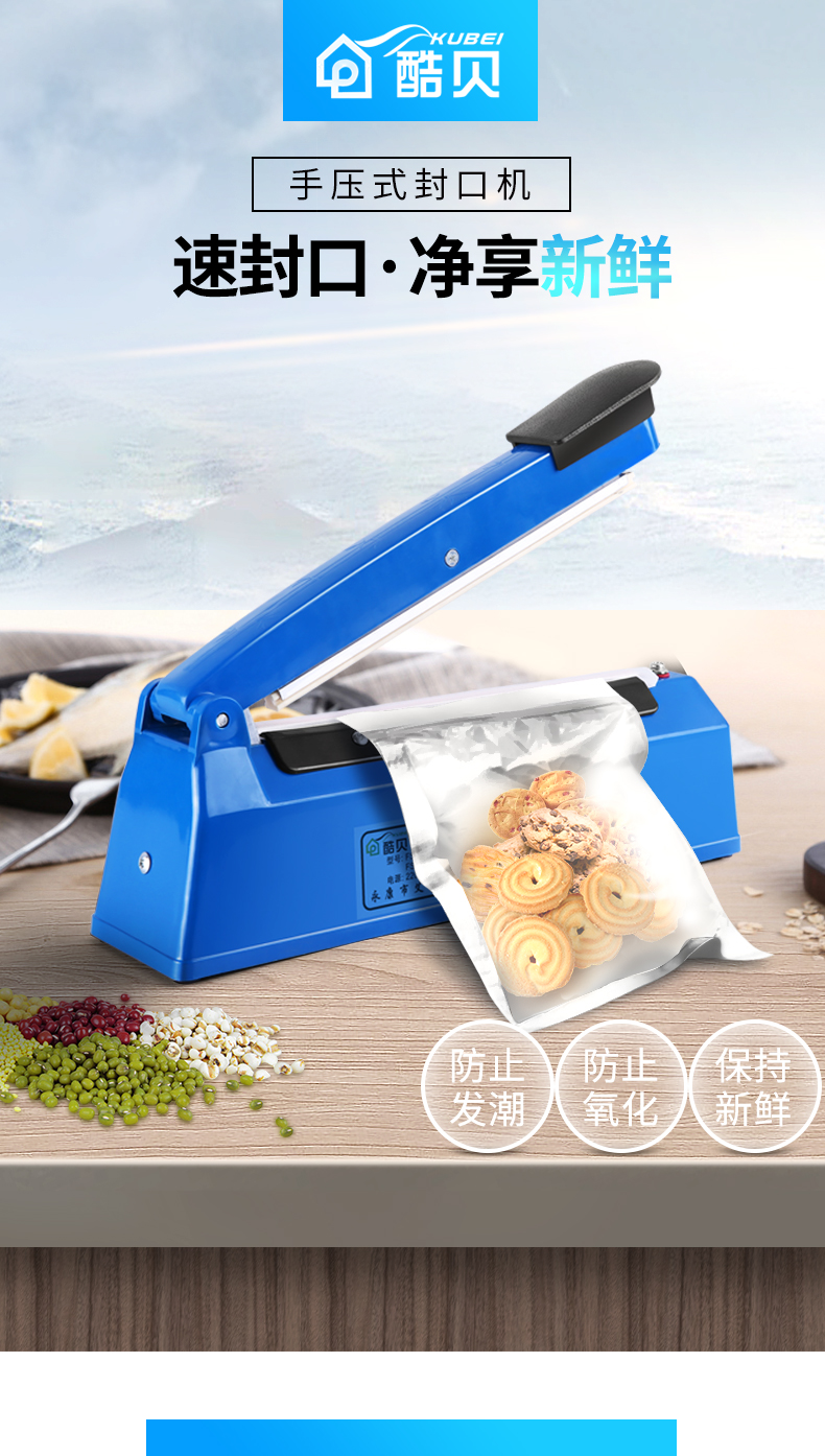Kubei sealing machine hand-pressed plastic bag film tea aluminum foil bag small household sealer Chinese medicine non-woven heat sealing machine sealing fresh-keeping packaging bag moon cake sealing automatic 20cm blue sealing machine 2 mm + 5 sets of heating wire high temperature cloth