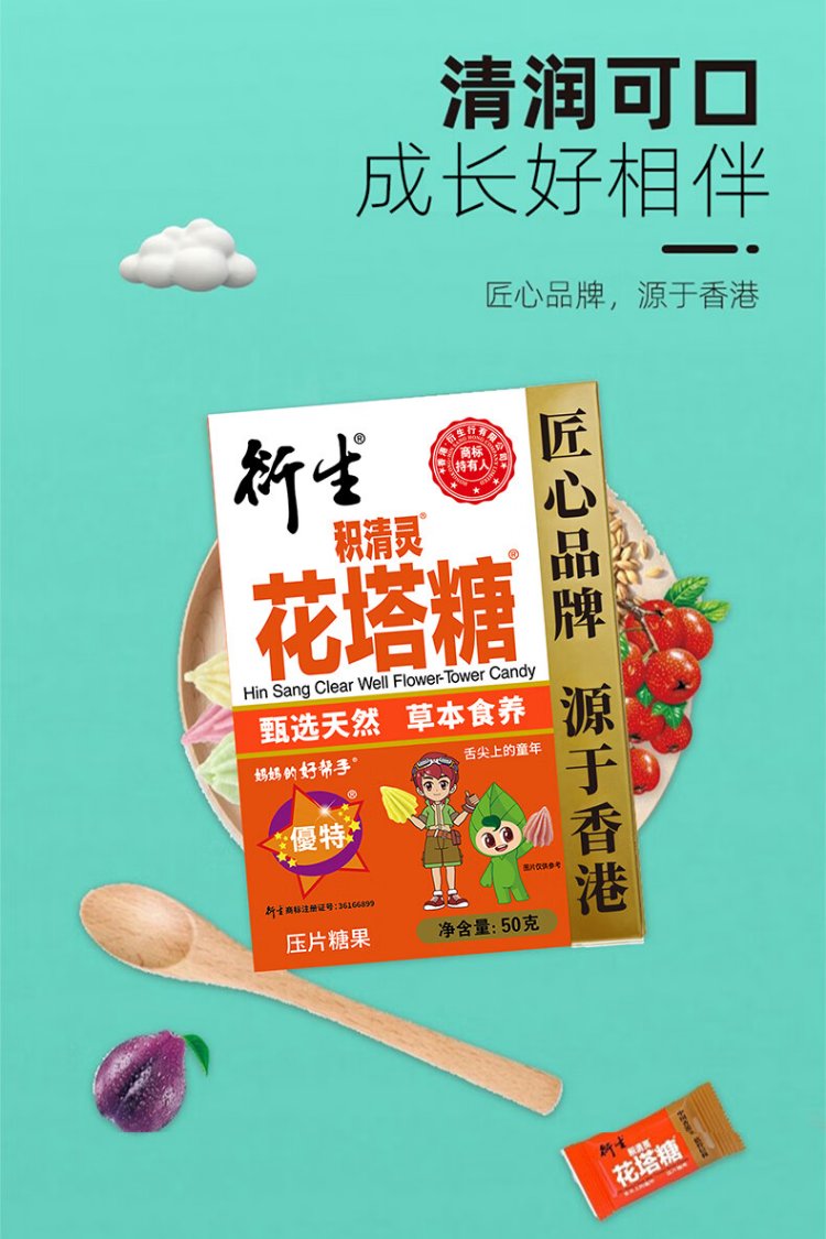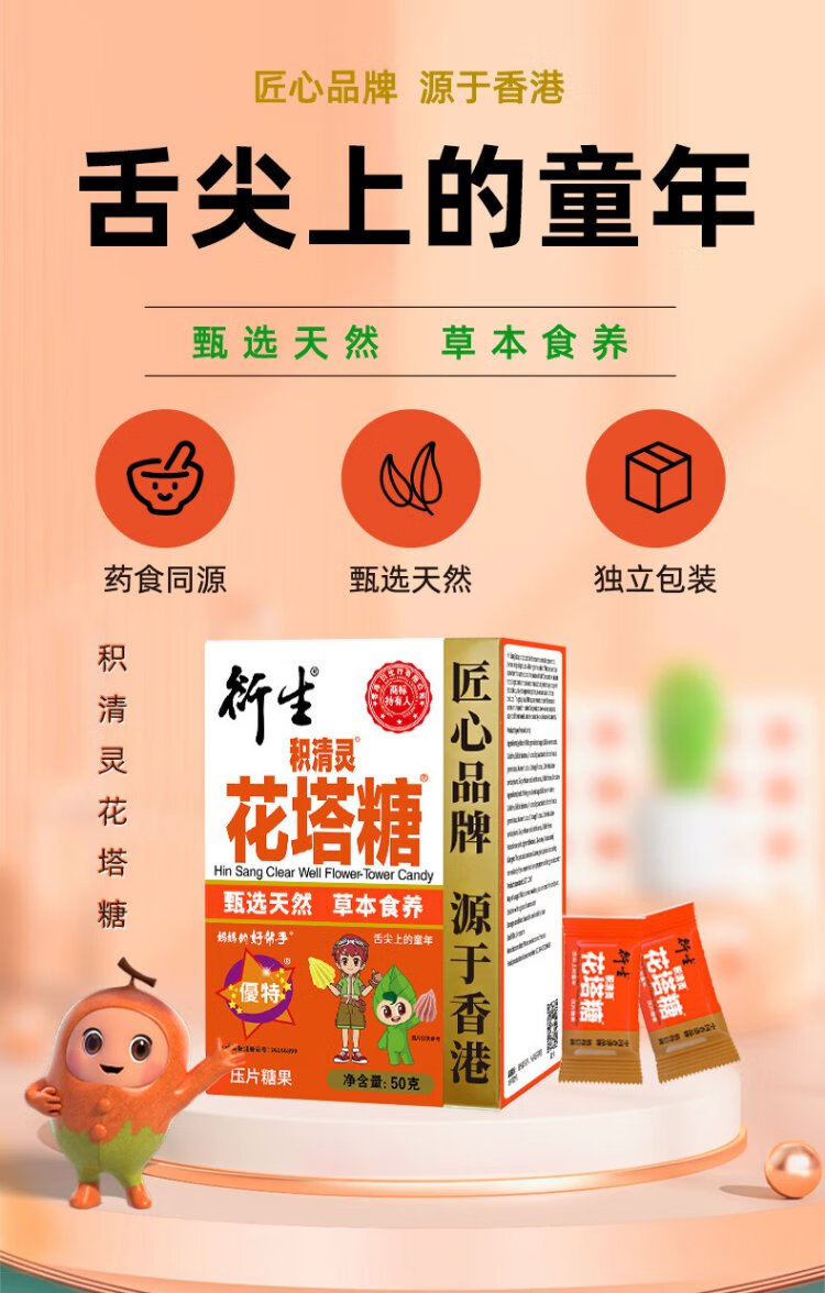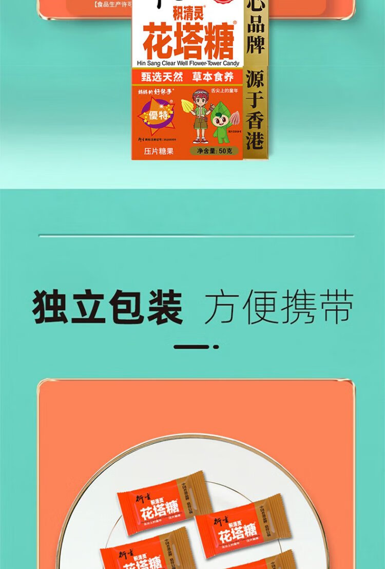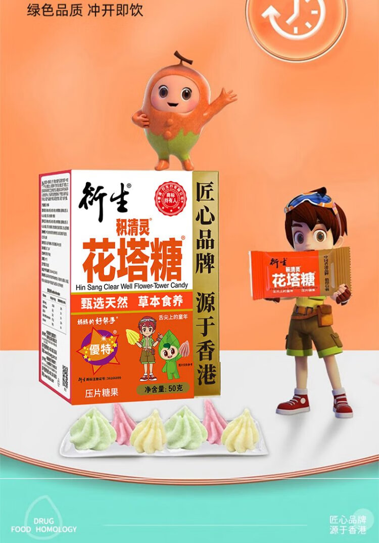 Derived Flower Tower Candy 50g Jiqingling Candy Hawthorn Black Plum Herbal Extract Hong Kong Baby Snacks 50 capsules/box