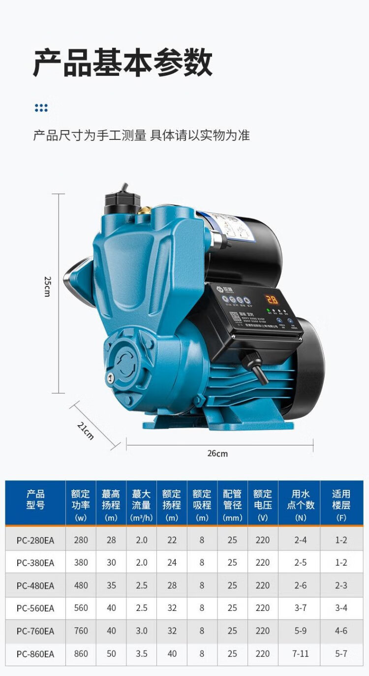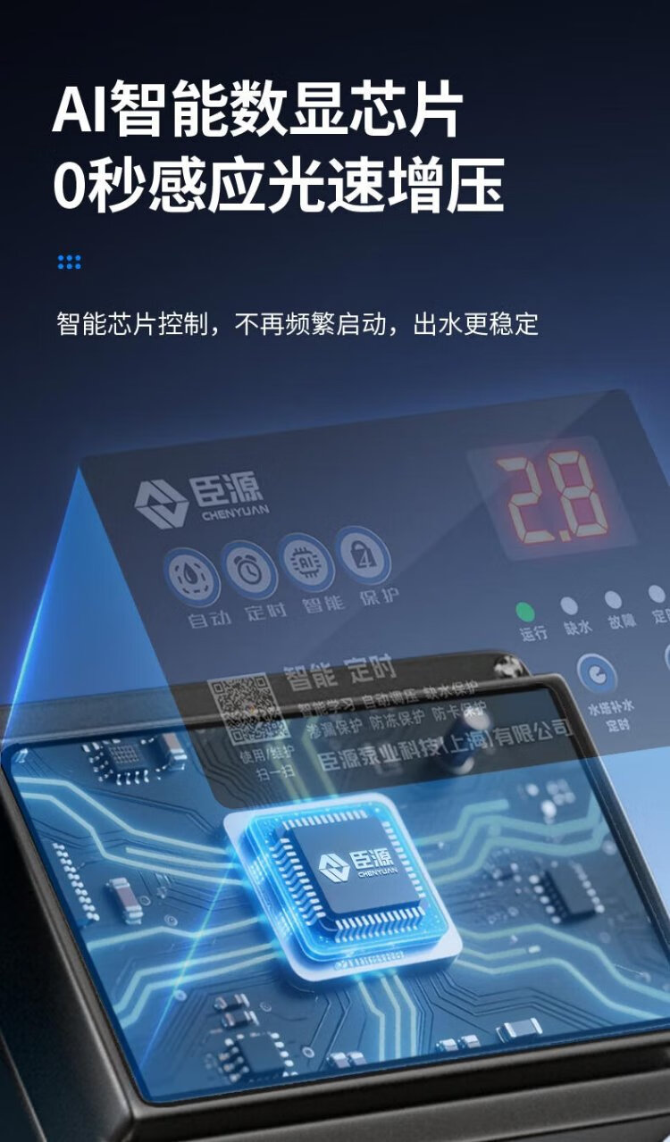 Chenyuan booster pump household self-priming pump water heater fully automatic water pump water well pipe solar booster pump 560W intelligent self-priming pump (AI LCD adjustment-free)