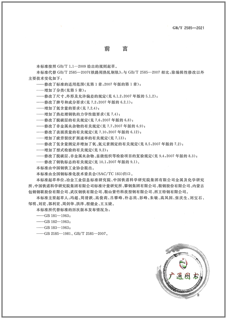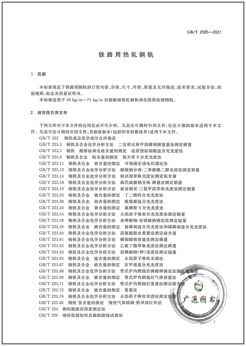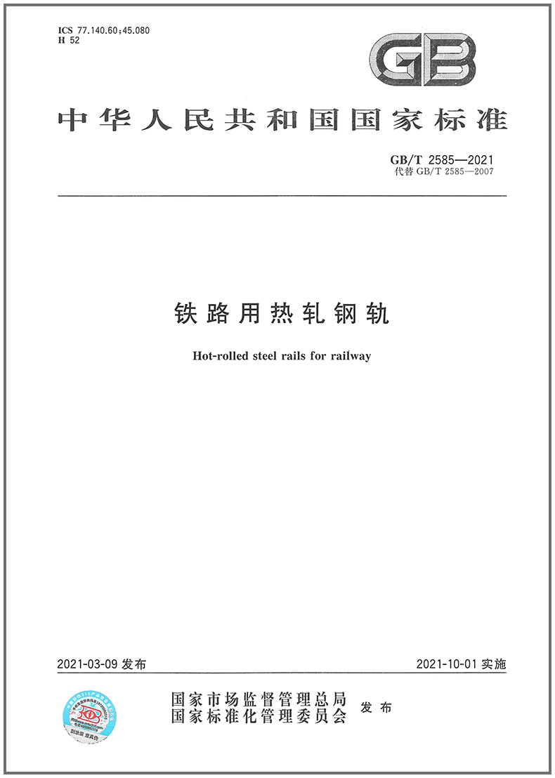 GB/T 2585-2021 Hot-rolled rails for railways