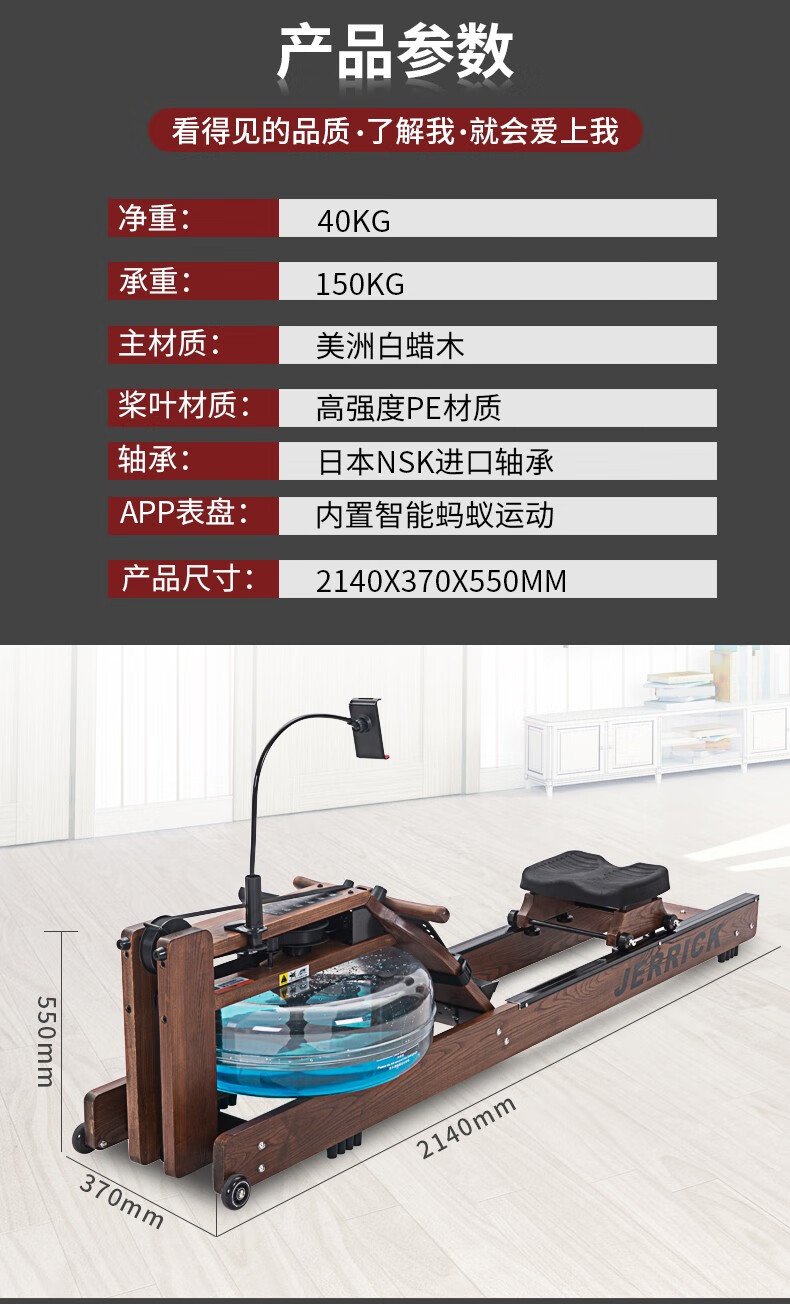 American (JERRICK) JERRICK water resistance rowing machine solid wood home commercial real-life APP connection JLK-528 American ash wood/smart fashion model-JLK528