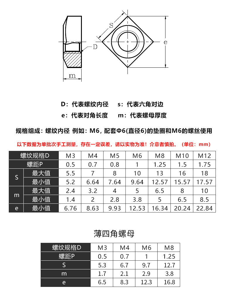 Guwanji 304 stainless steel square nut galvanized square nut square nut square nut square nut national standard M6 (304 material-20 pieces)