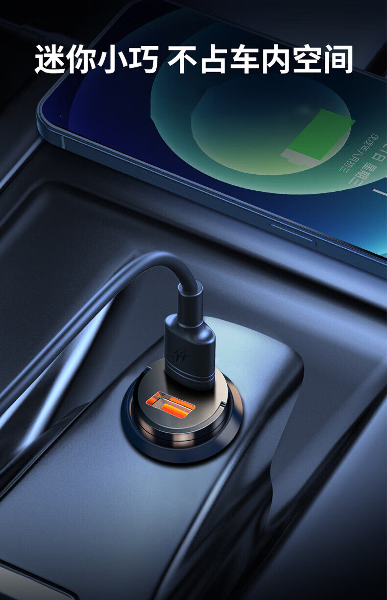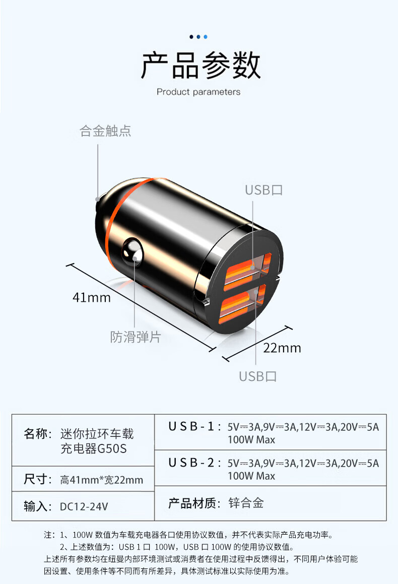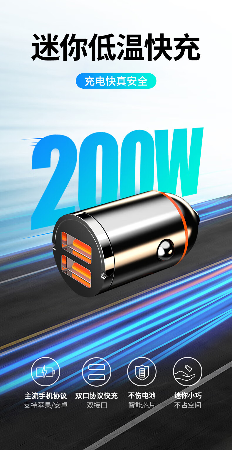 Newman car charger super fast charging car universal cigarette lighter one to two USB pull ring metal mini car charger 200W dual USB port super fast charging/metal mini