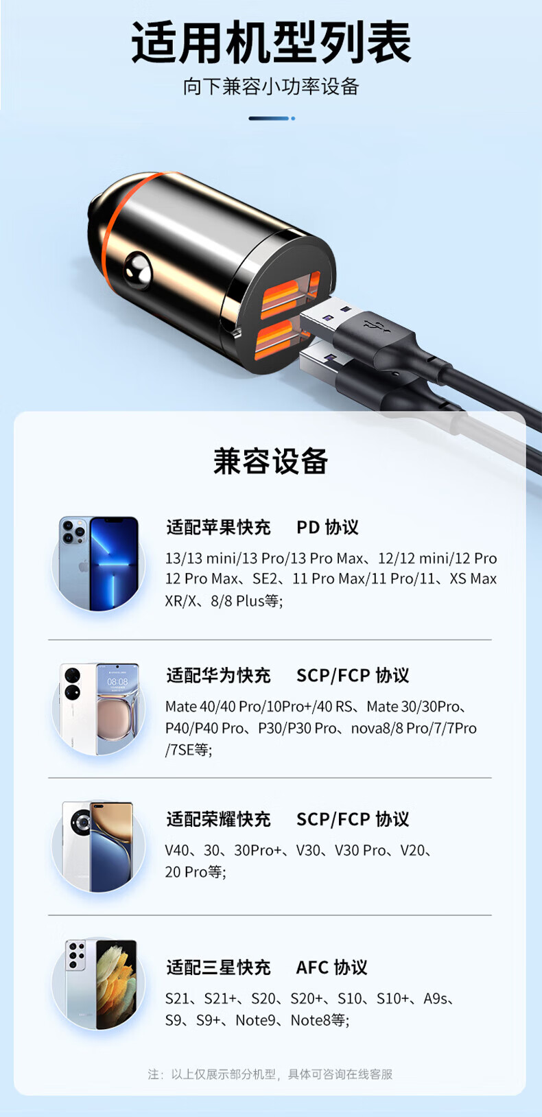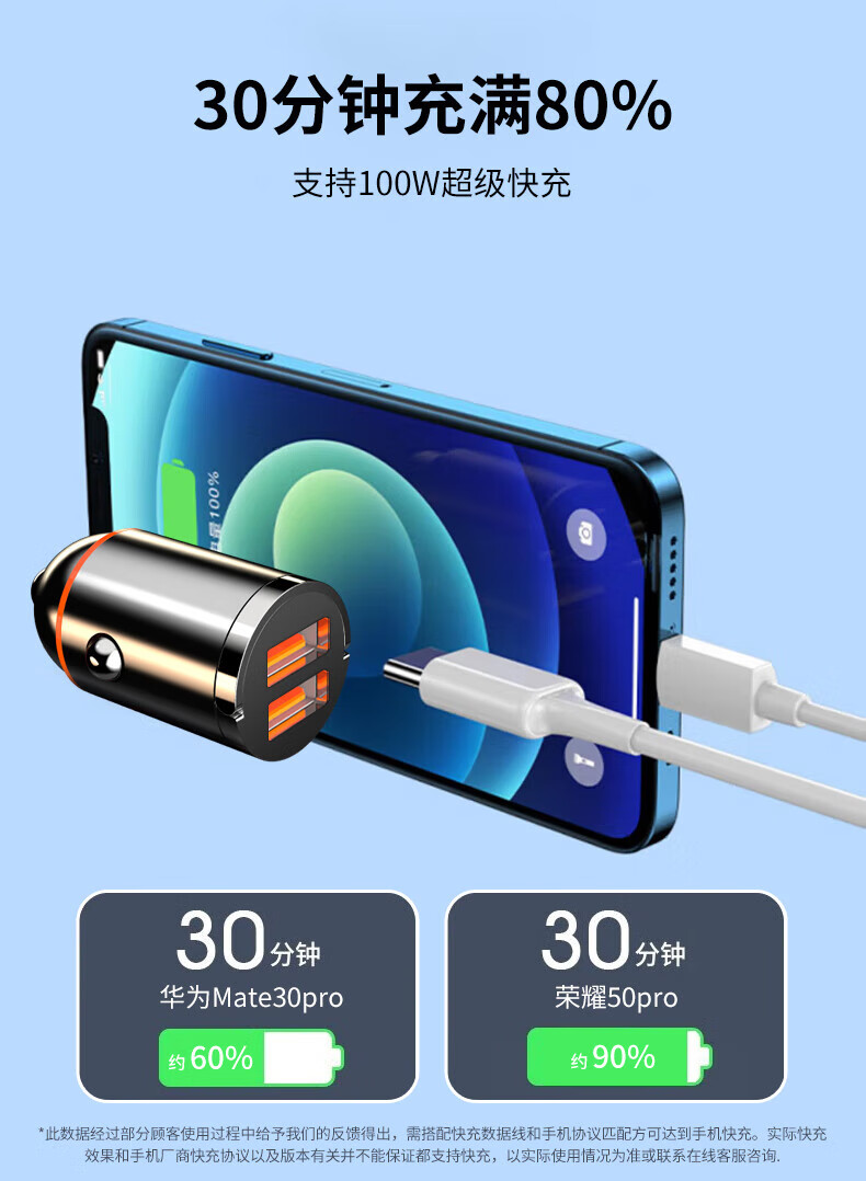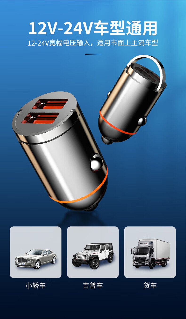Newman car charger super fast charging car universal cigarette lighter one to two USB pull ring metal mini car charger 200W dual USB port super fast charging/metal mini