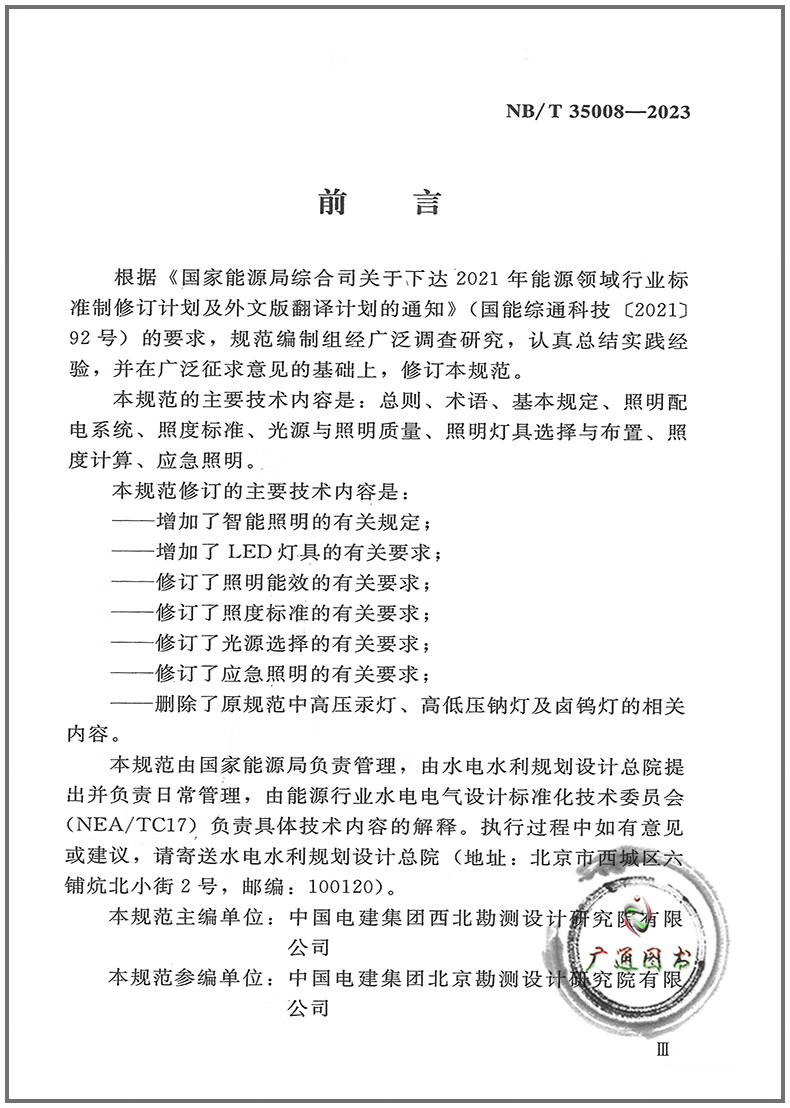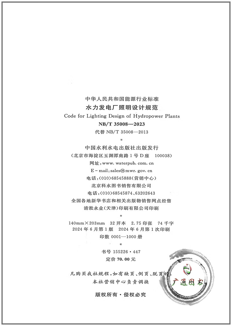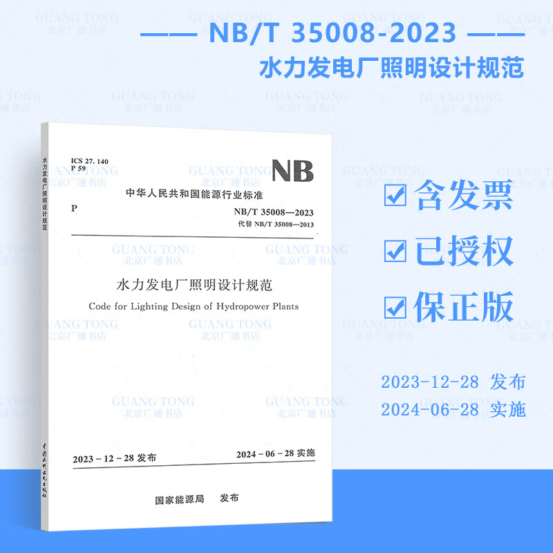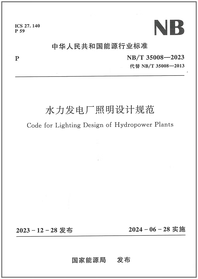 Genuine in stock NB/T 35008-2023 Hydroelectric power plant lighting design specifications 2025 new updated standards for power transmission and transformation professional examination