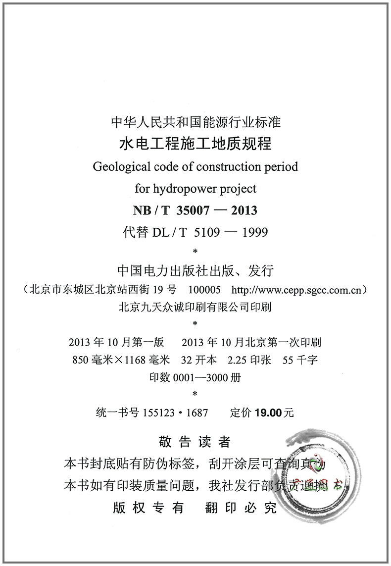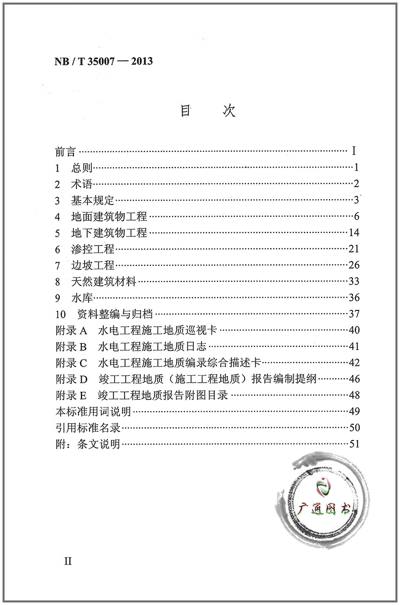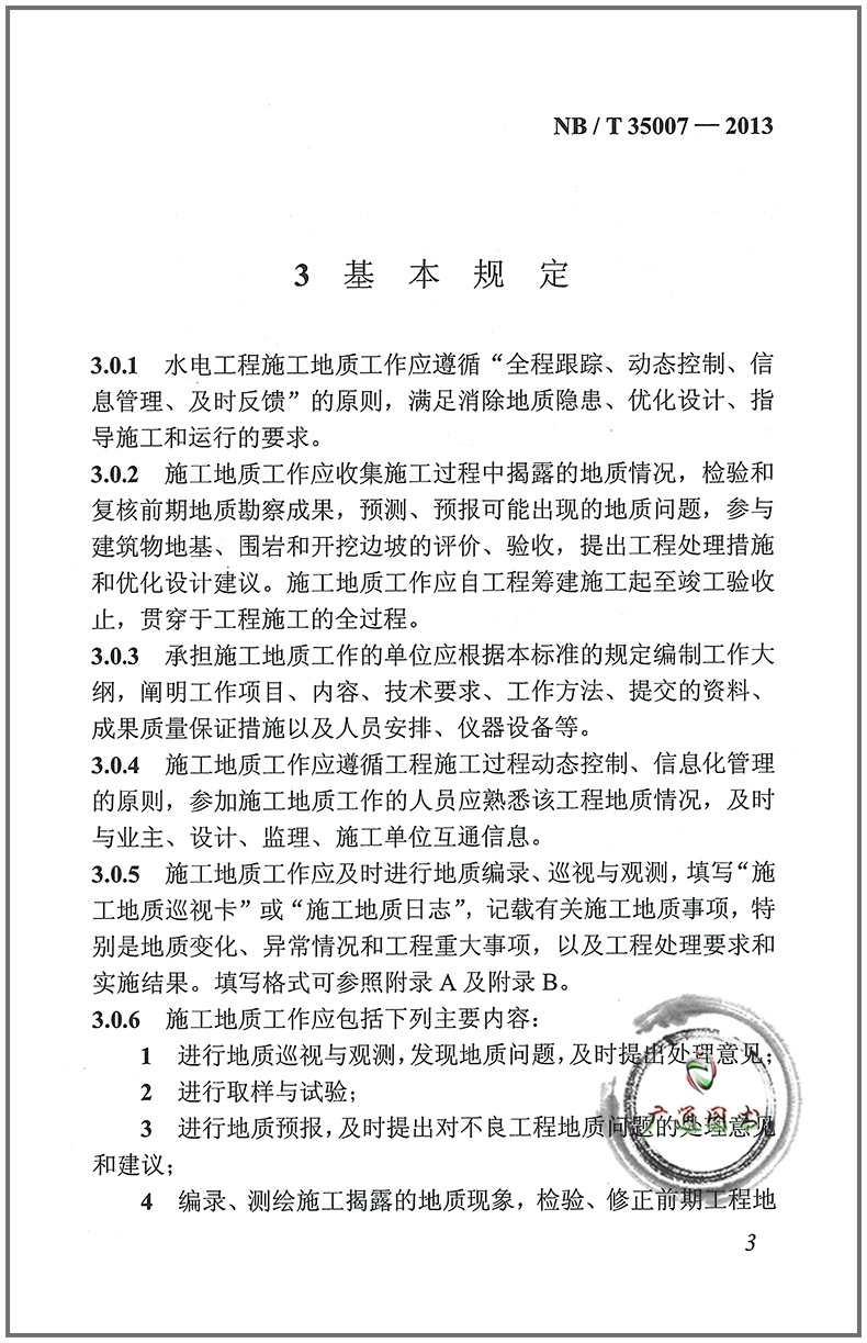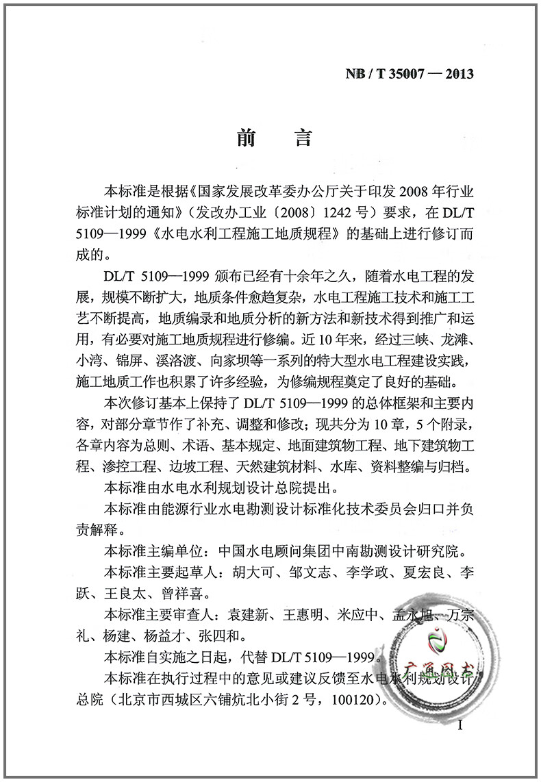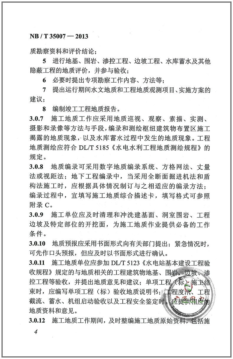 NB/T 35007-2013 Geological regulations for hydropower engineering construction (replacing DL/T 5109 1999)