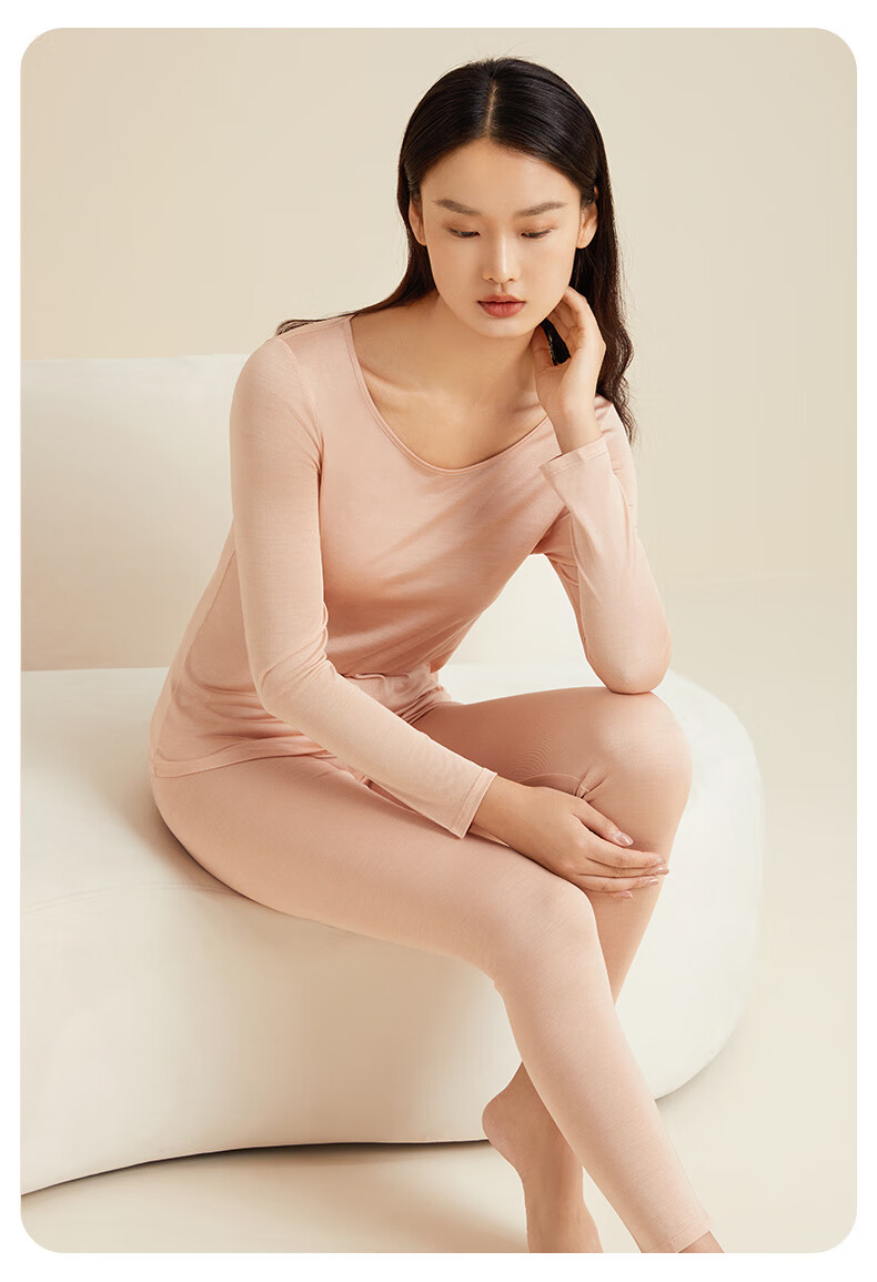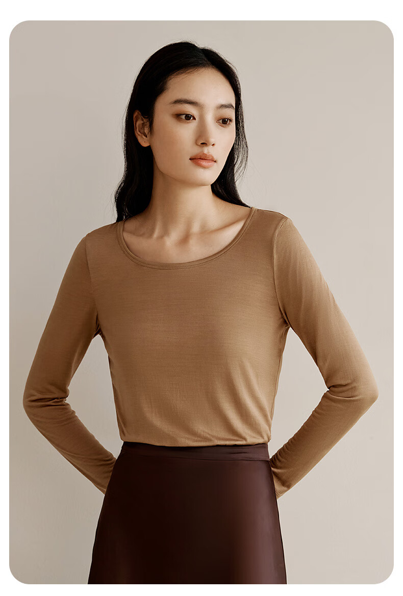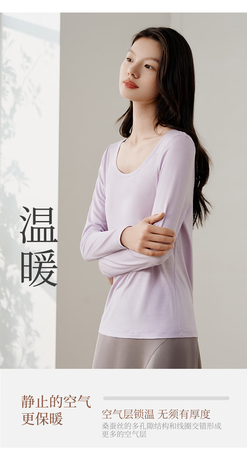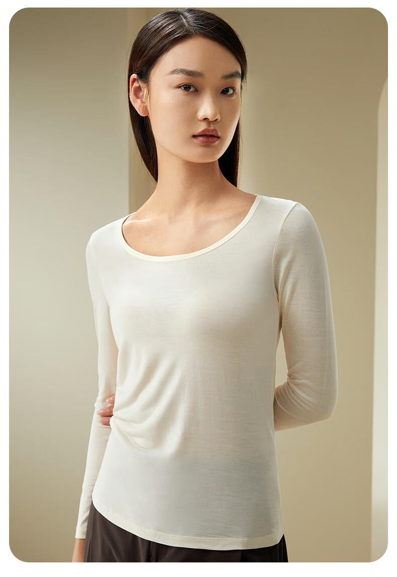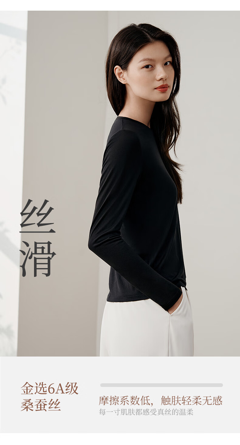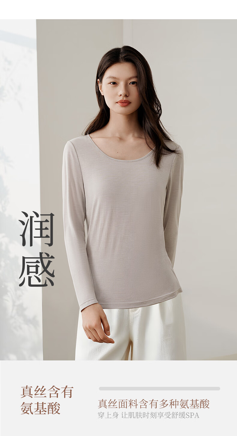 Jinsanta Silk Bottoming Shirt Women's 100% Mulberry Silk Round Neck Autumn and Winter Bottoming Autumn Clothing and Autumn Pants Muscle Bottoming Top - Flesh M