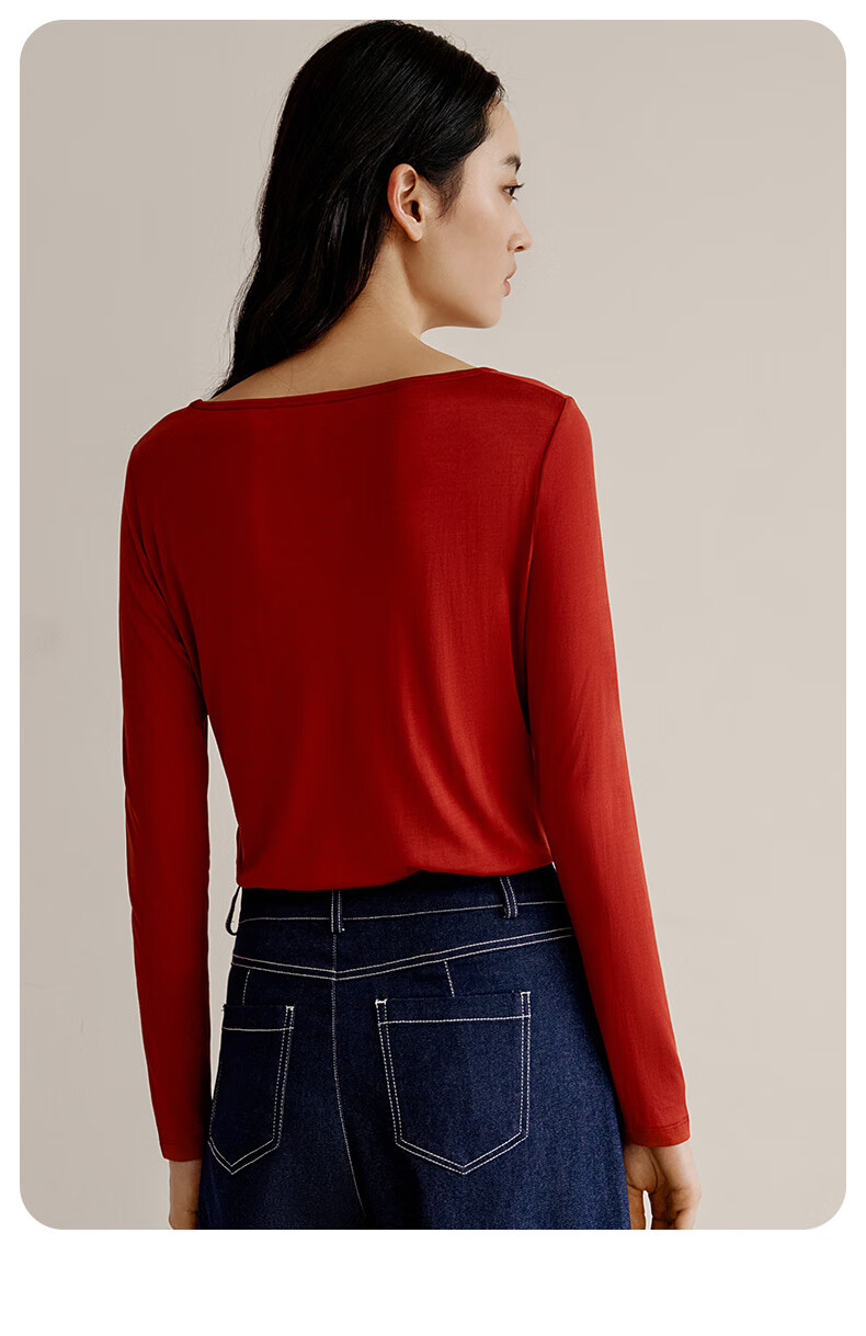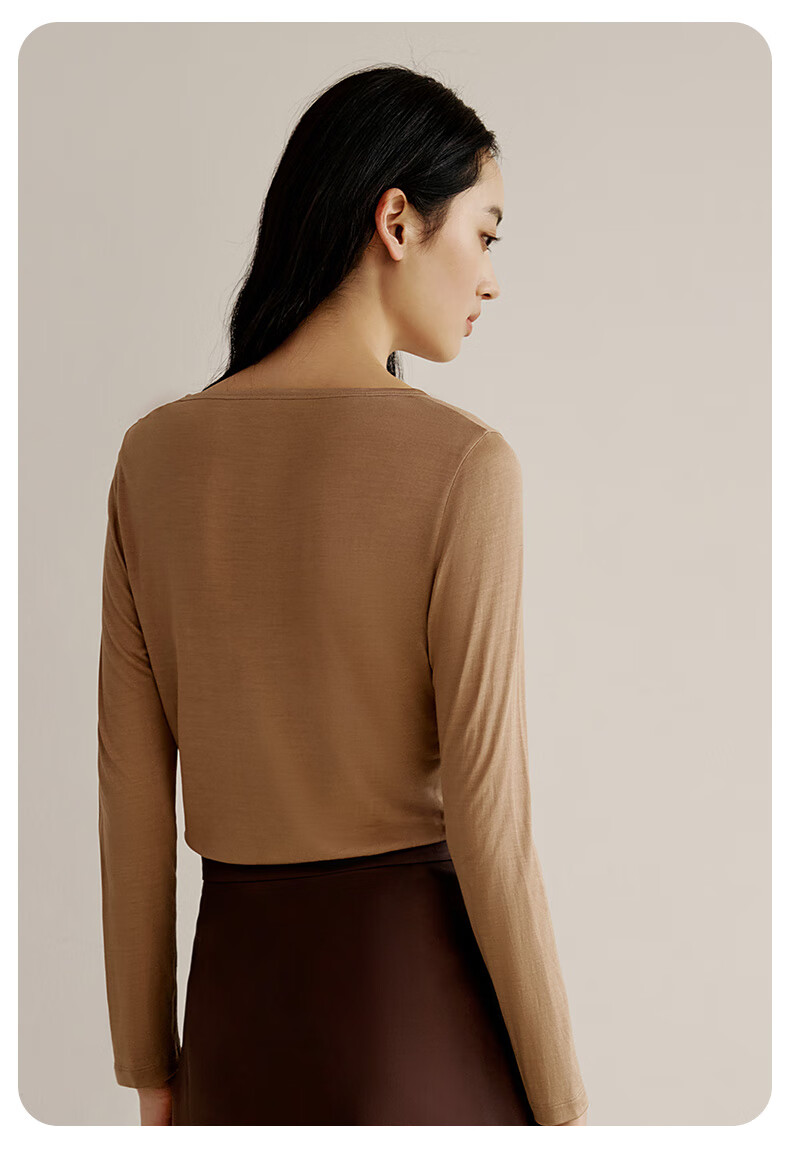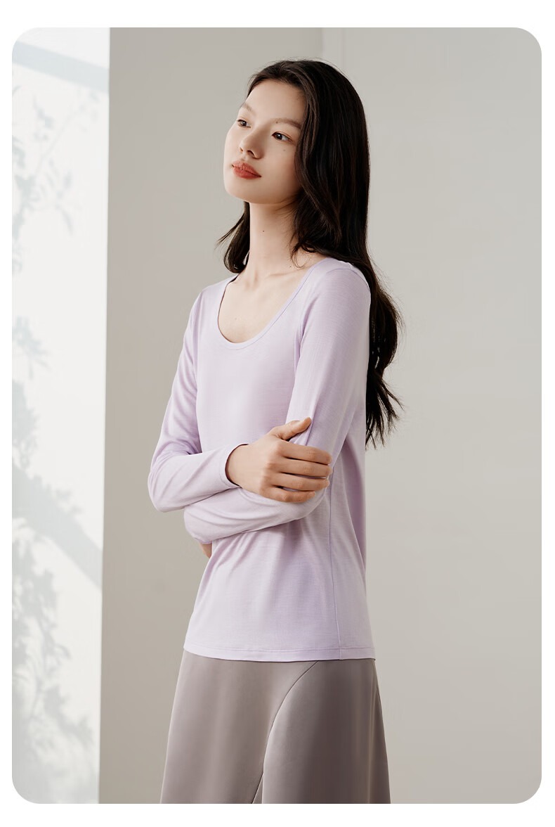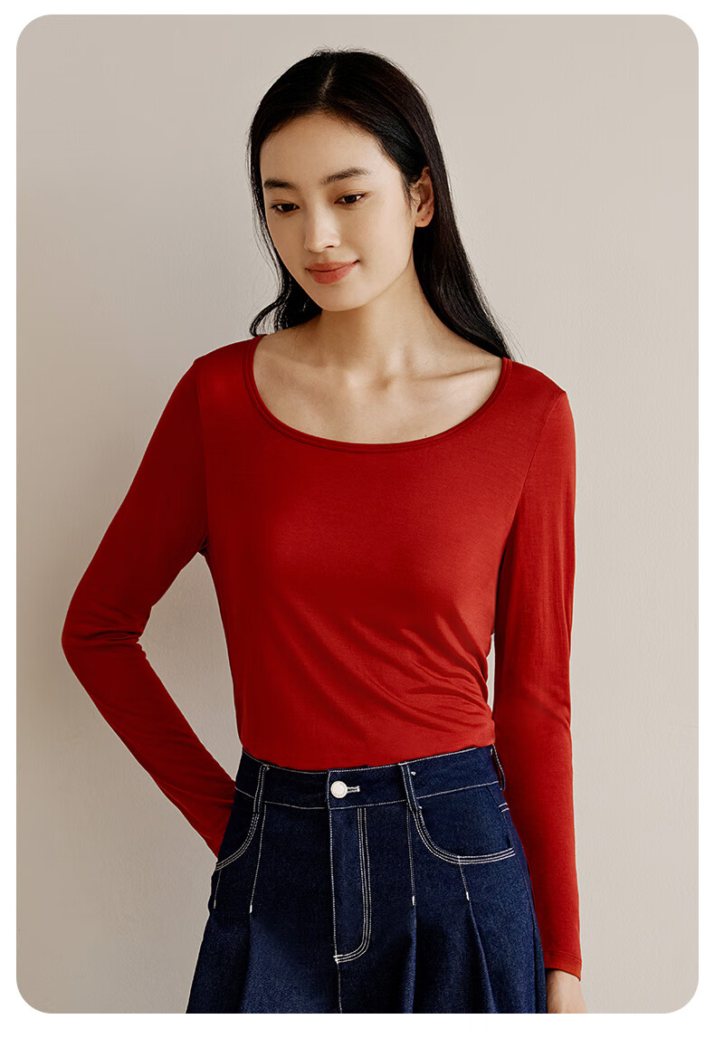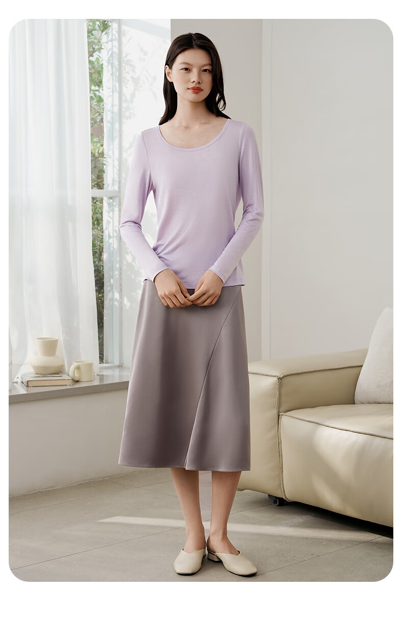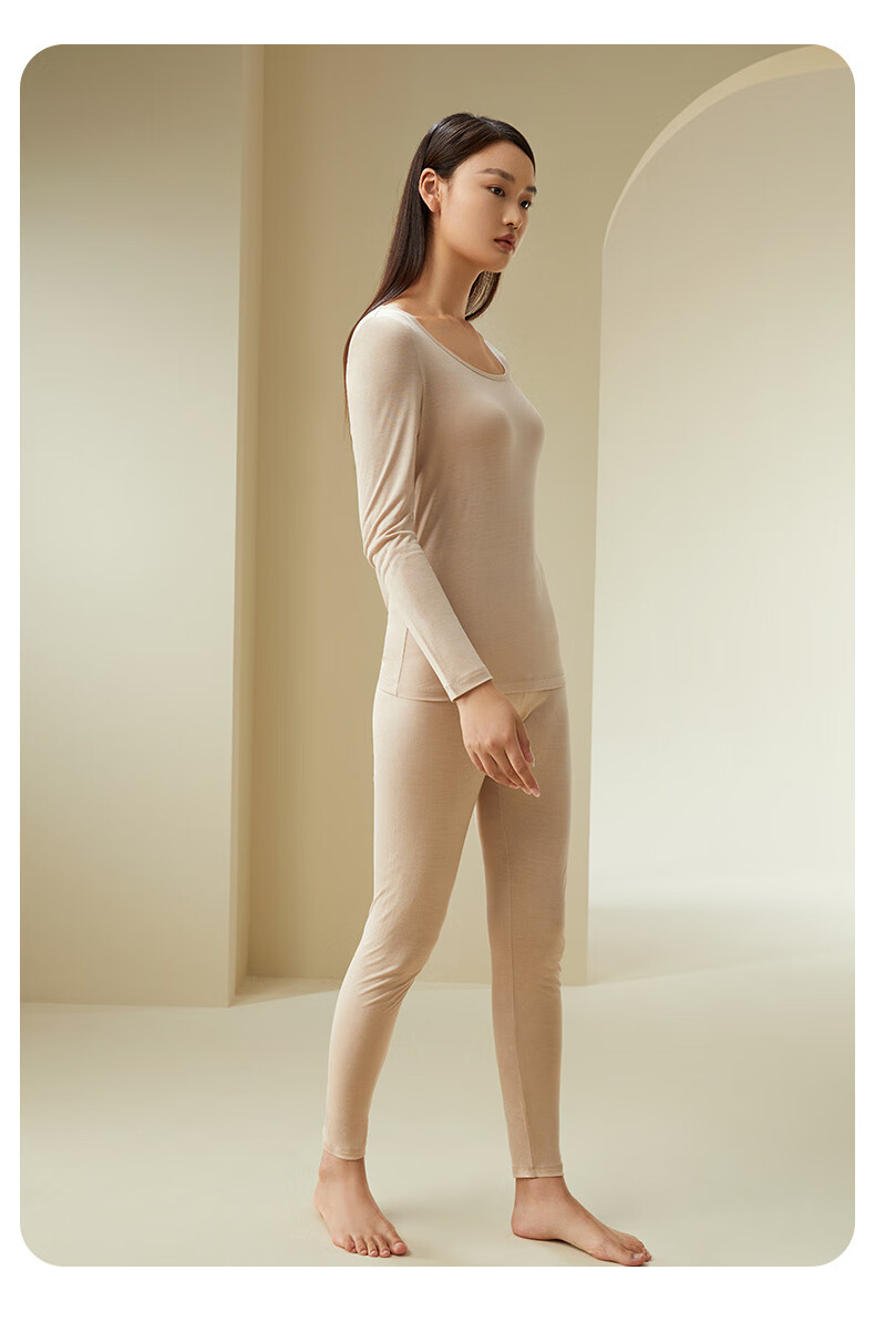 Jinsanta Silk Bottoming Shirt Women's 100% Mulberry Silk Round Neck Autumn and Winter Bottoming Autumn Clothing and Autumn Pants Muscle Bottoming Top - Flesh M