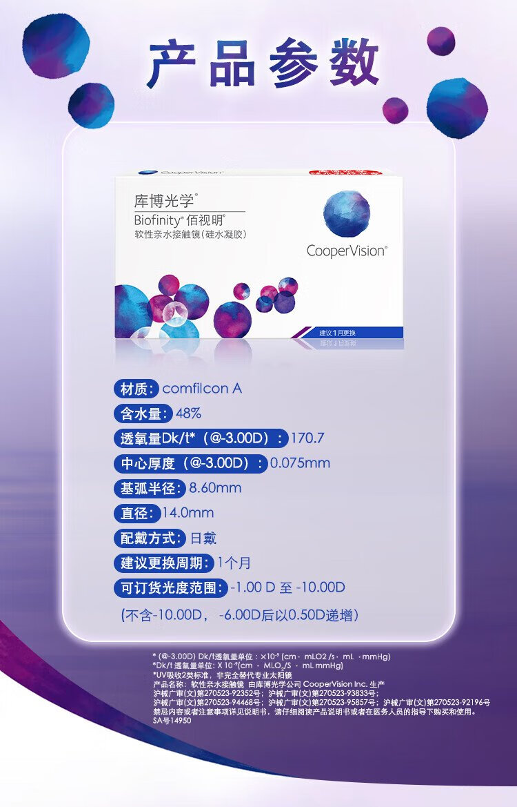 Cooper Optics Biofinity imported transparent contact lenses silicone hydrogel monthly disposable 3 pieces 650 degrees