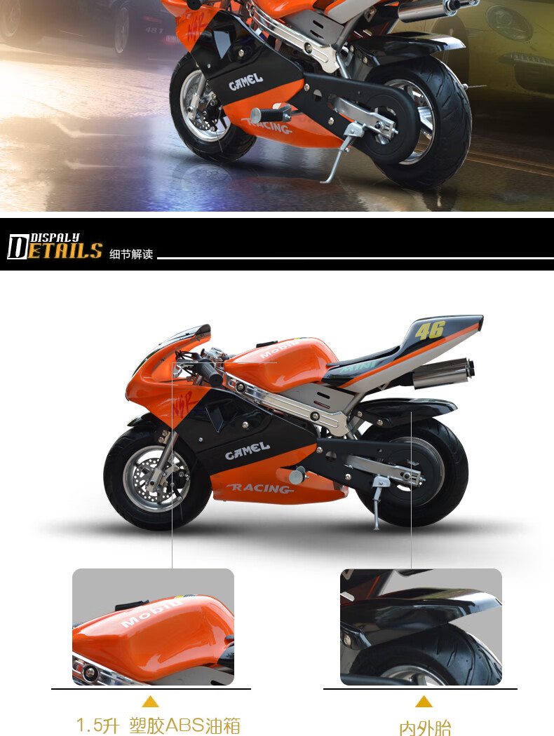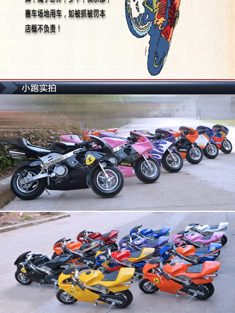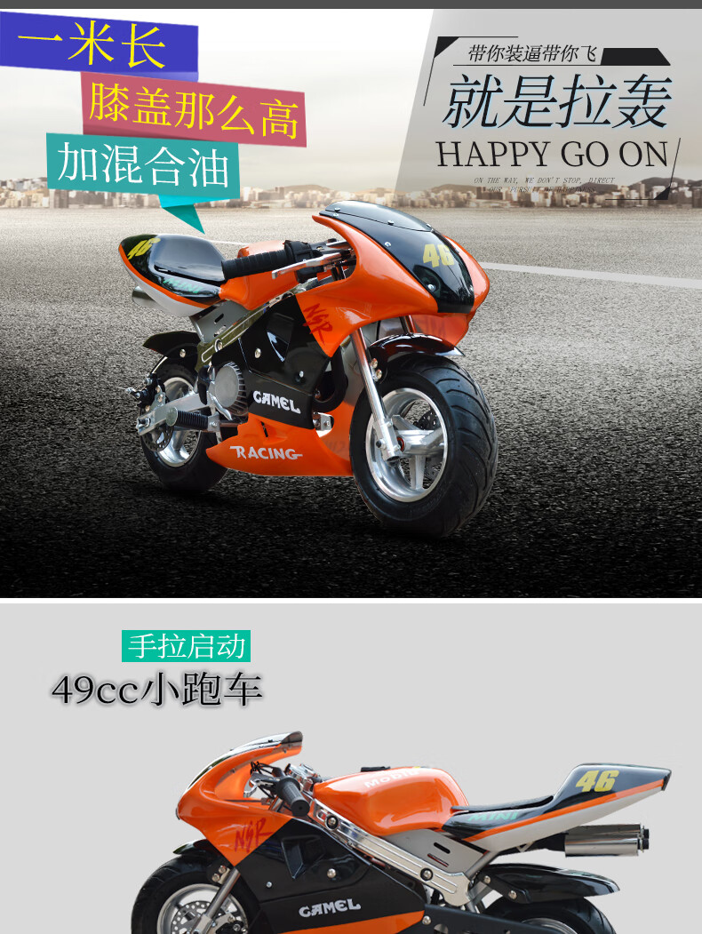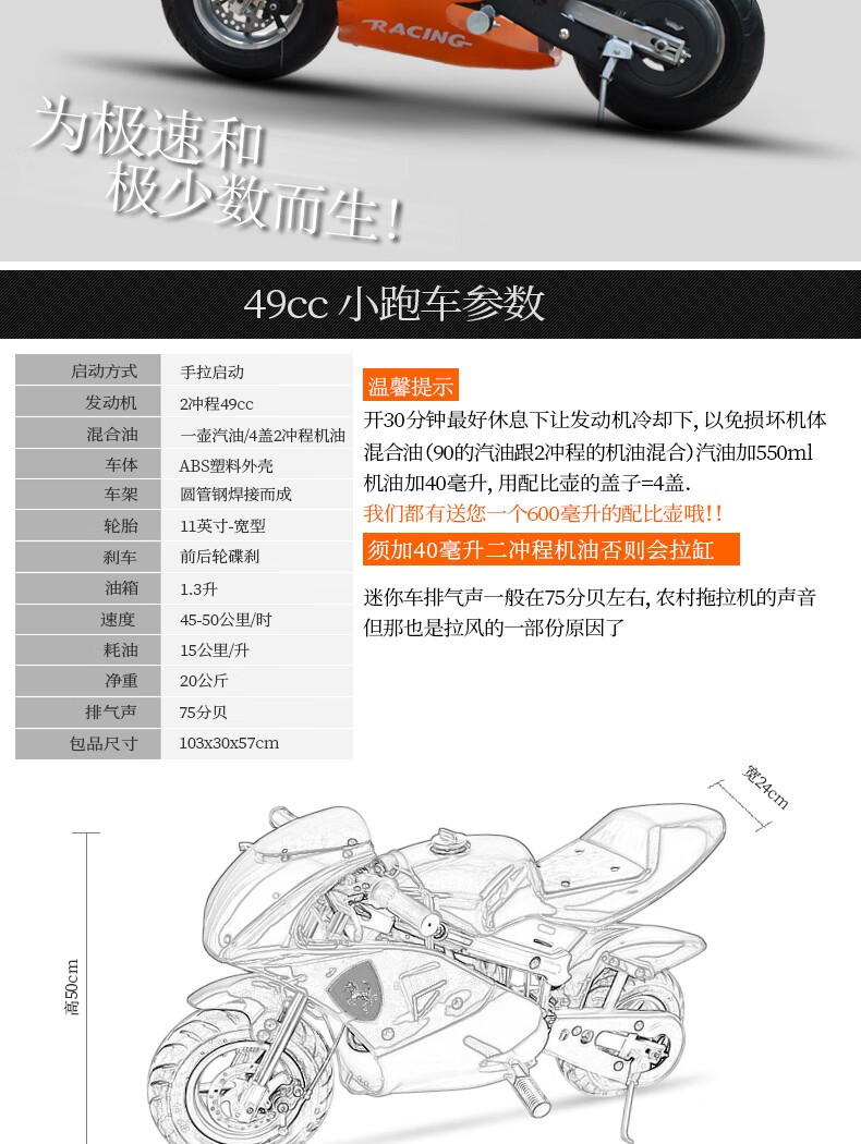 Langchuang 49cc mini motorcycle two-stroke mixed oil fuel version small sports car hand-start small fuel version black 2-stroke mixed oil