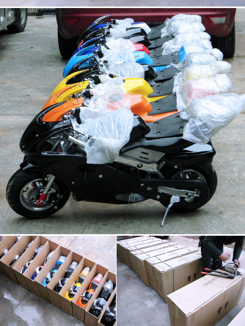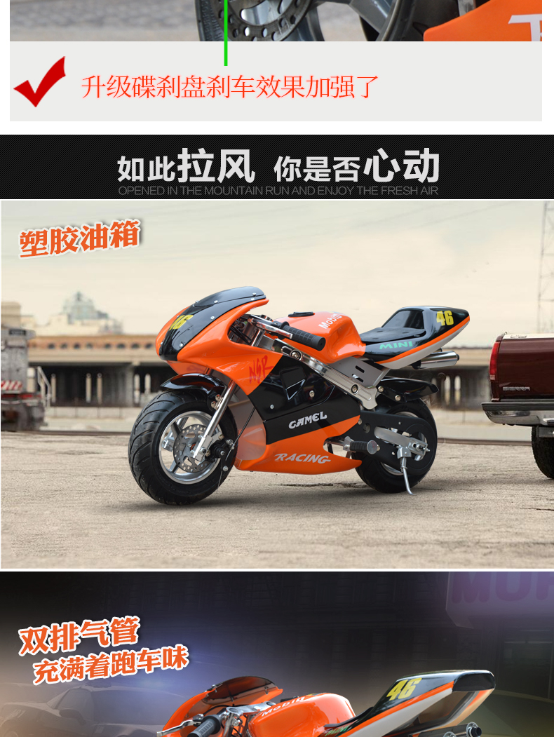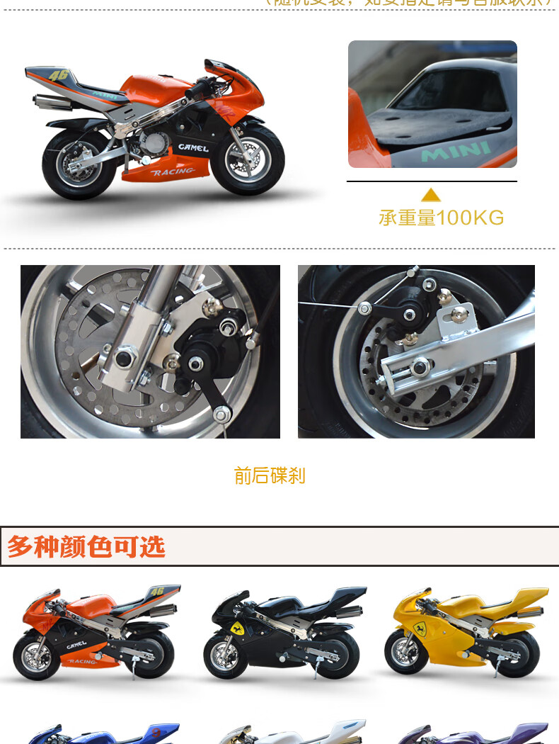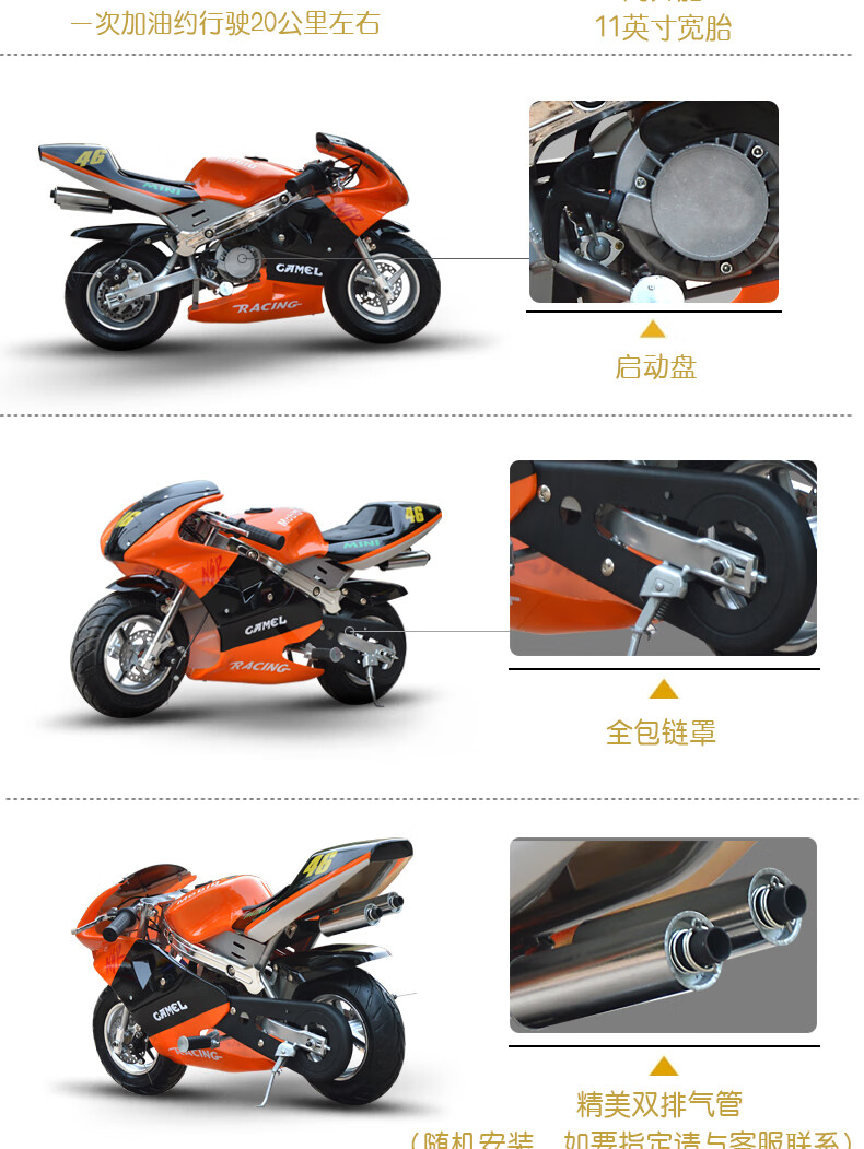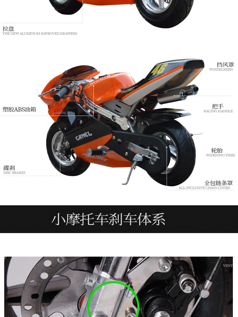 Langchuang 49cc mini motorcycle two-stroke mixed oil fuel version small sports car hand-start small fuel version black 2-stroke mixed oil
