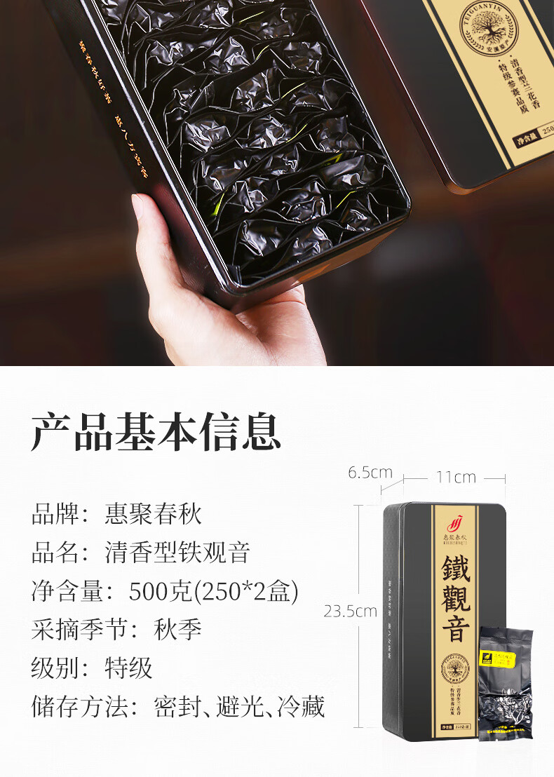 Huiju Spring and Autumn Anxi Tieguanyin Tea Special Grade 2025 New Autumn Tea Fragrance Type Entry Alpine Wild Tea Gift Box New Year's Gift Fresh Fragrance Type Tieguanyin 500g Entry Special Grade