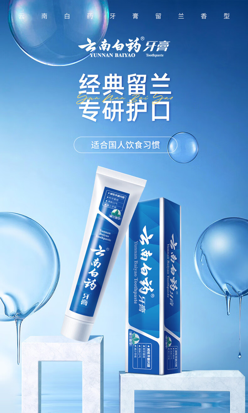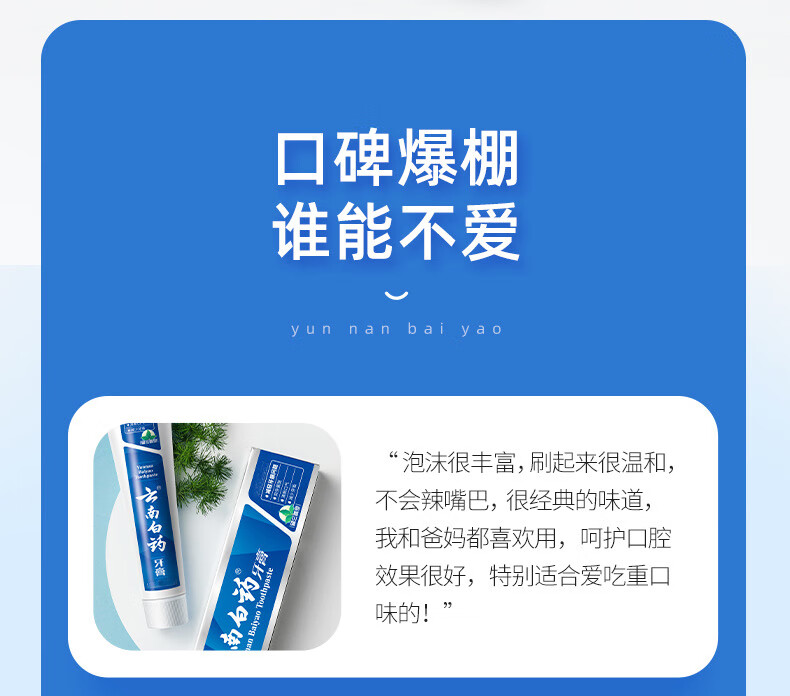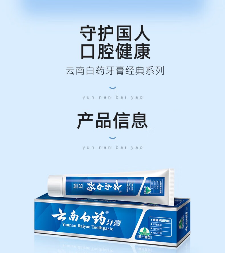 Yunnan Baiyao toothpaste, spearmint type, improves gum problems, strengthens teeth, protects gums, removes oral odor, freshens breath, spearmint type 215g*1 tube