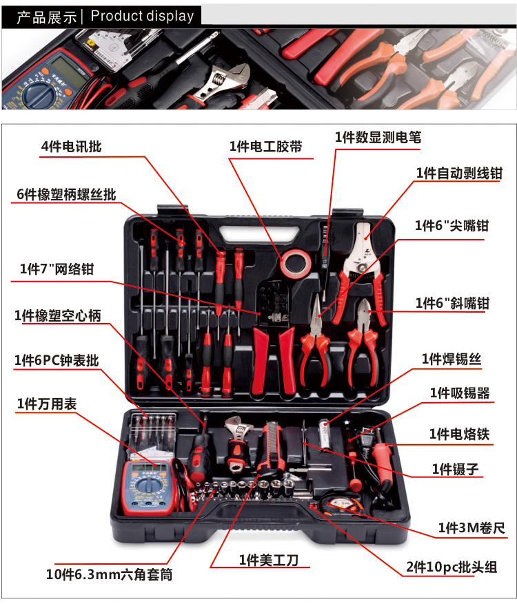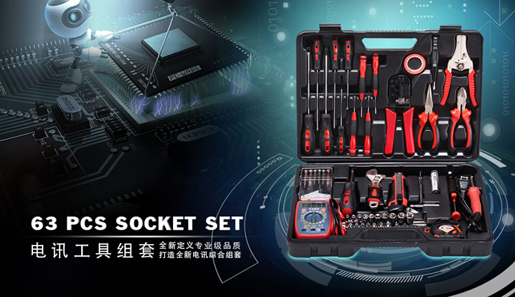 Kraftwell Electronics Electrician Telecommunications Tool Set Toolbox Set Network Cable Stripper Tool Set 63-piece Telecommunications Tool Set C9003A
