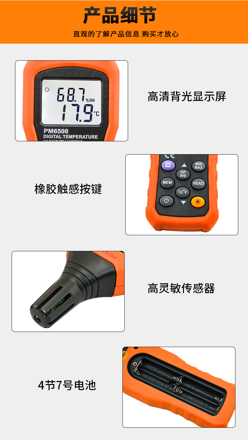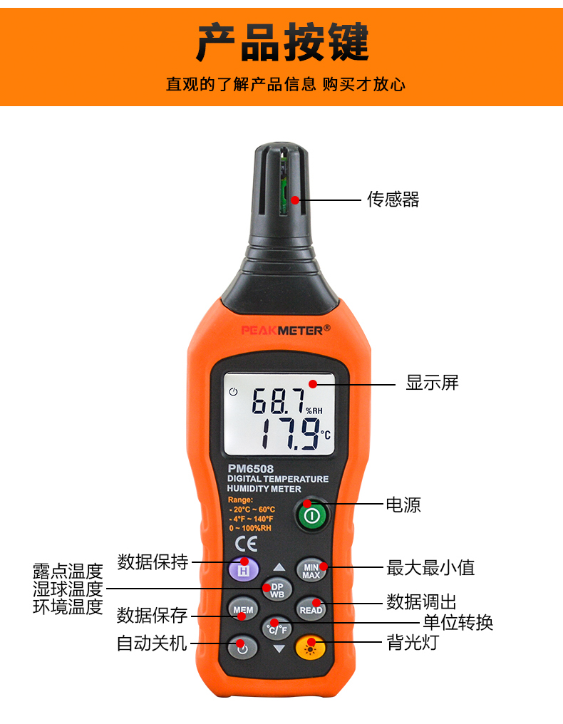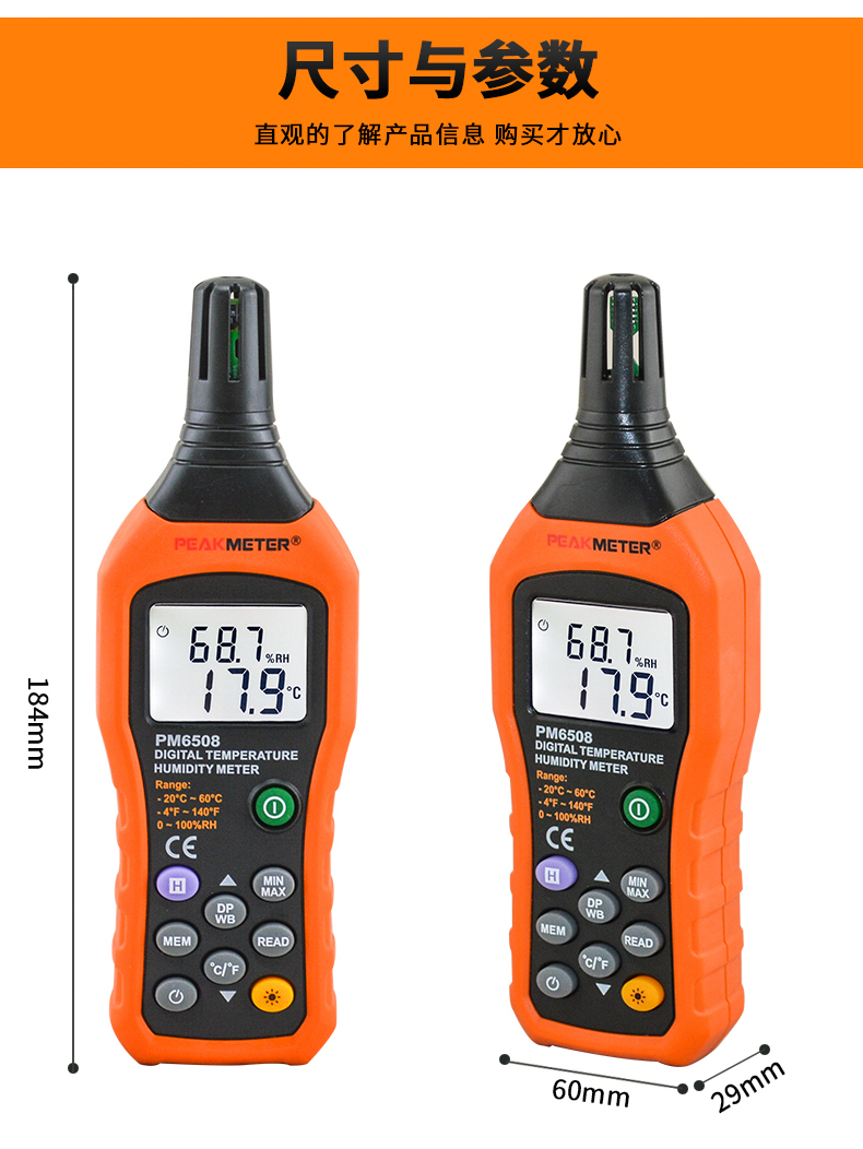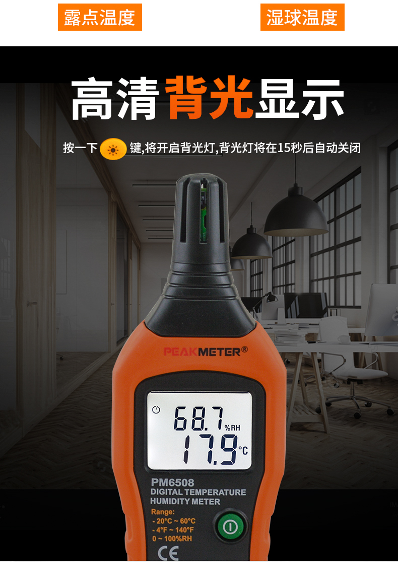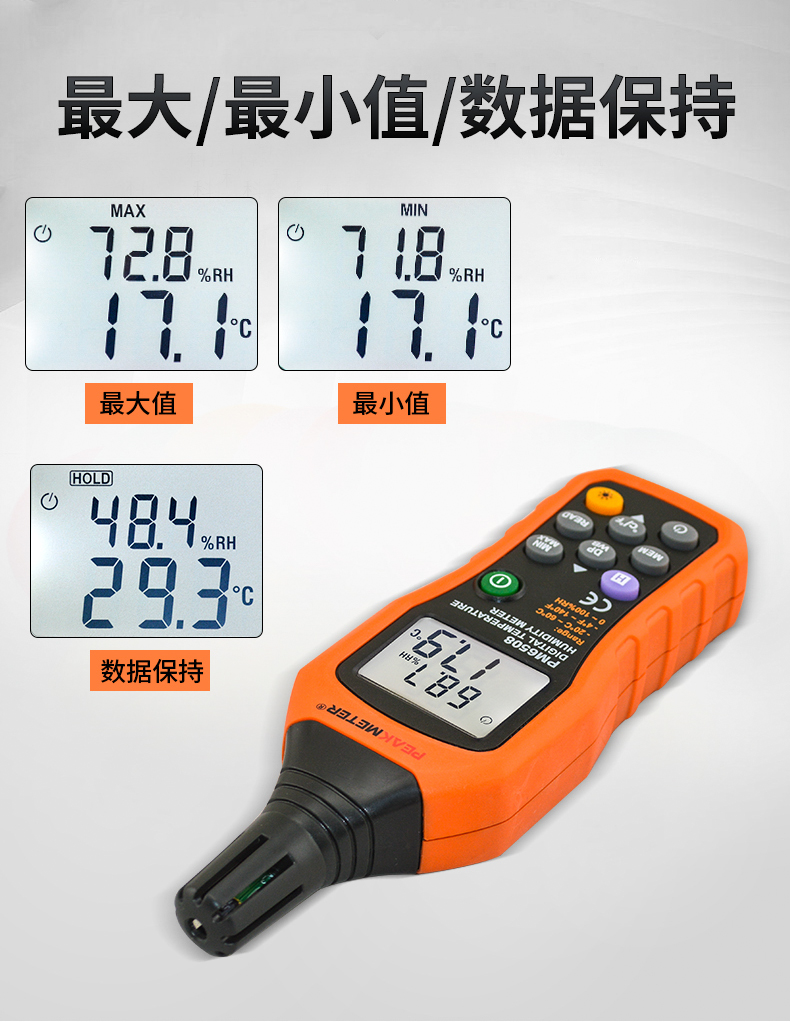 PEAKMETER Digital Temperature and Humidity Meter PM6508 Industrial Grade High-Precision Temperature and Humidity Measuring Instrument Wet Bulb Dew Point Thermometer