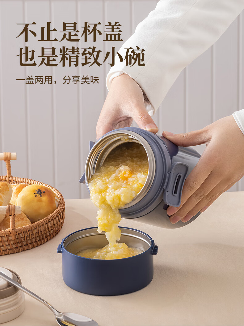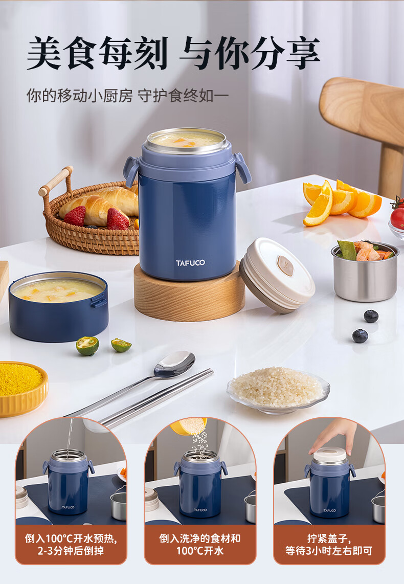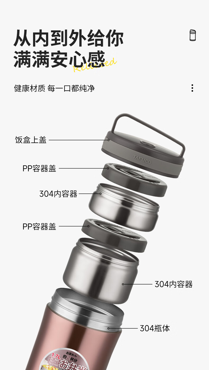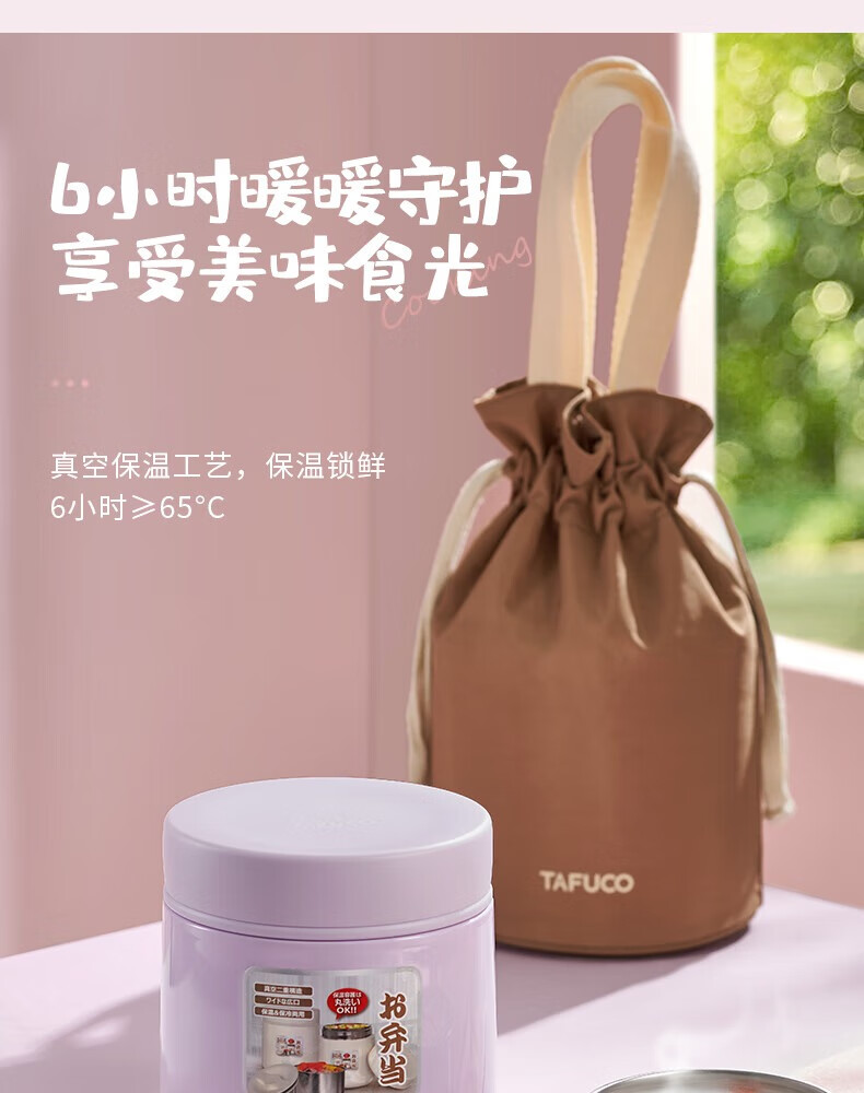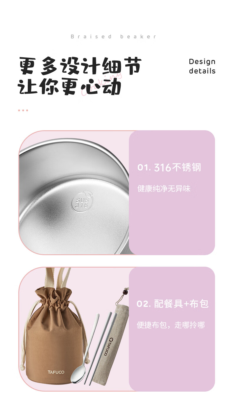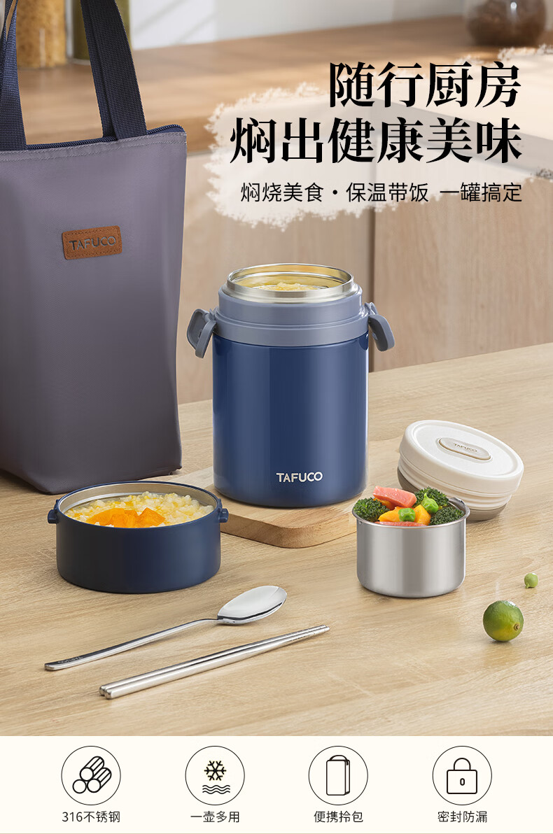 TAFUCO stew beaker 316 stainless steel insulated lunch box vacuum insulated rice bucket large capacity multi-layer lunch box for office workers and students T0272 apricot color thermal insulation + stew 1L