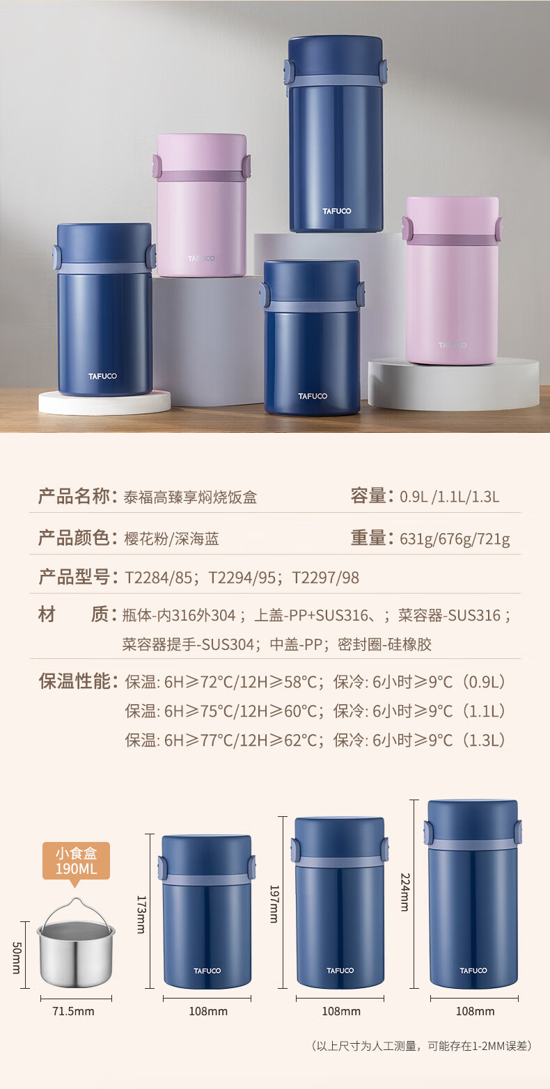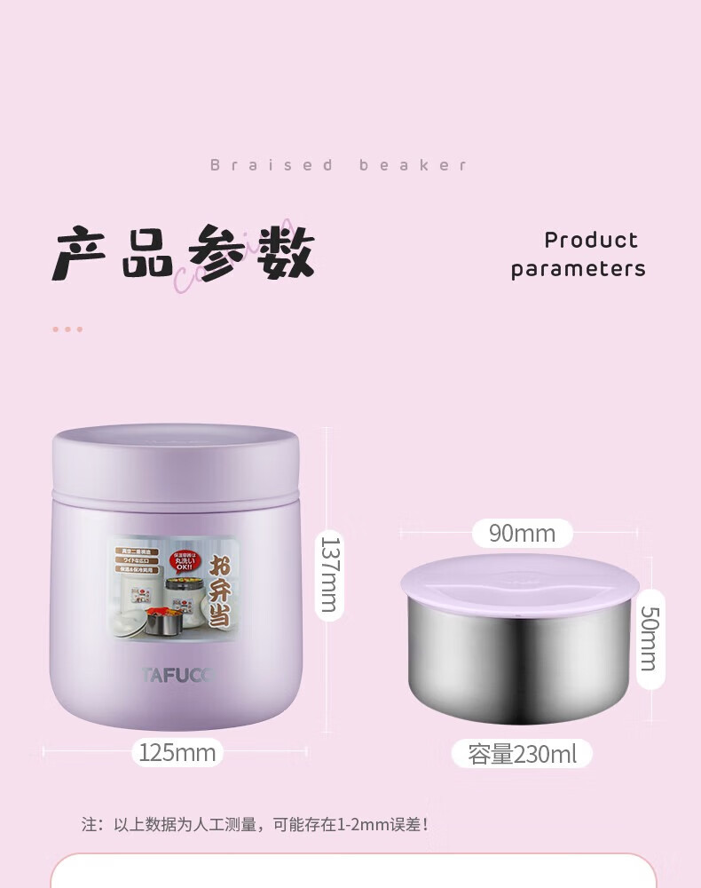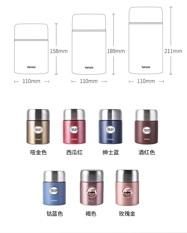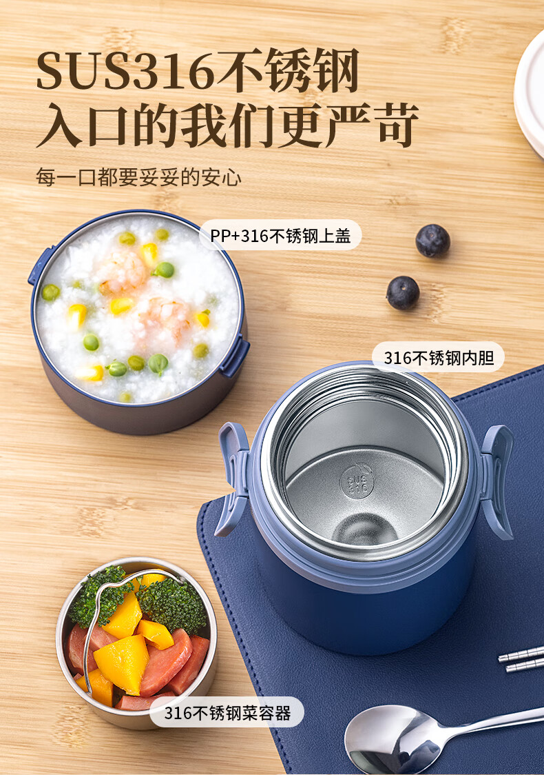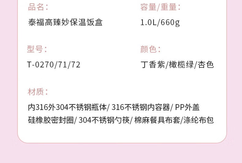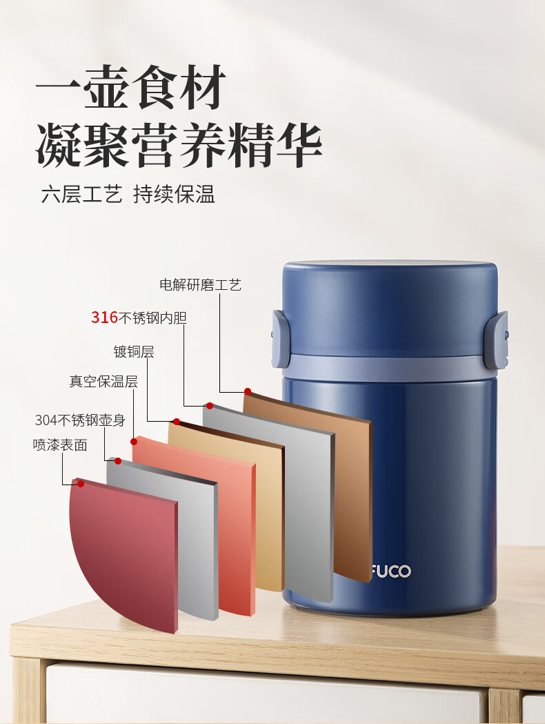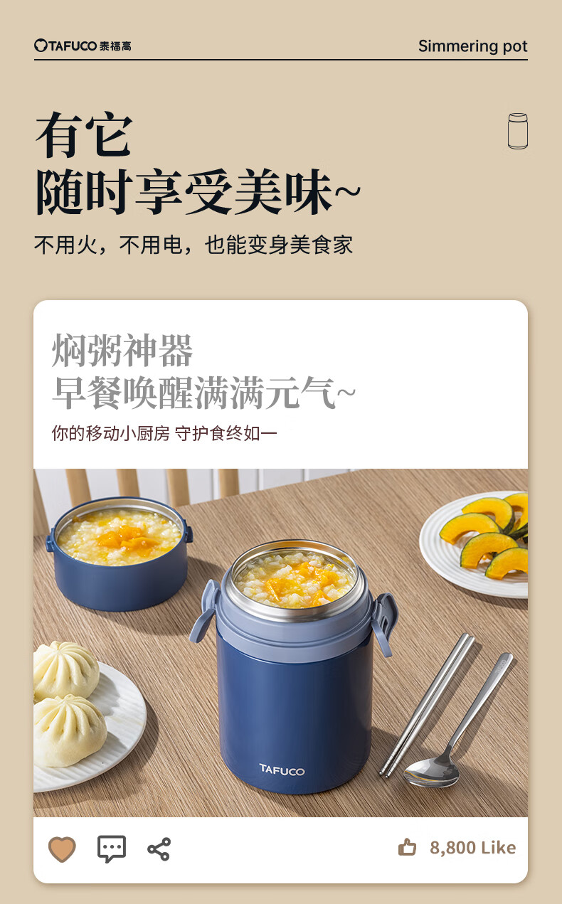 TAFUCO stew beaker 316 stainless steel insulated lunch box vacuum insulated rice bucket large capacity multi-layer lunch box for office workers and students T0272 apricot color thermal insulation + stew 1L