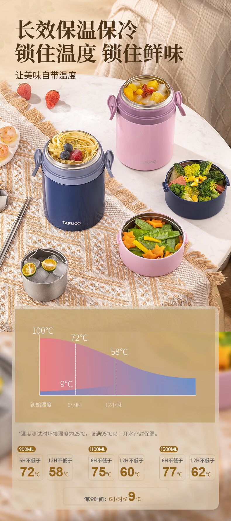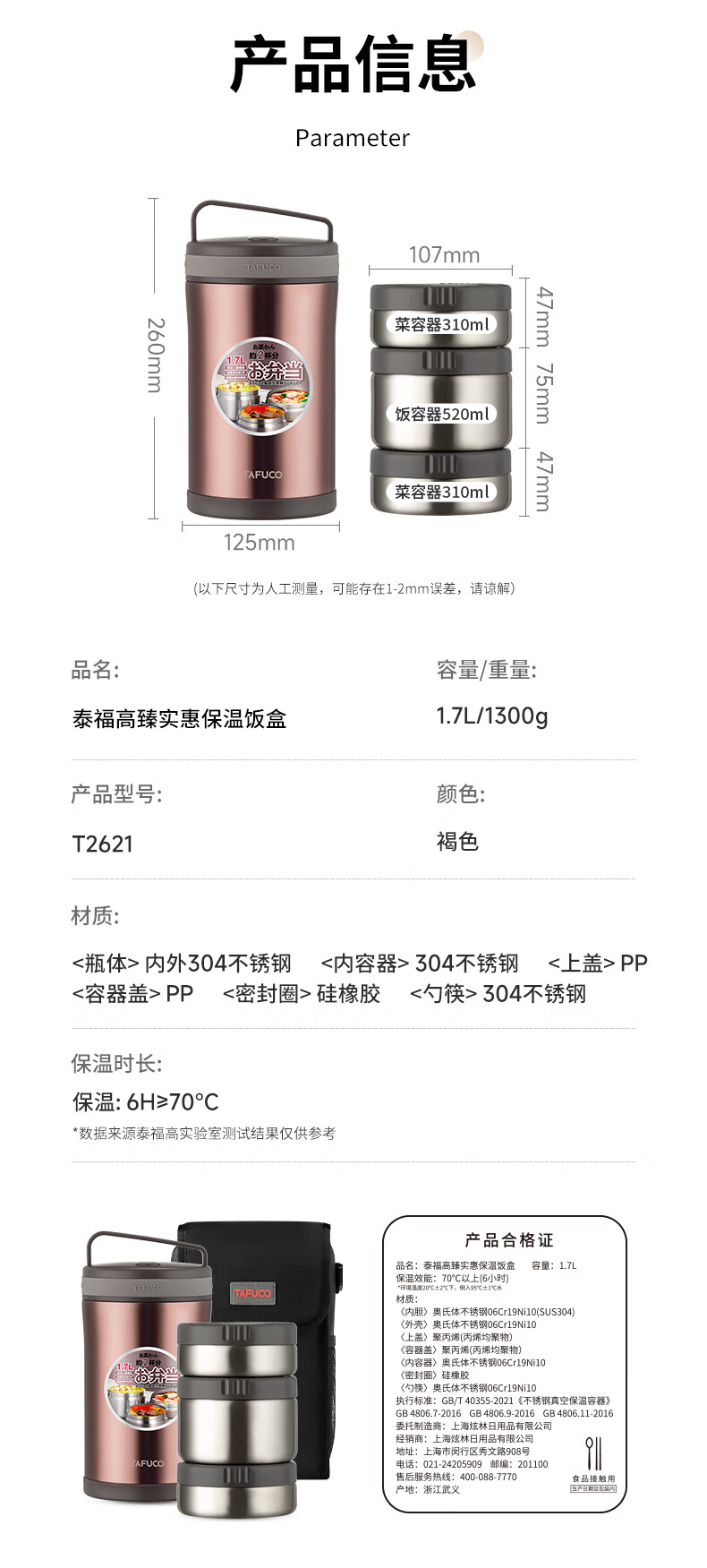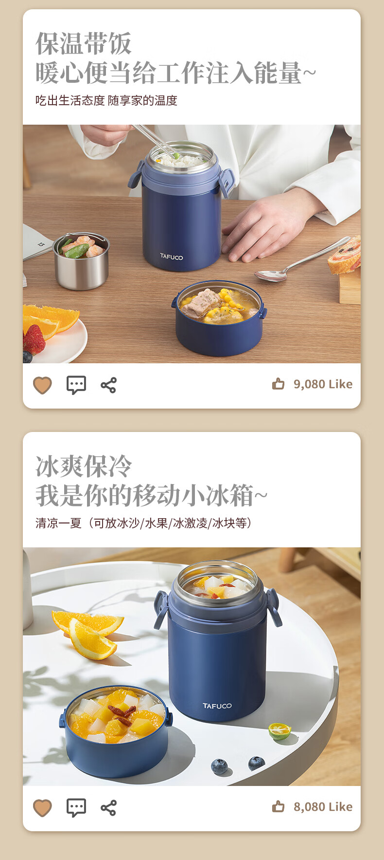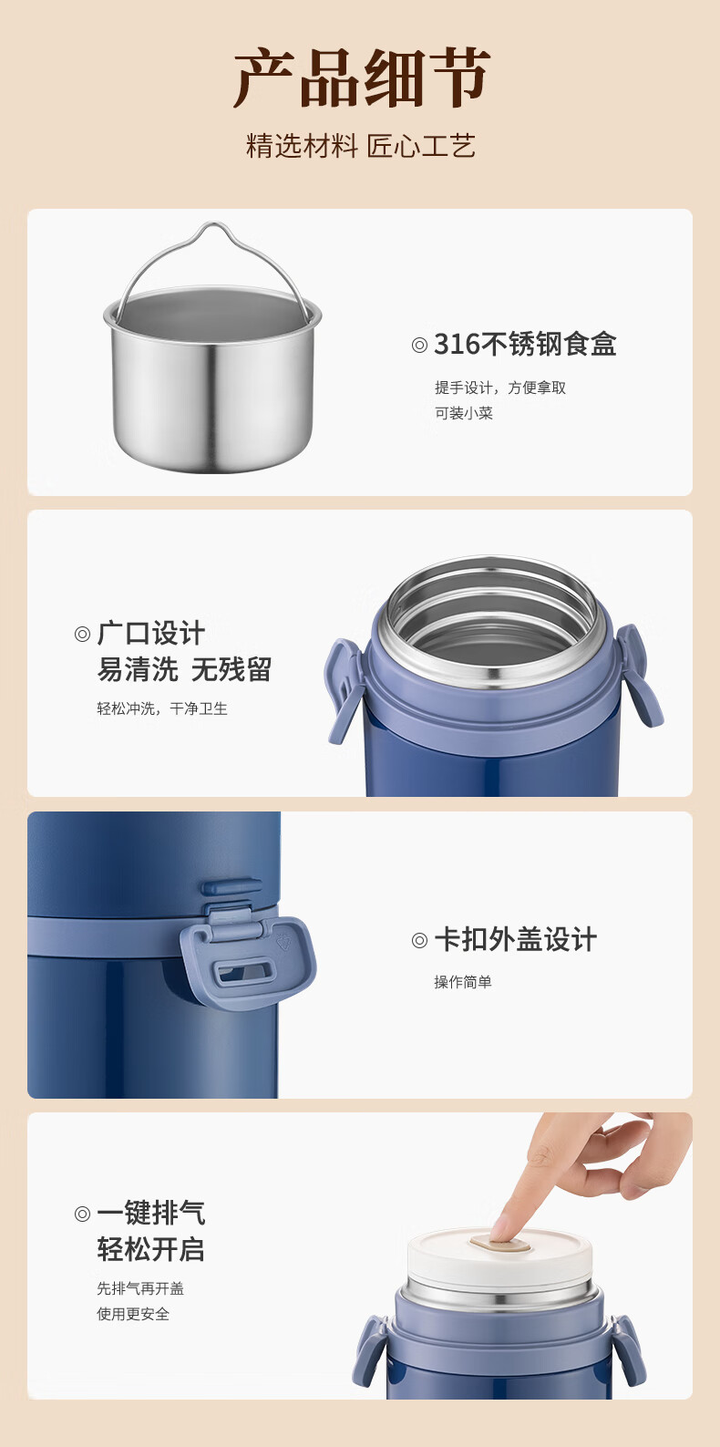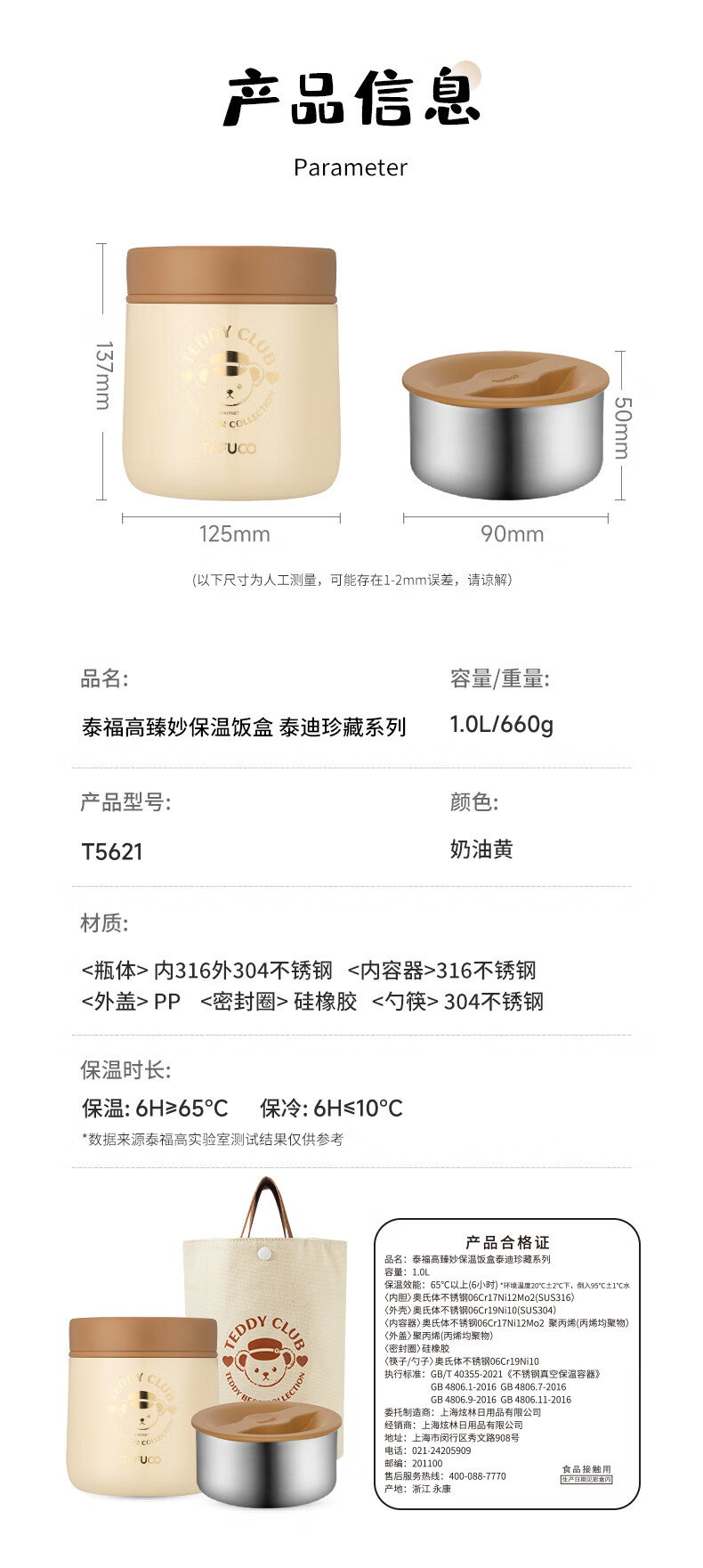 TAFUCO stew beaker 316 stainless steel insulated lunch box vacuum insulated rice bucket large capacity multi-layer lunch box for office workers and students T0272 apricot color thermal insulation + stew 1L