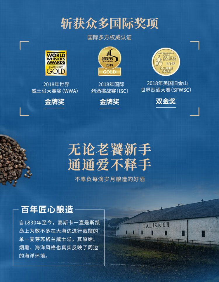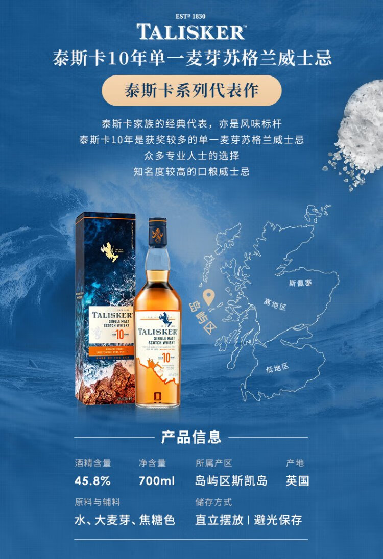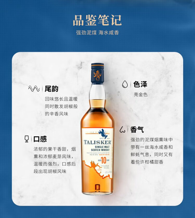 Talisker 10 Years Old Scottish Single Malt Whiskey Wine 700ml Isle of Skye