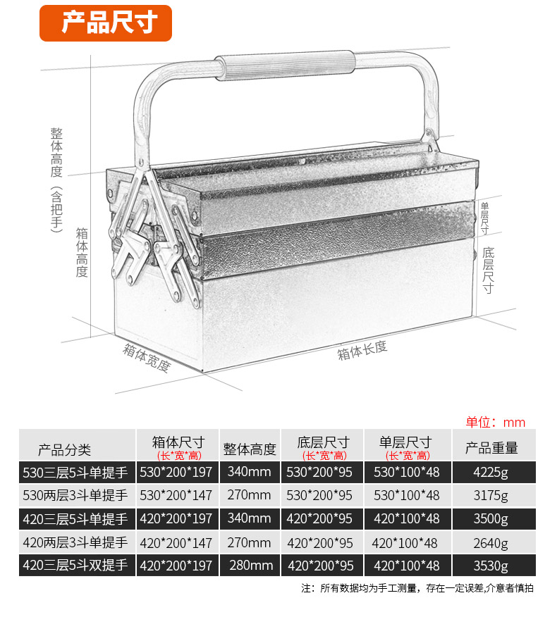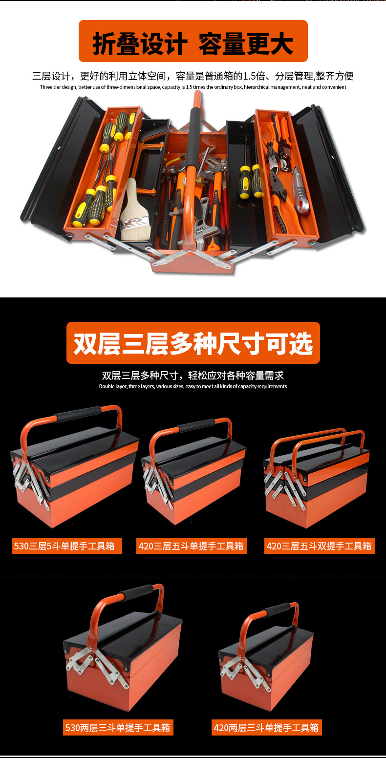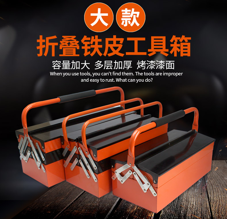 MYTEC metal tool box three-layer portable large box household folding storage box hardware repair tools auto repair 420 three-layer 5-bucket single portable tool box