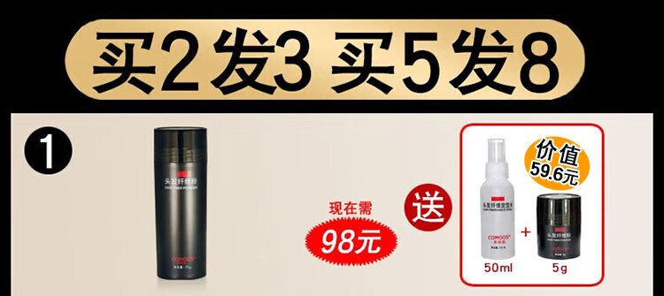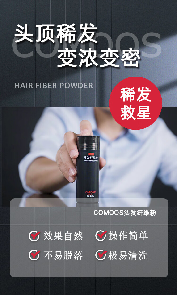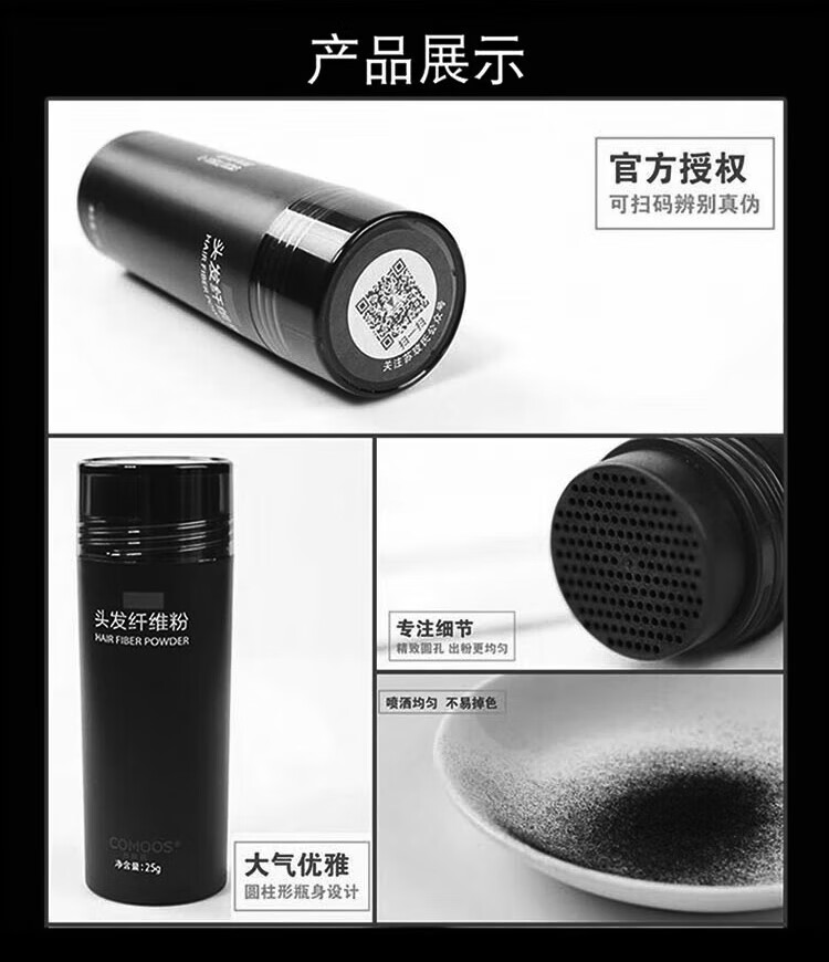 Sumei's (COMOOS) Hair Fiber Powder Visual Hair Increase Density Hair Replacement Seam Artifact Hairline Filling Spray Sparse Covering Black 25g bottle (recommend 3 bottles for repurchase)