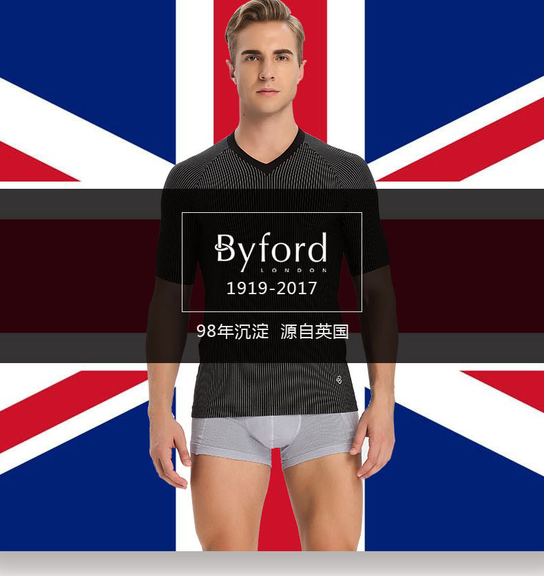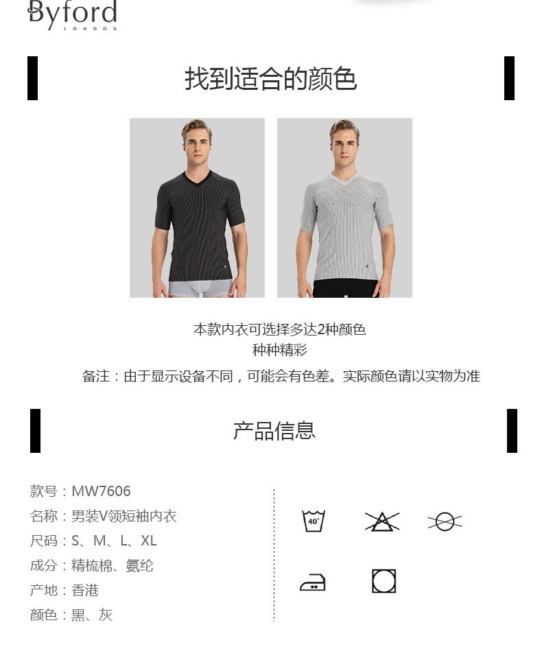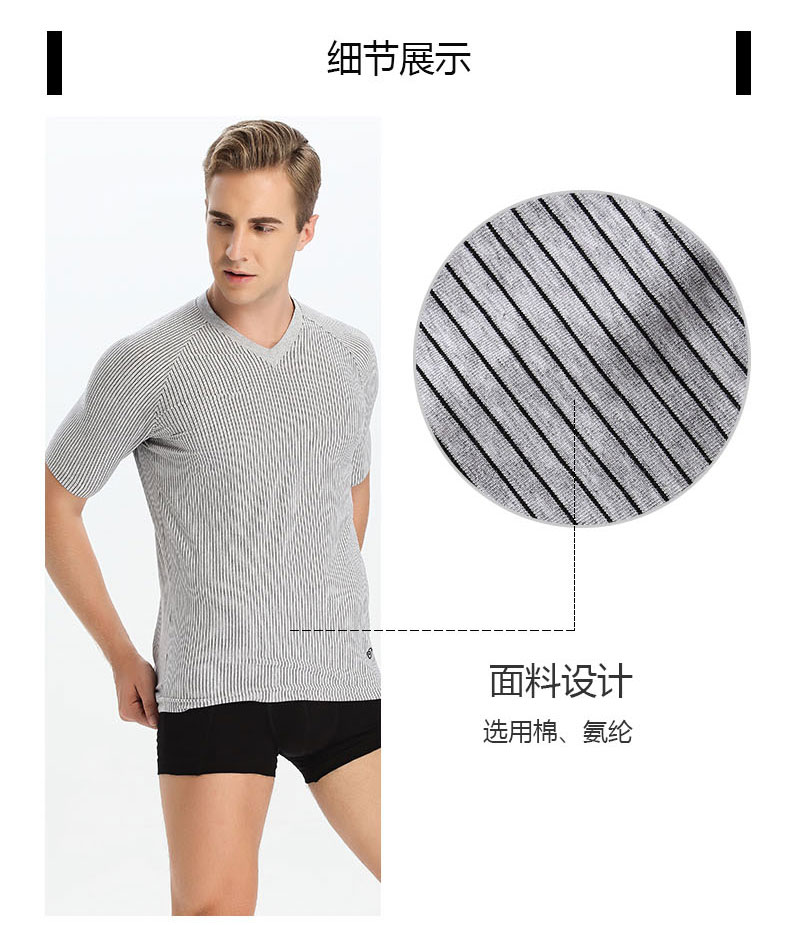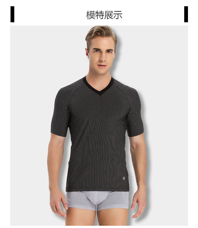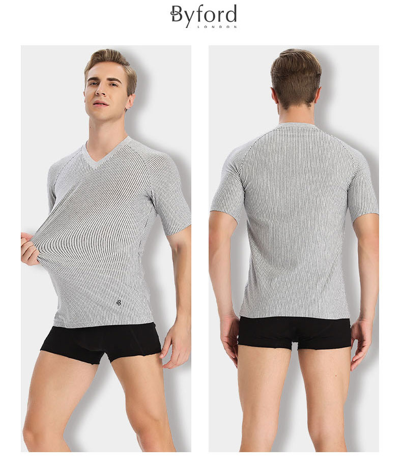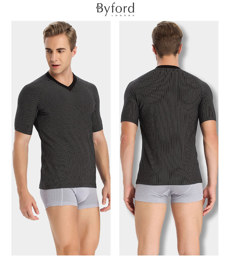 BYFORD men's striped basic base shirt V-neck short-sleeved T-shirt stretch underwear men's top MW7606 black L