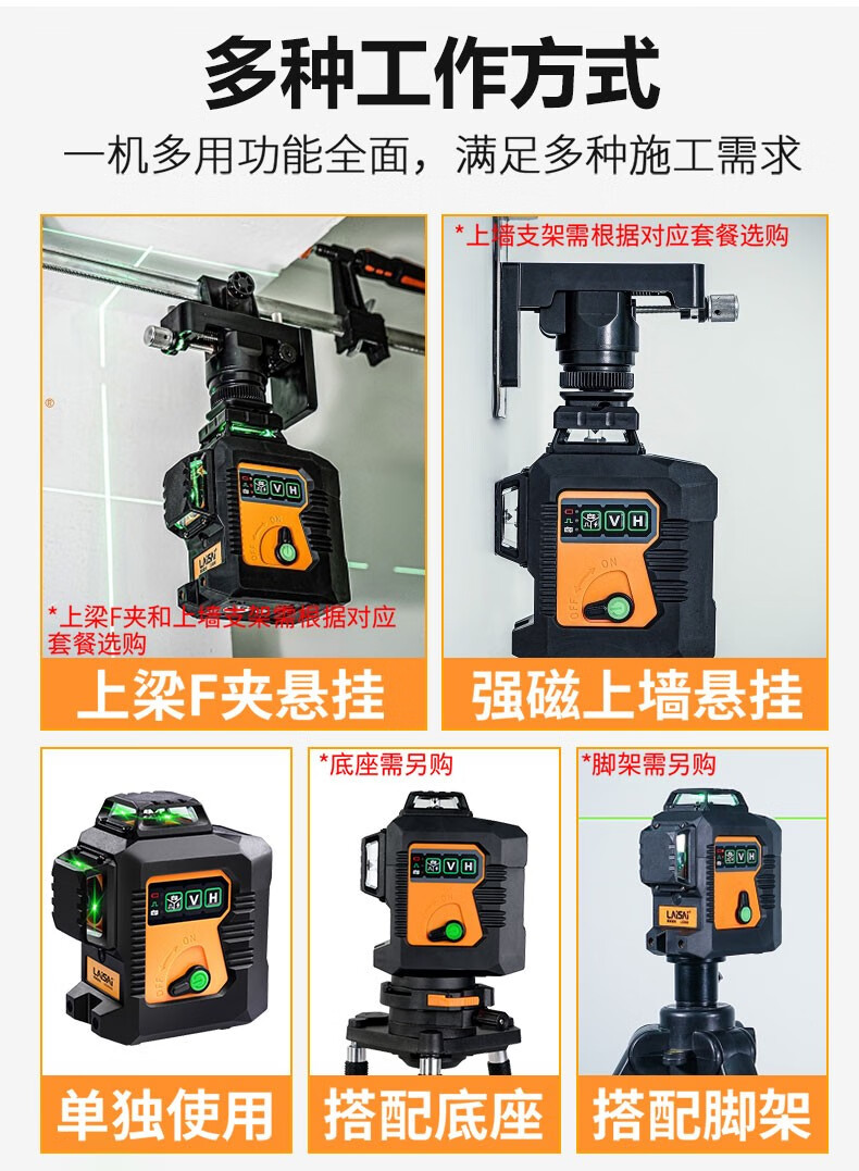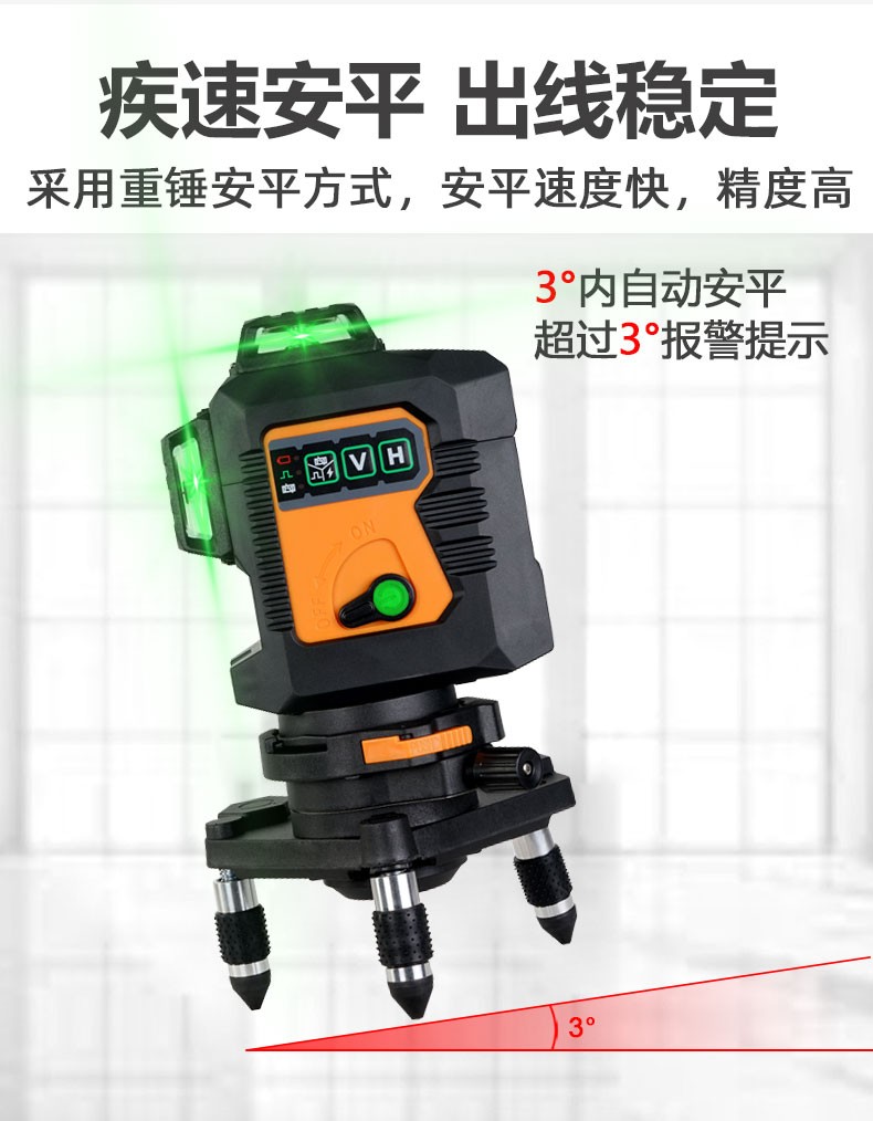 Laser laser level 12-line green light LSG6666 wall-mounted infrared high-precision water level meter strong light thin line 12-line green light LSG6666 single battery + base