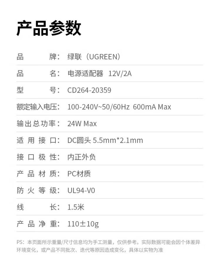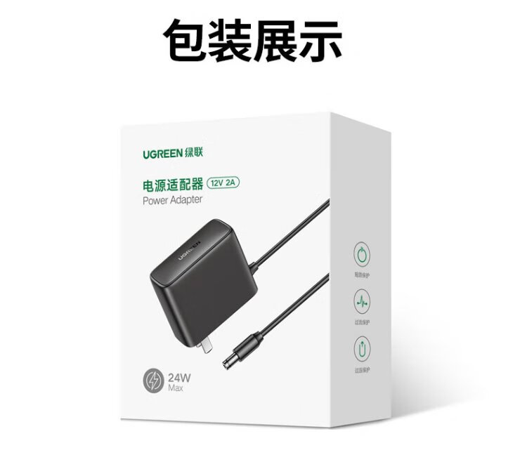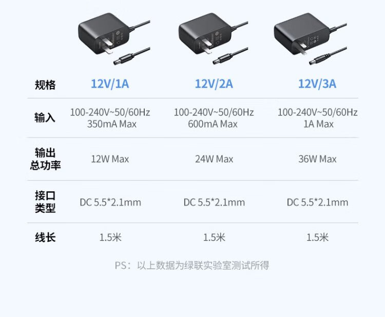 Greenlink 12V/2A power adapter universal monitor hard disk box router computer radiator optical cat set-top box camera DC round hole power charging cable 1.5 meters 20359