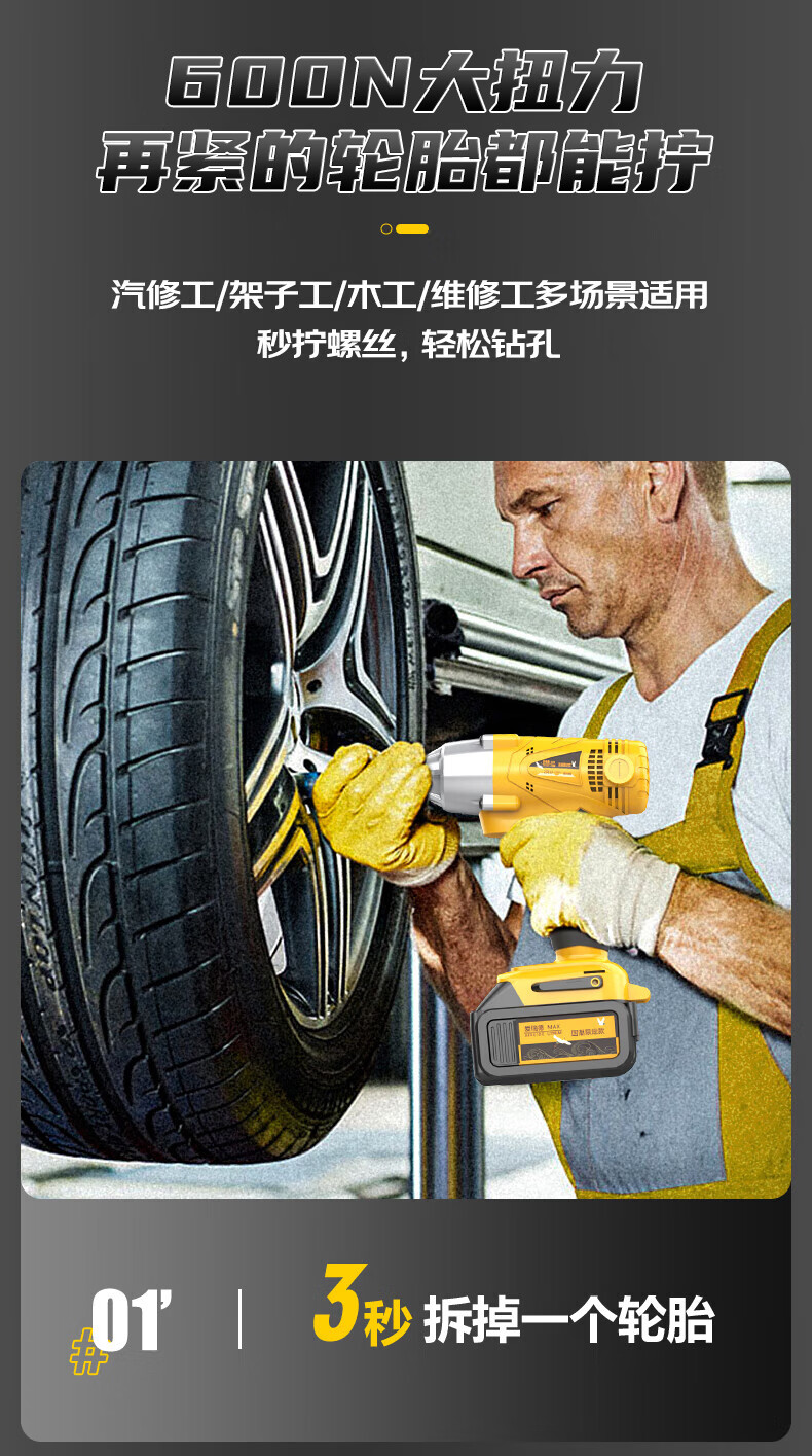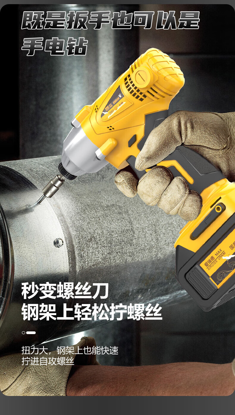 Aired German lithium electric wrench rechargeable drill impact wrench shelf wind cannon power tool creation model two batteries and one charger