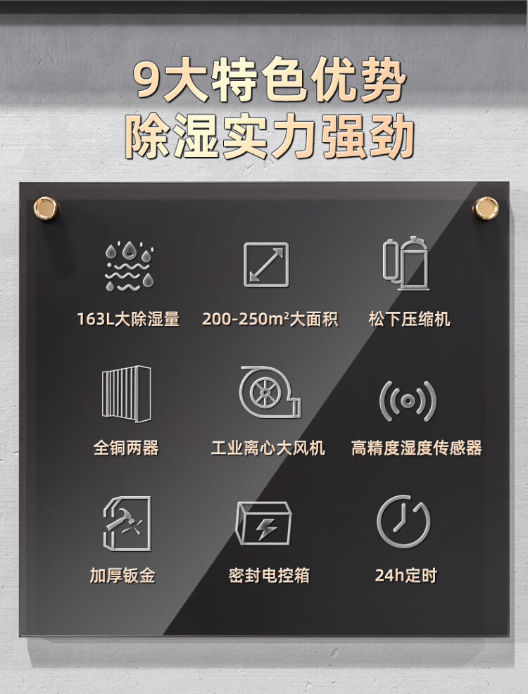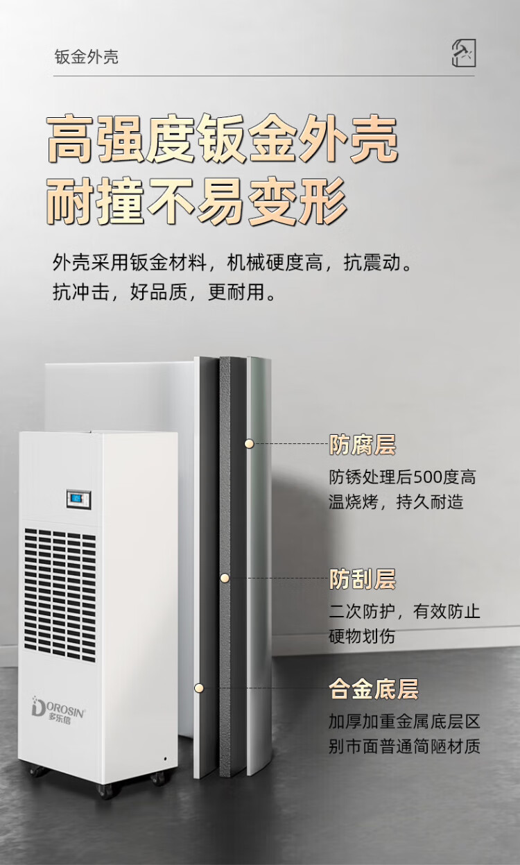 Duluxin DP-6.8D 163L industrial dehumidifier, rated power 2030W, commercial machine room, workshop, warehouse laboratory, high-power dehumidifier 163L/day, upgraded Panasonic compressor