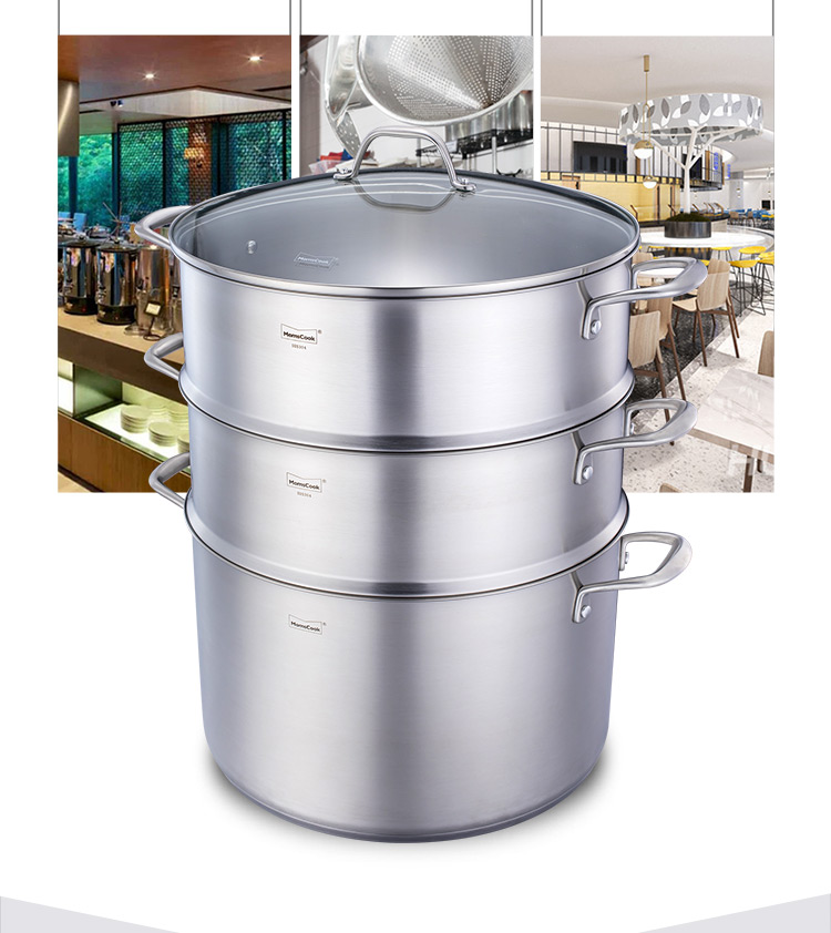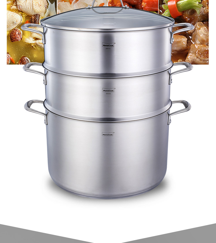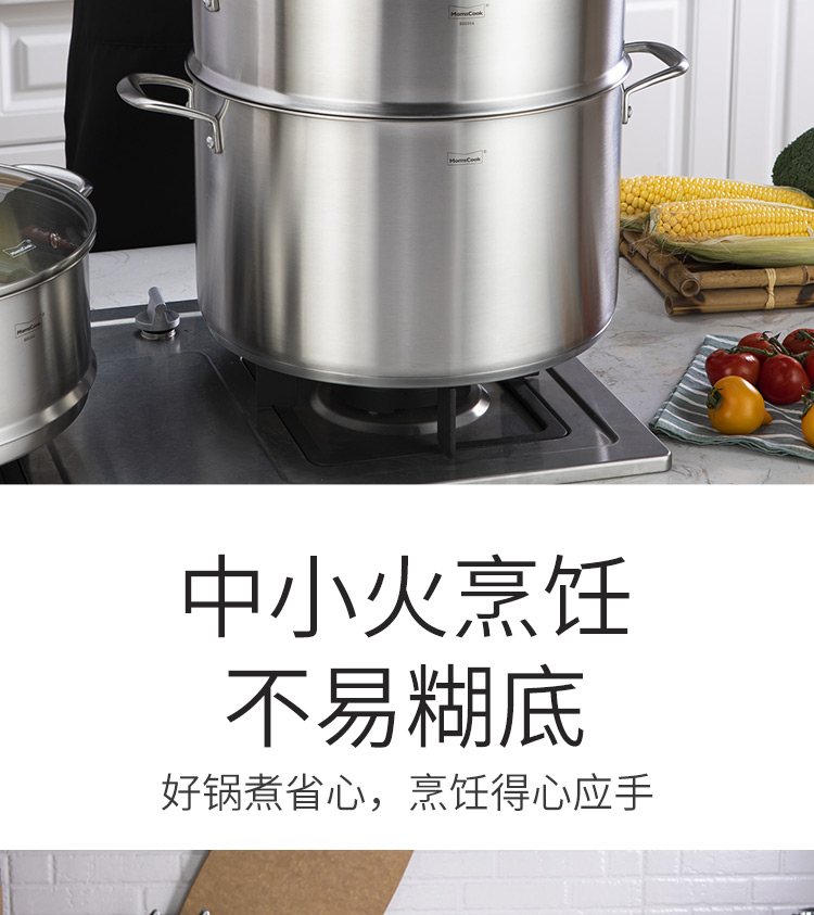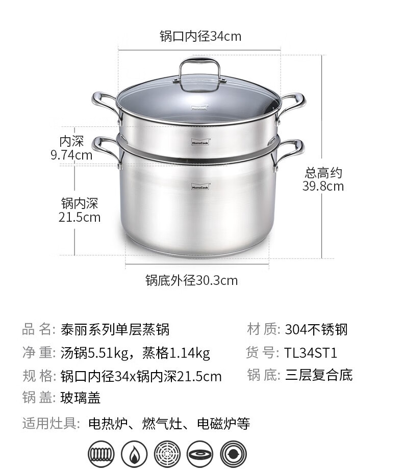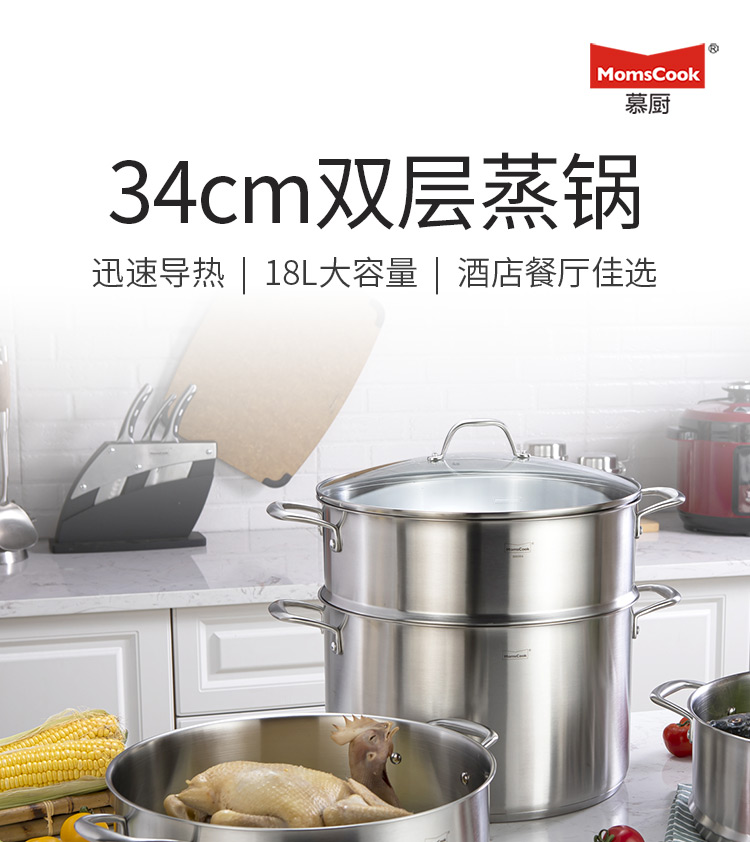 Momscook stainless steel steamer 34cm large steamer single layer double layer steamer 304 induction cooker gas universal (TL3421ST2) double layer steamer - 34cm