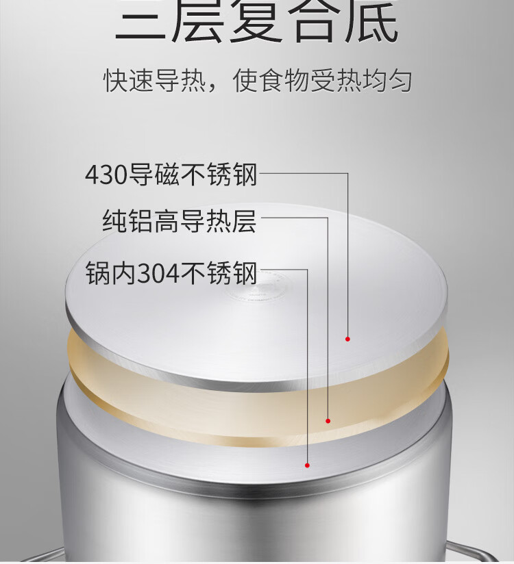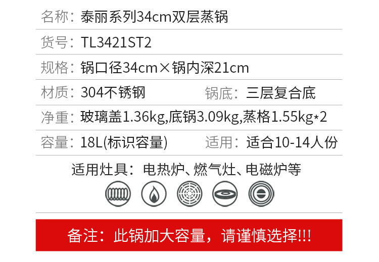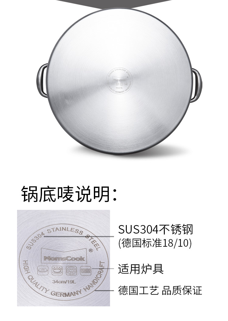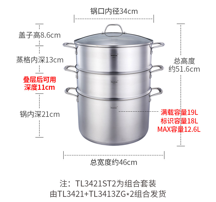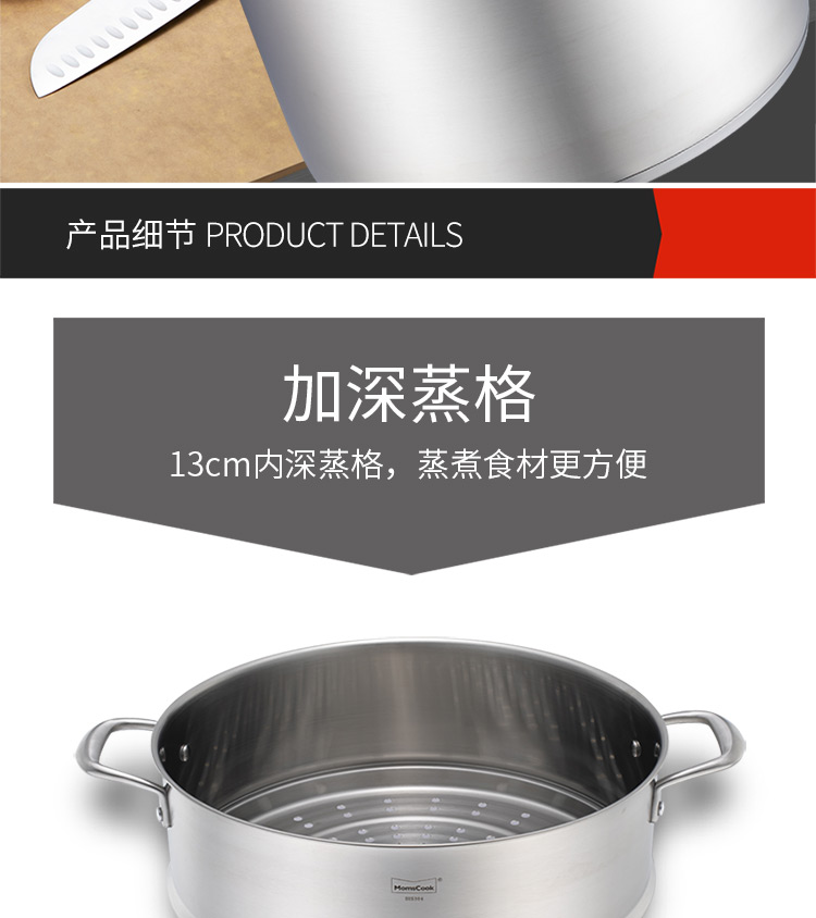 Momscook stainless steel steamer 34cm large steamer single layer double layer steamer 304 induction cooker gas universal (TL3421ST2) double layer steamer - 34cm