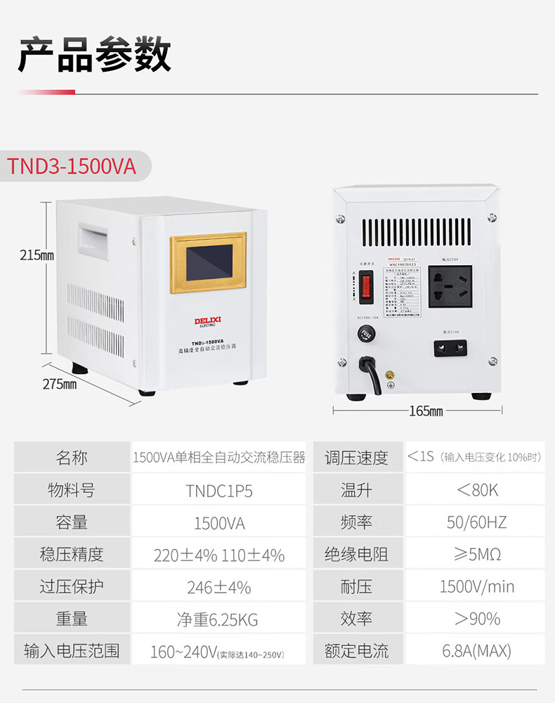 Delixi Electric household voltage stabilizer 1500w 1.5KW 220v computer TV refrigerator audio TND3 AC power supply