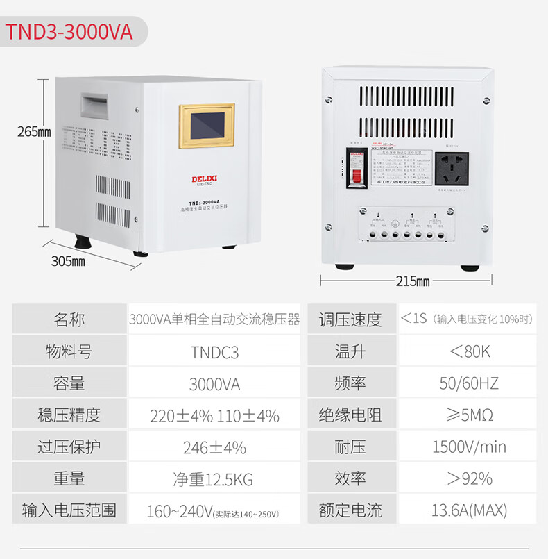 Delixi Electric Home Voltage Stabilizer 3000W 220V Computer TV Refrigerator Air Conditioner Single Phase AC Power Supply TND3 3KW